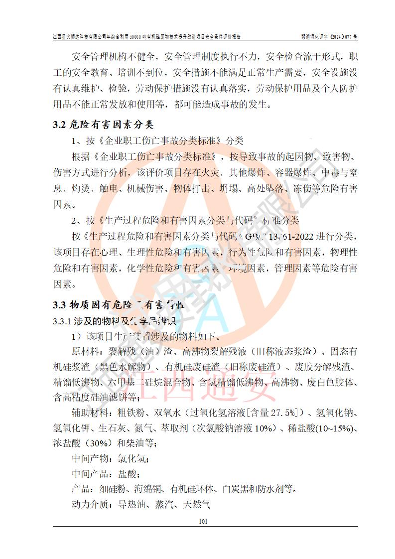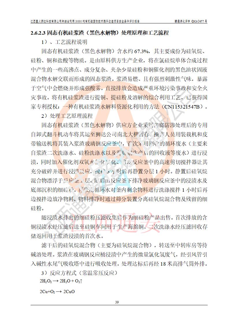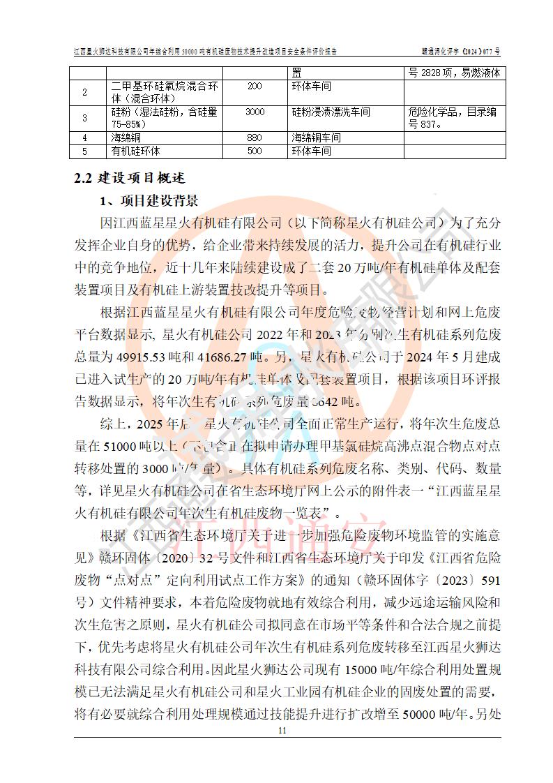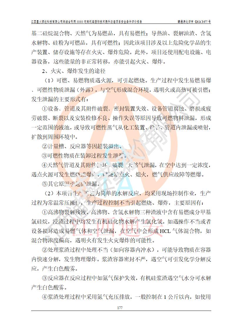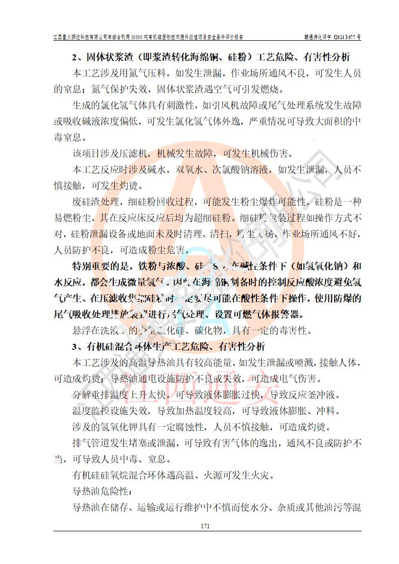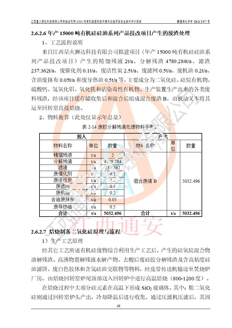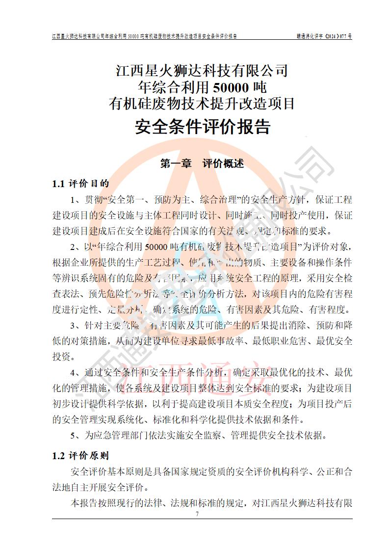 江西星火獅達科技有限公司年綜合利用50000噸有機硅廢物技術(shù)提升改造項目安全條件評價報告