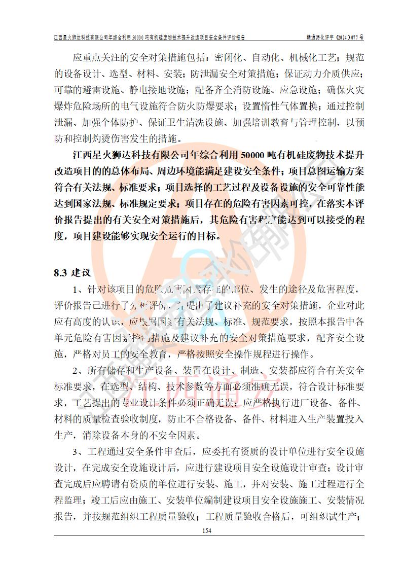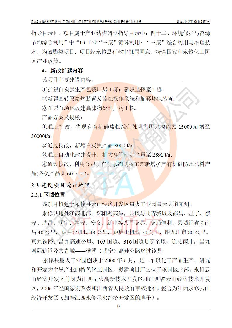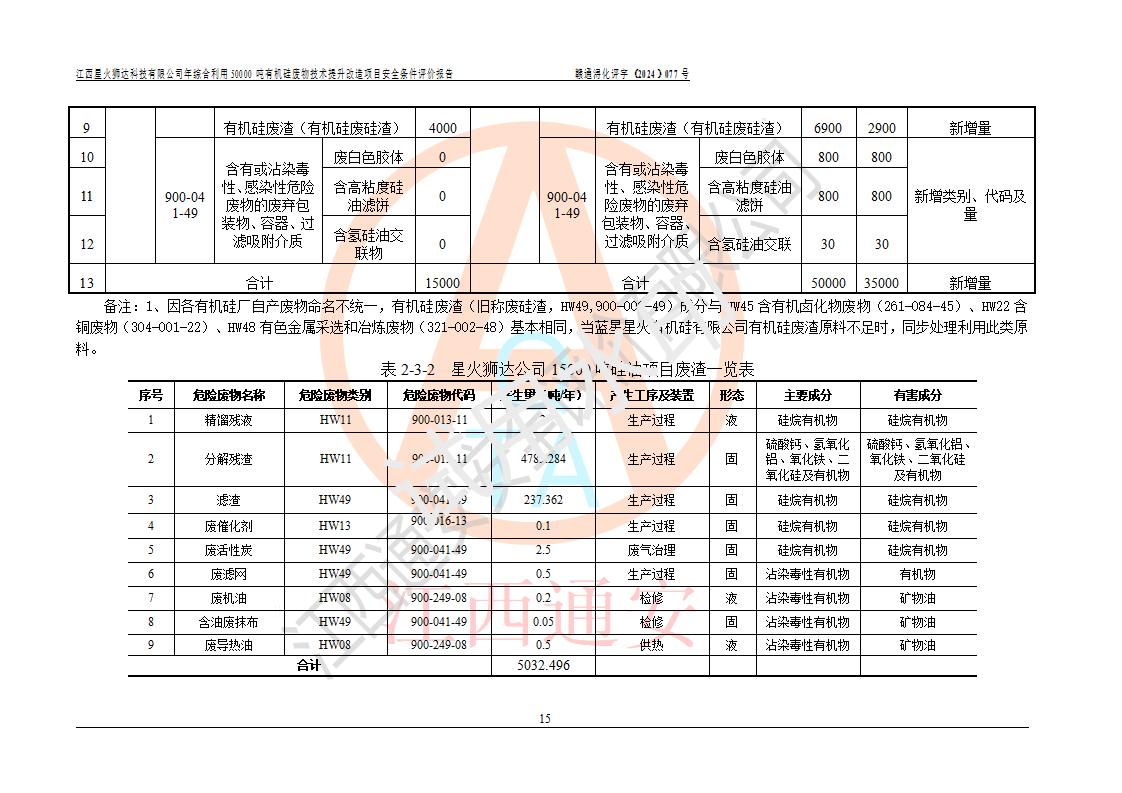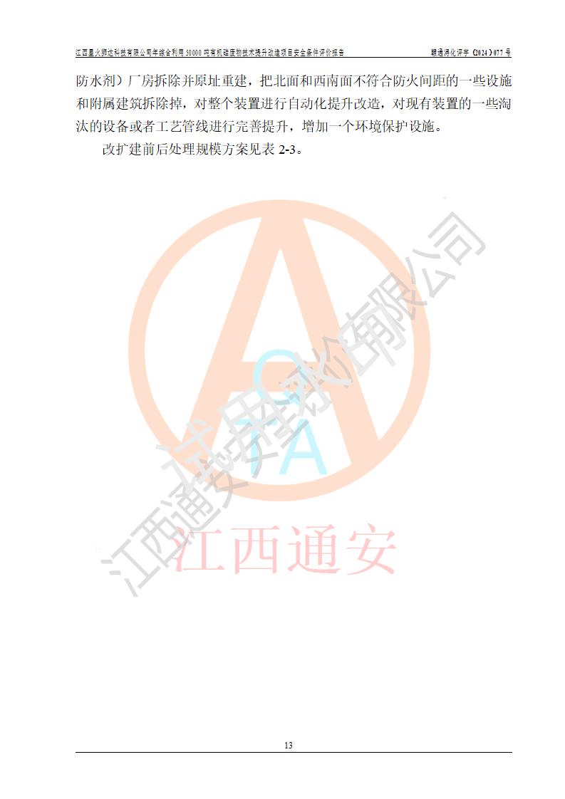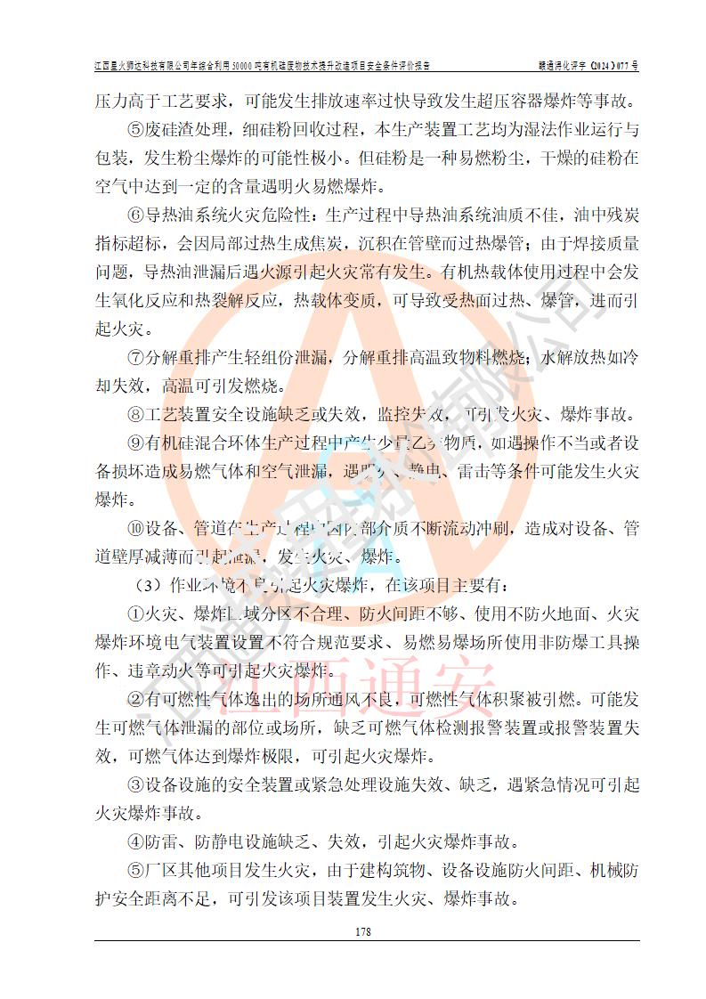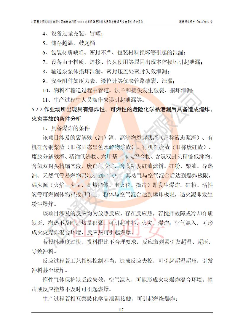 江西星火獅達科技有限公司年綜合利用50000噸有機硅廢物技術(shù)提升改造項目安全條件評價報告