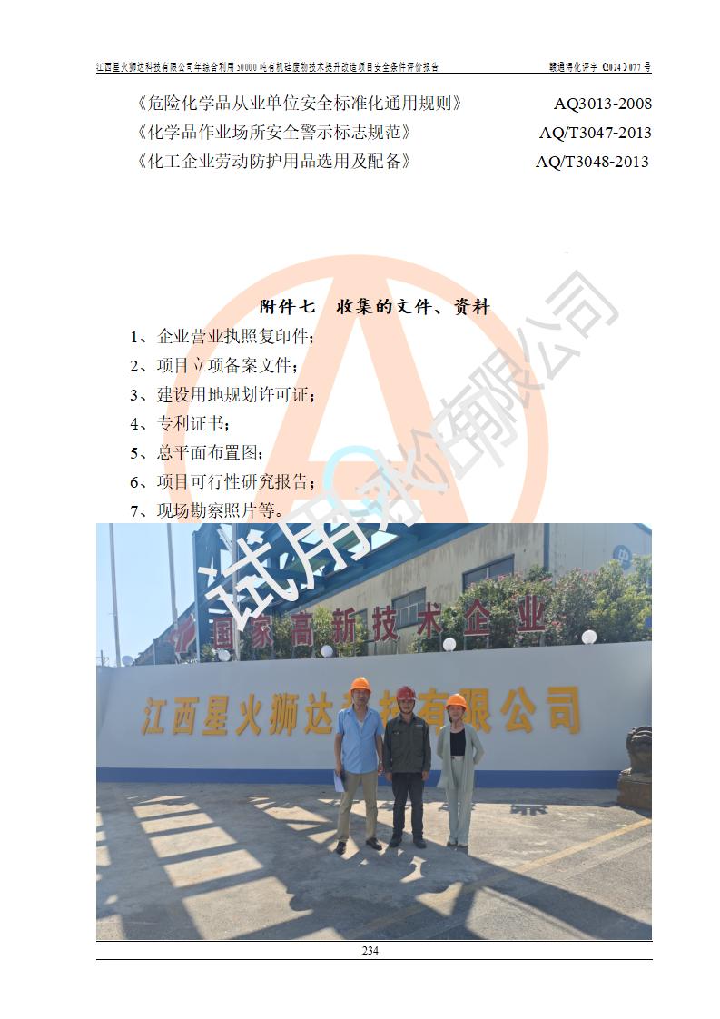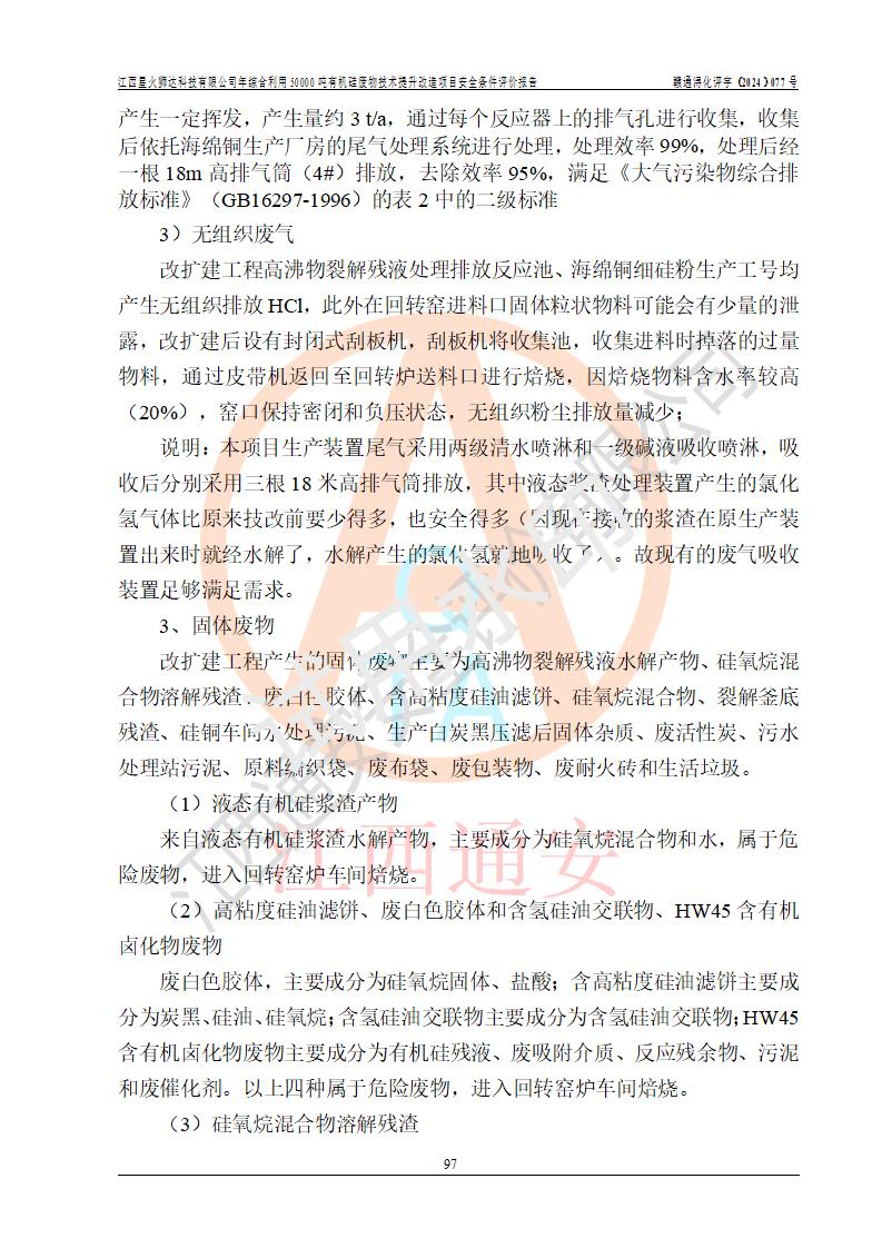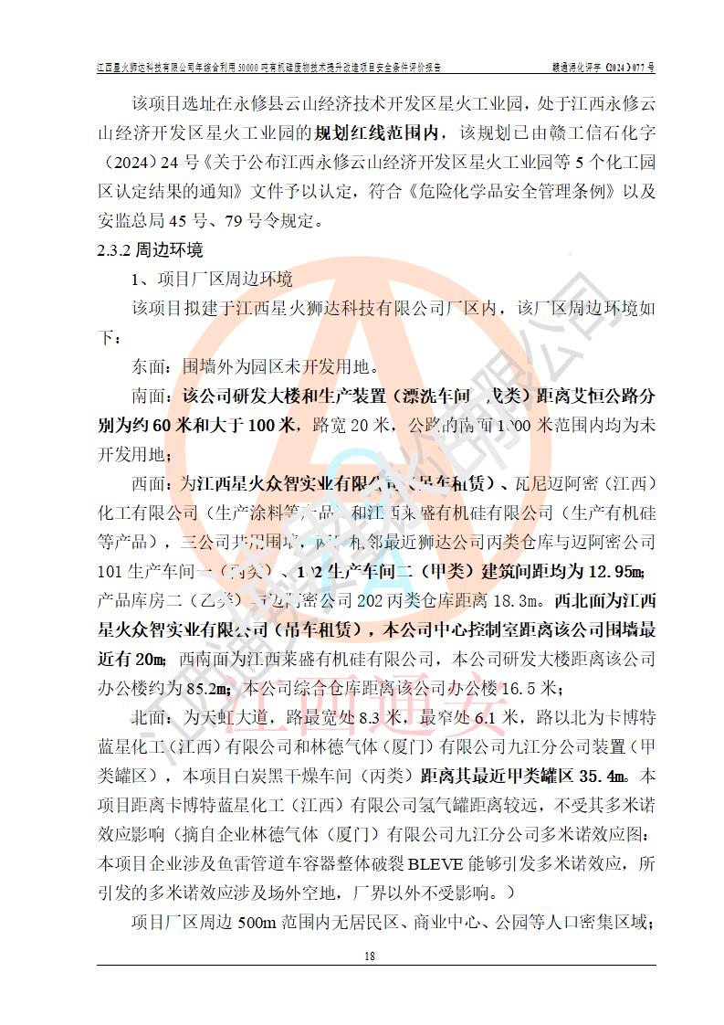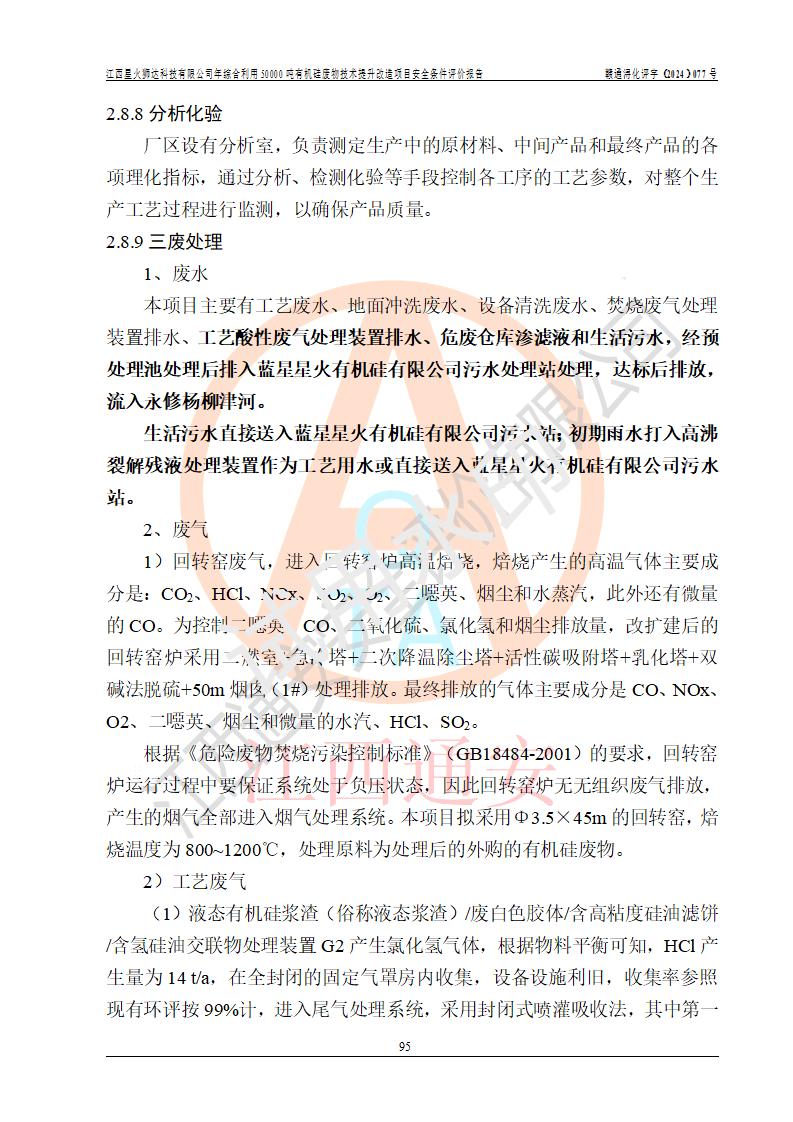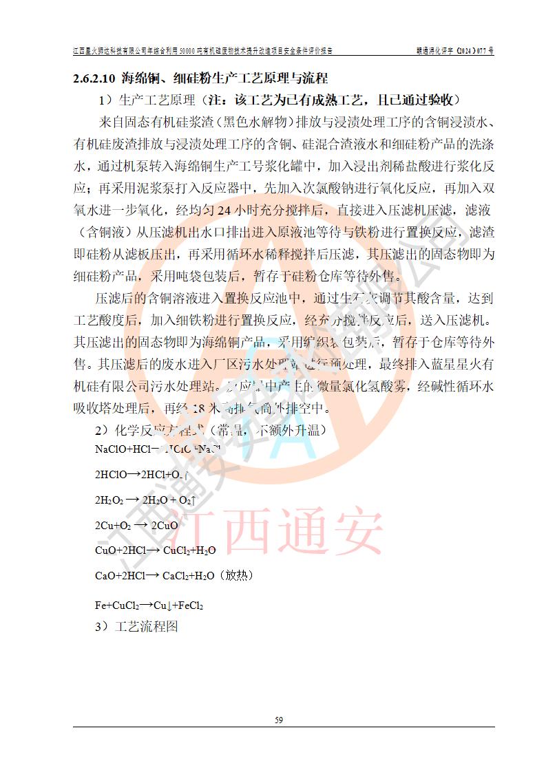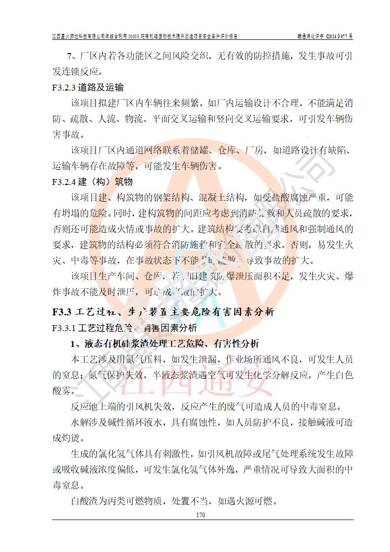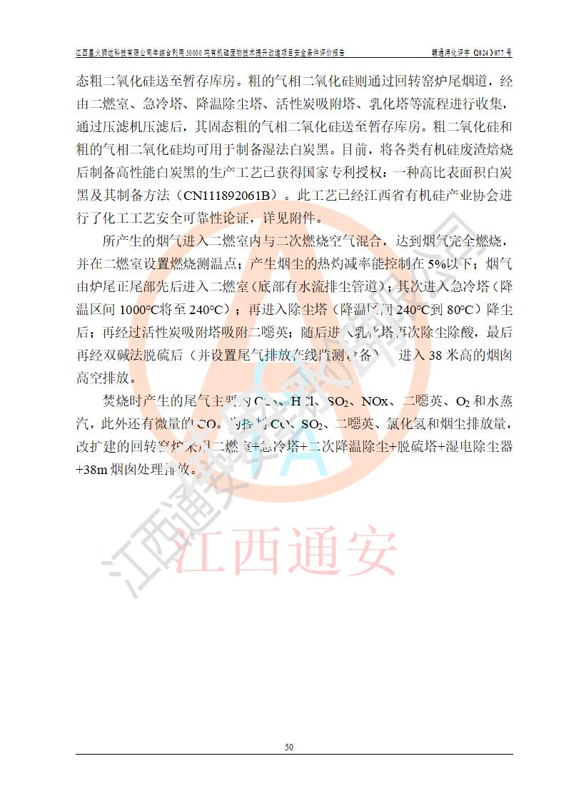 江西星火獅達科技有限公司年綜合利用50000噸有機硅廢物技術(shù)提升改造項目安全條件評價報告