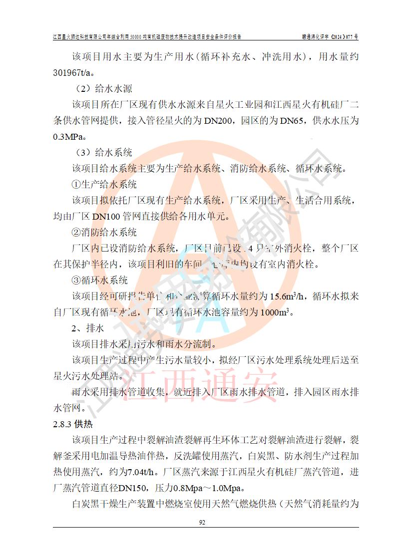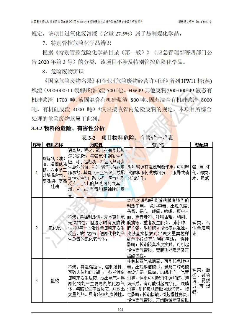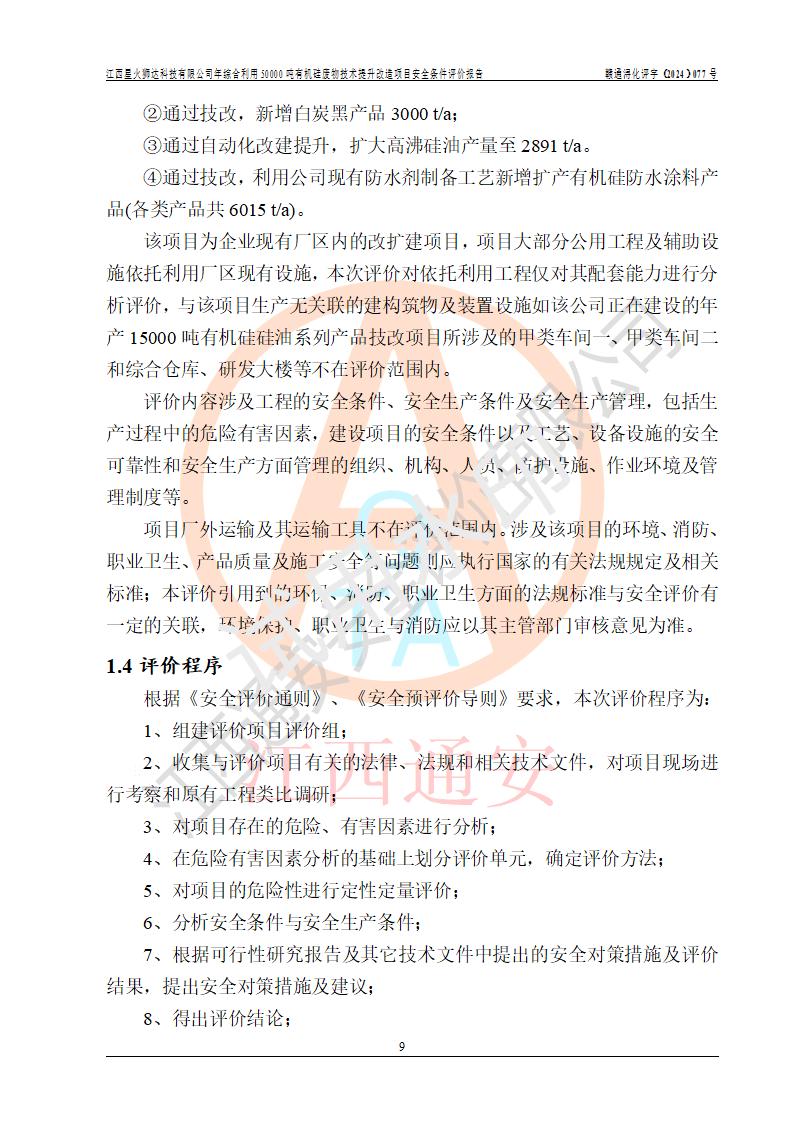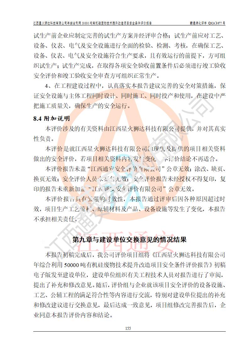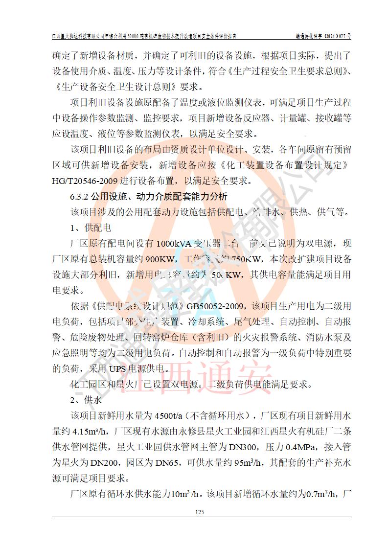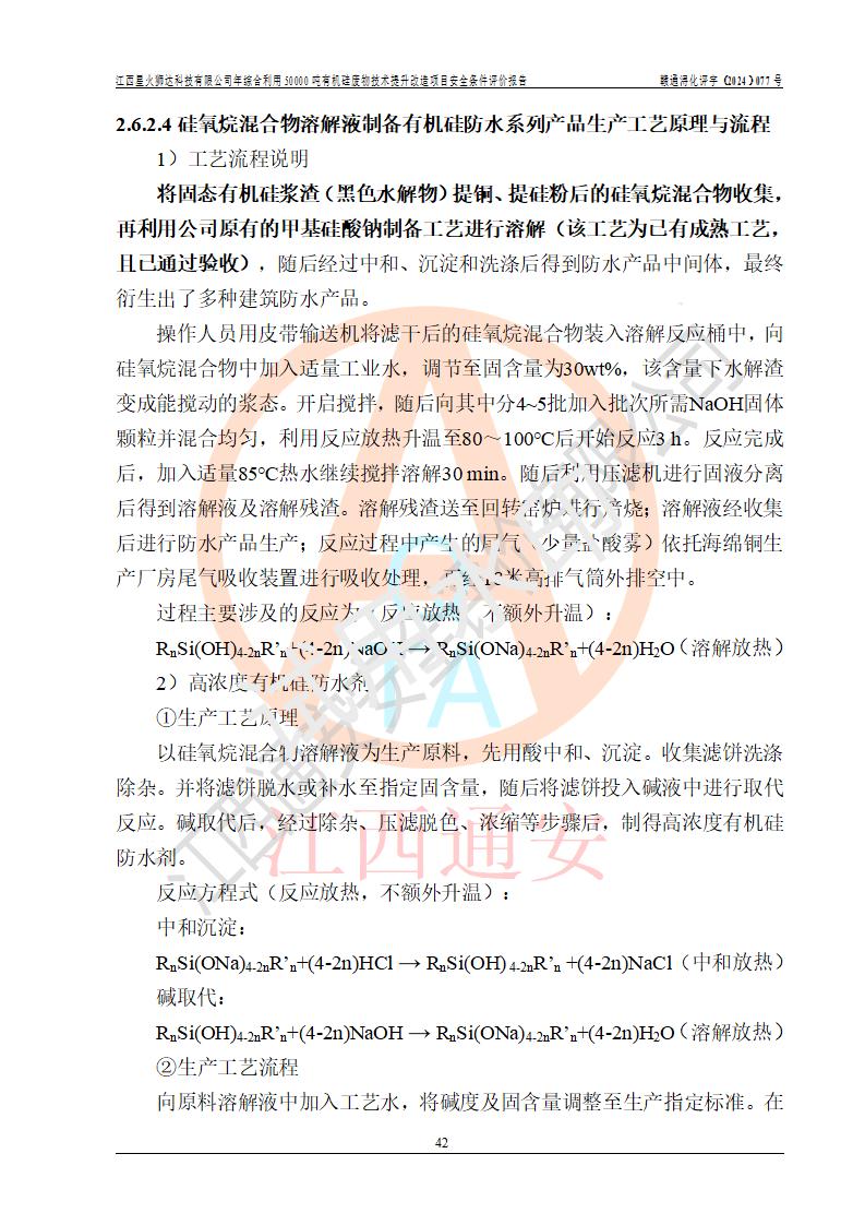 江西星火獅達科技有限公司年綜合利用50000噸有機硅廢物技術(shù)提升改造項目安全條件評價報告