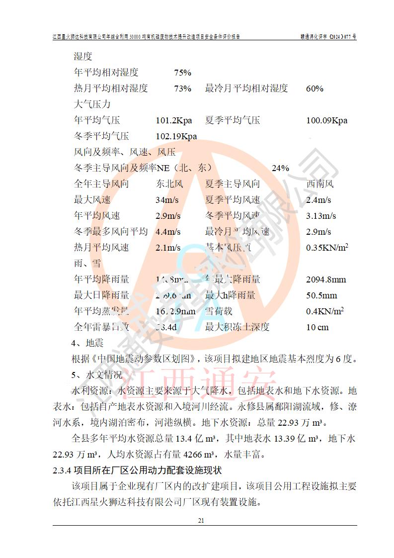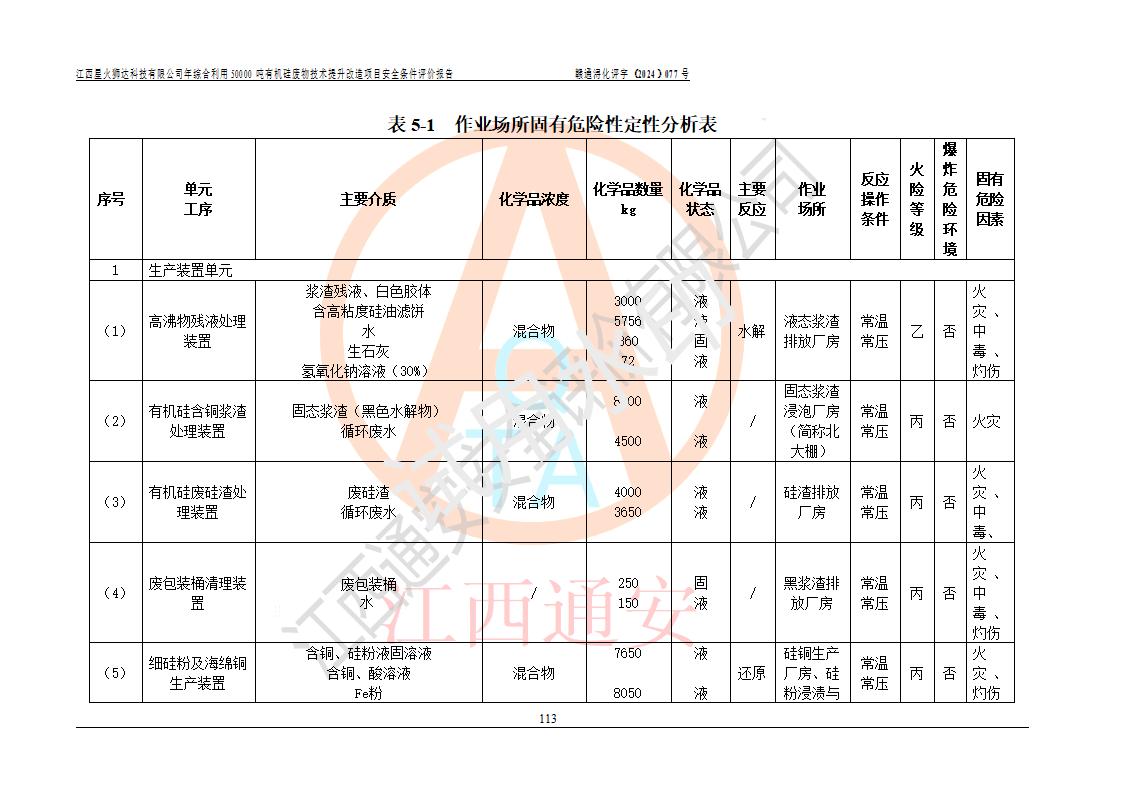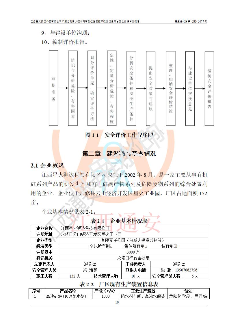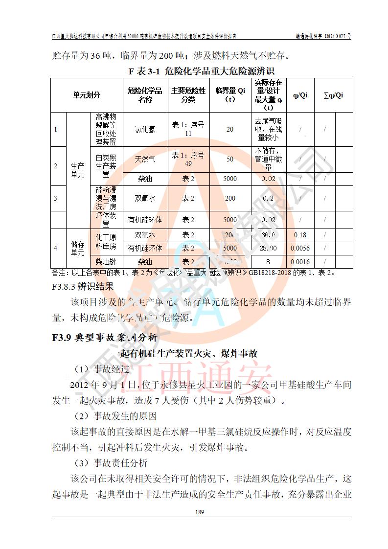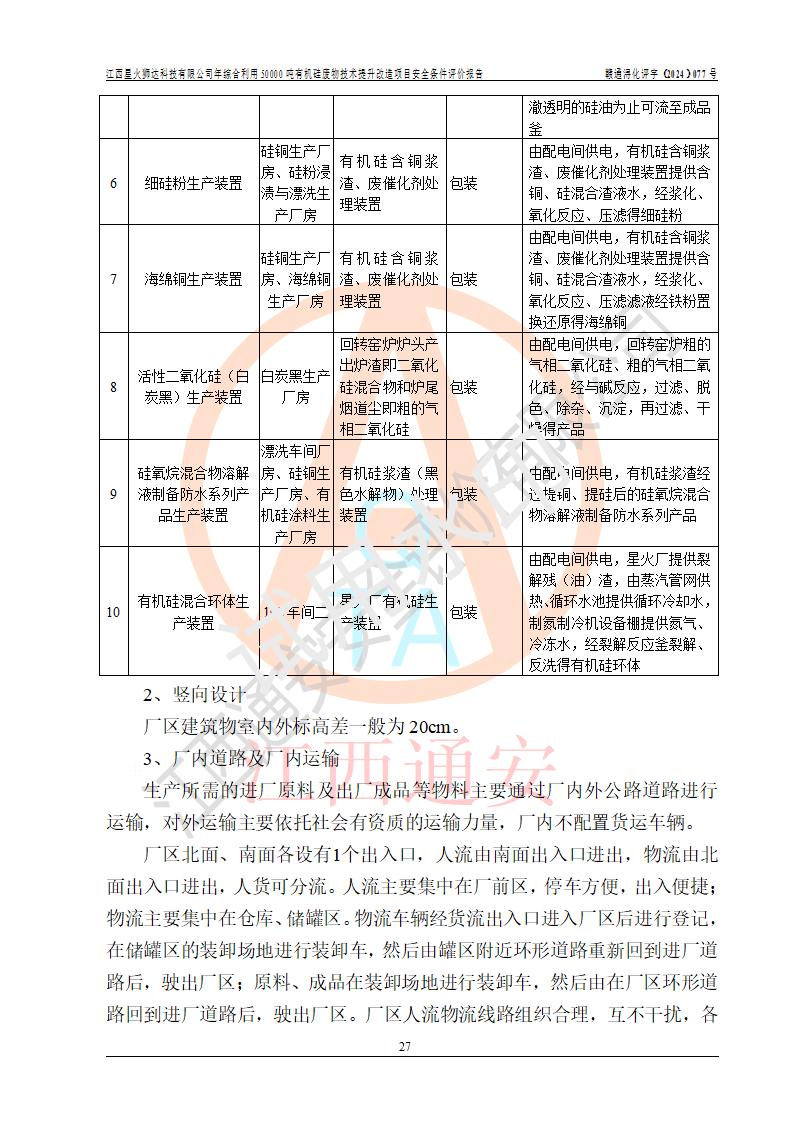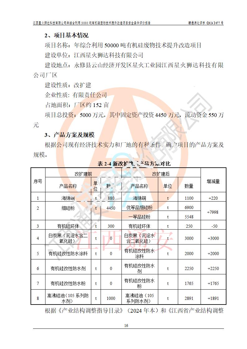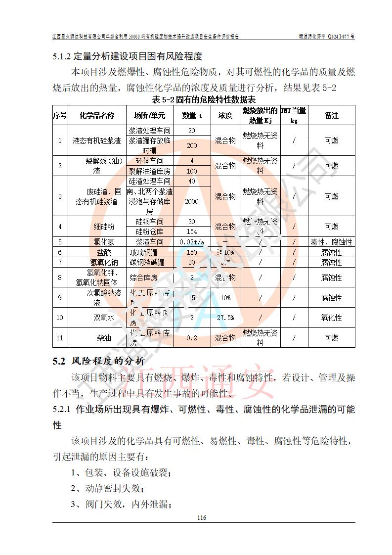 江西星火獅達科技有限公司年綜合利用50000噸有機硅廢物技術(shù)提升改造項目安全條件評價報告