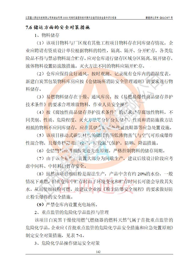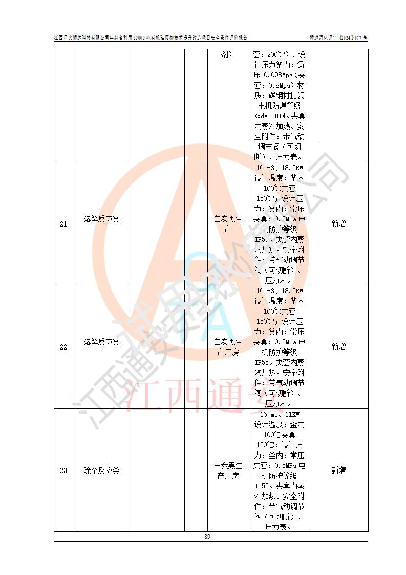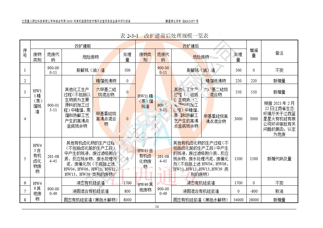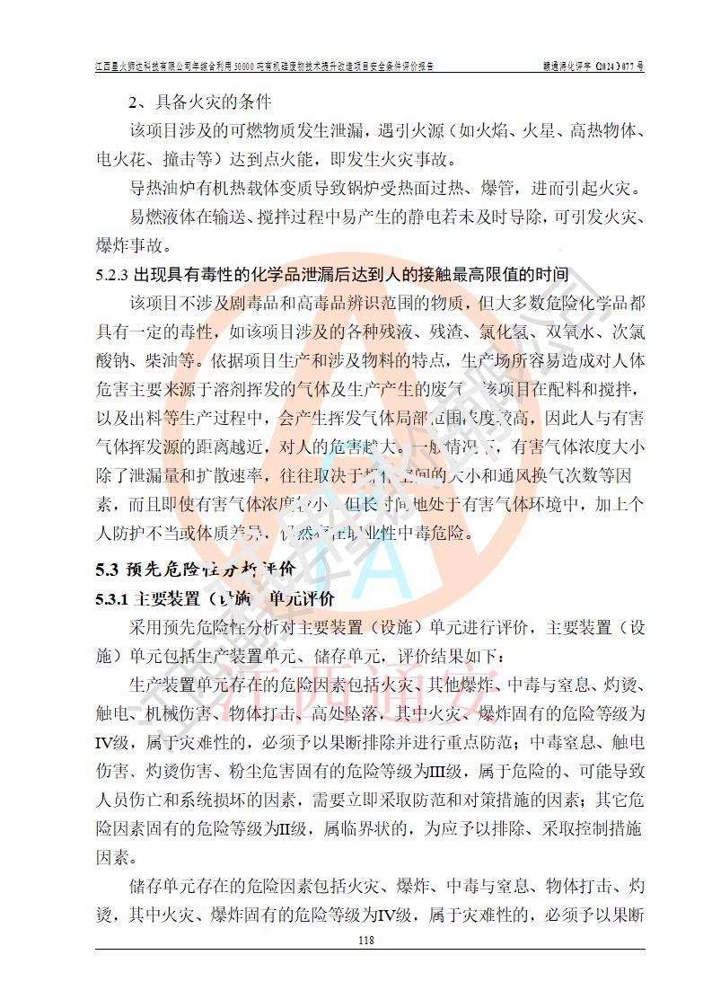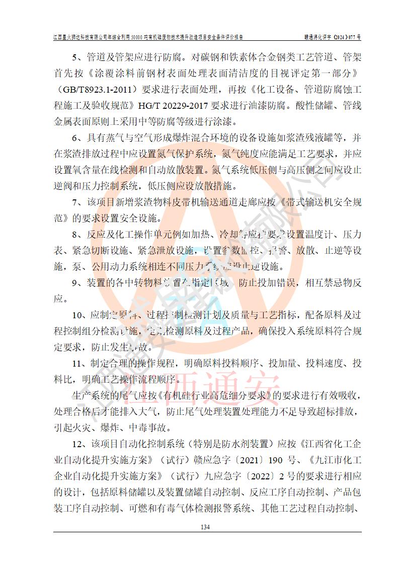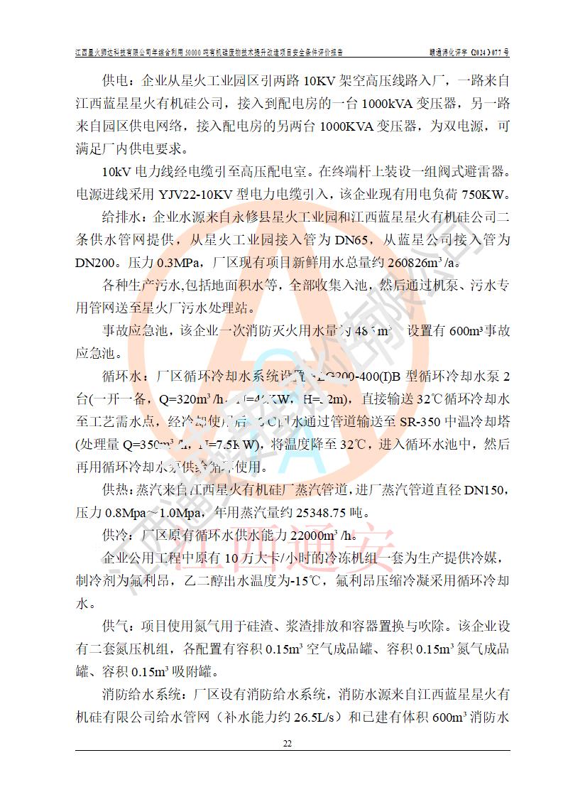 江西星火獅達科技有限公司年綜合利用50000噸有機硅廢物技術(shù)提升改造項目安全條件評價報告