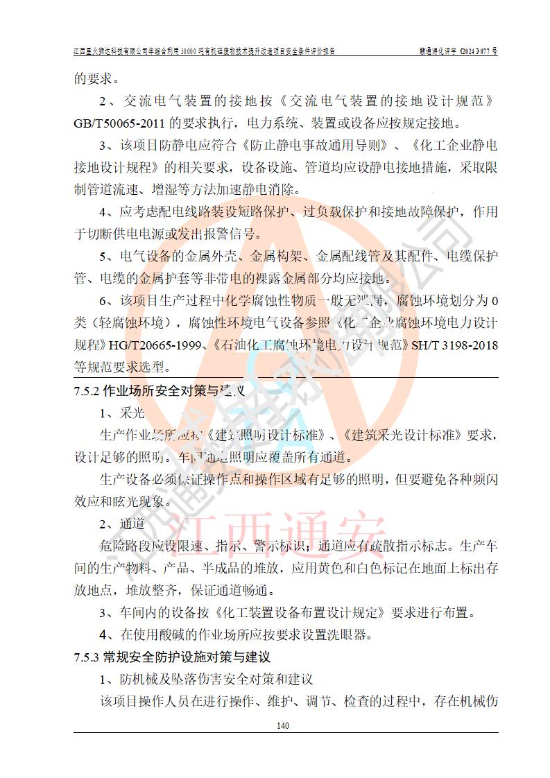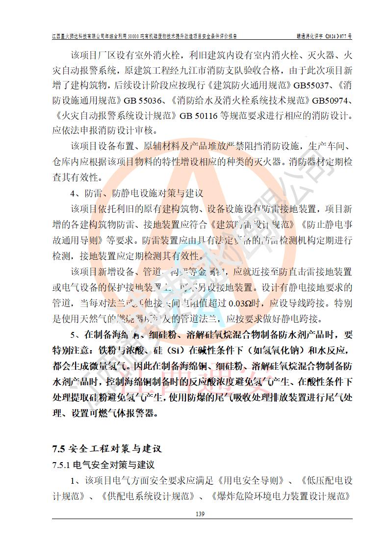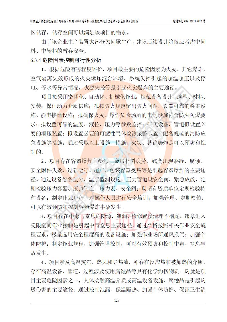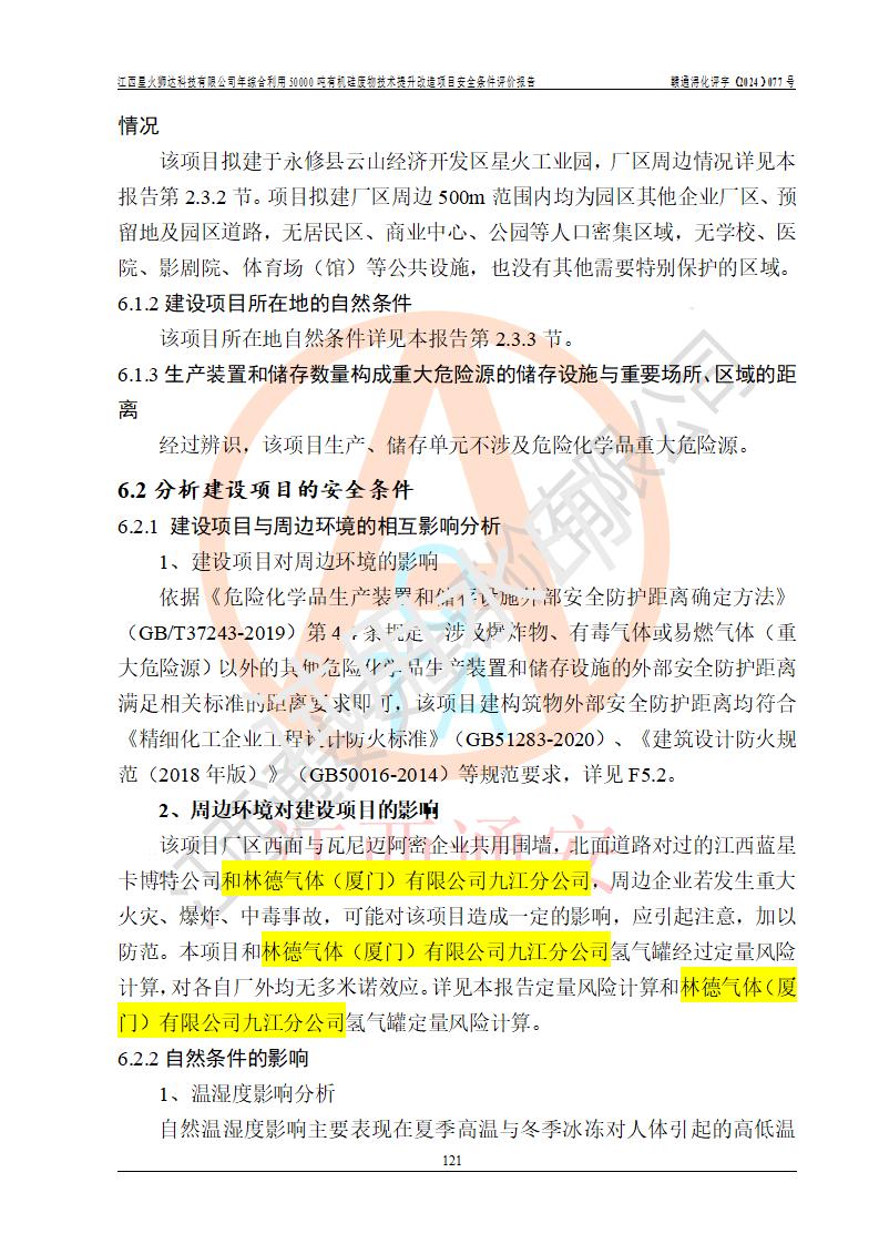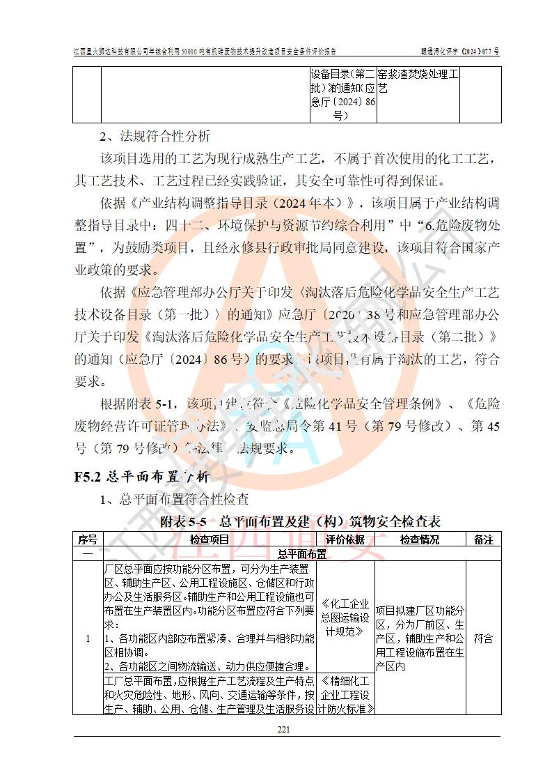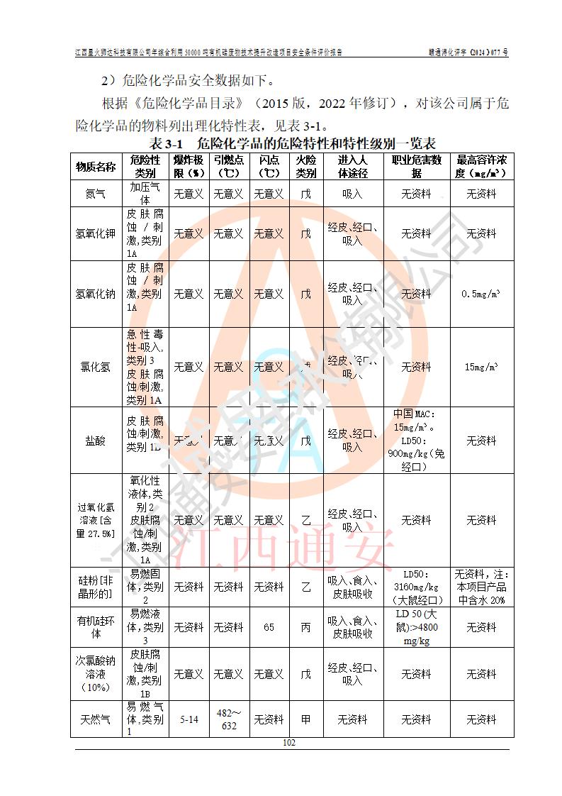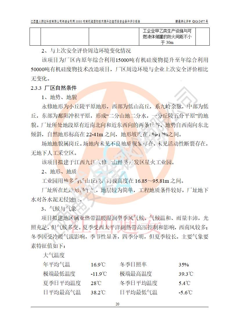 江西星火獅達科技有限公司年綜合利用50000噸有機硅廢物技術(shù)提升改造項目安全條件評價報告