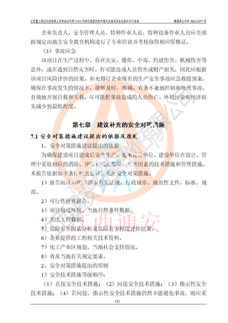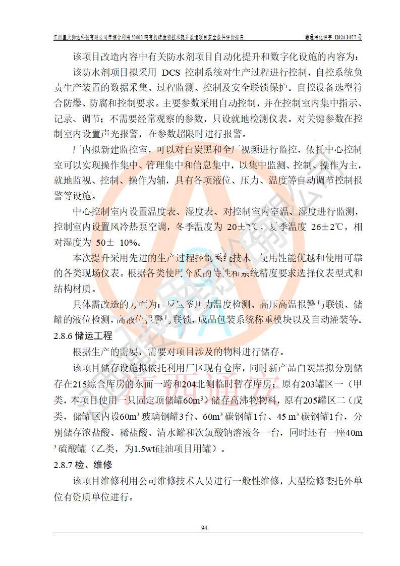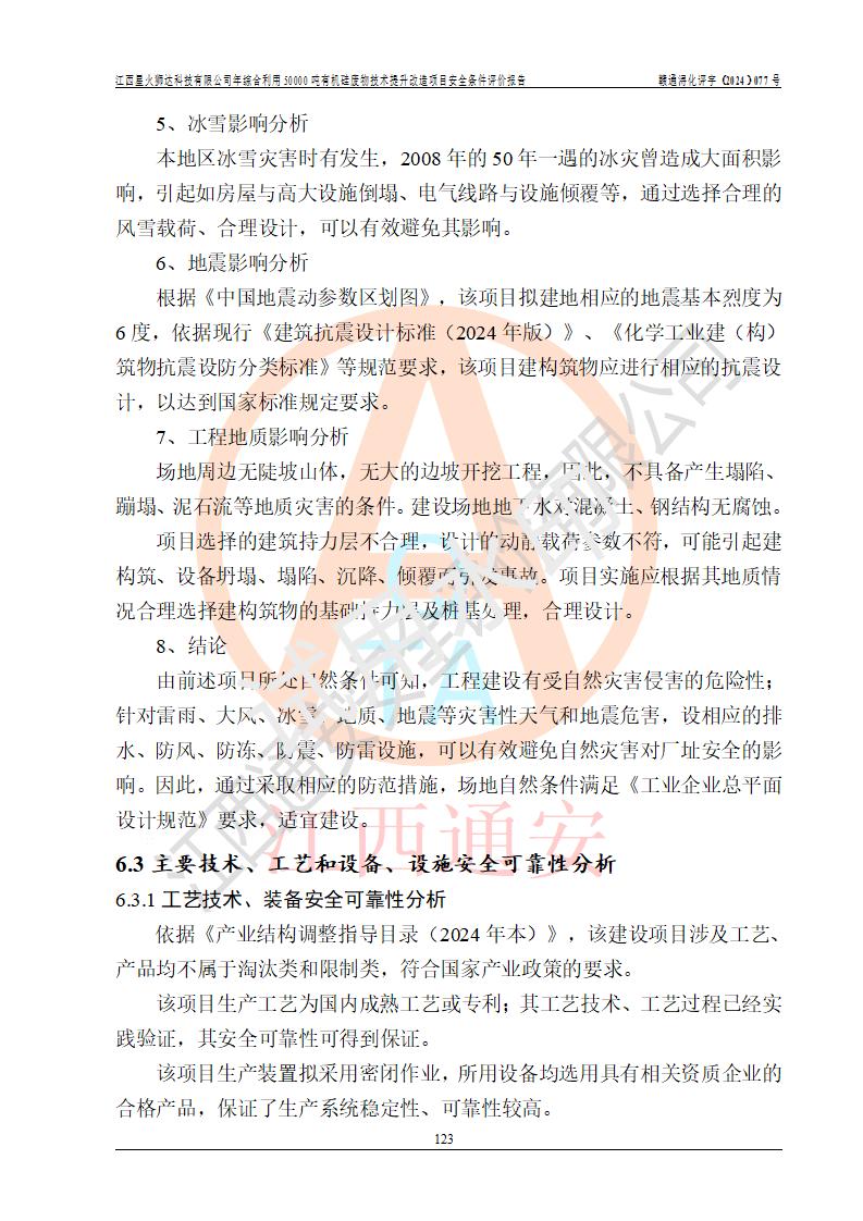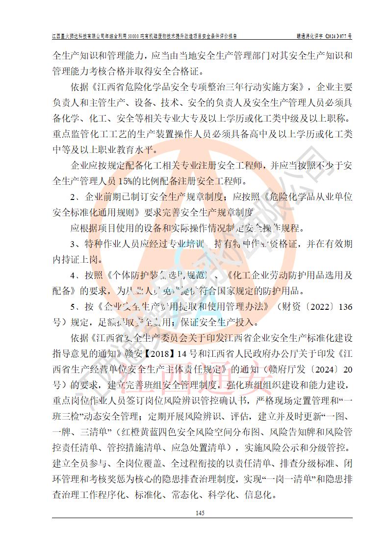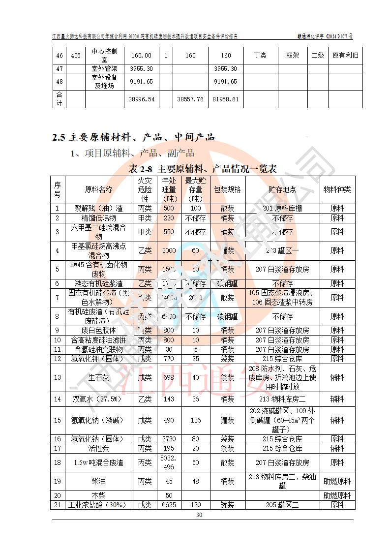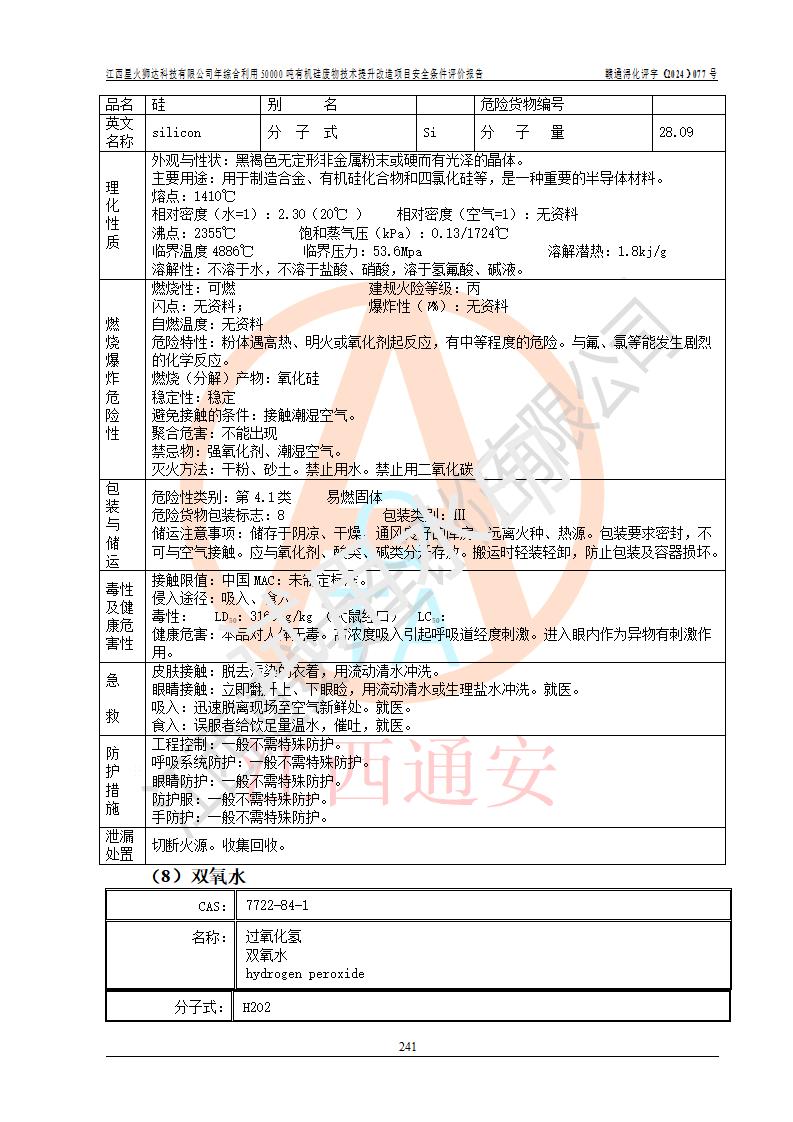 江西星火獅達科技有限公司年綜合利用50000噸有機硅廢物技術(shù)提升改造項目安全條件評價報告