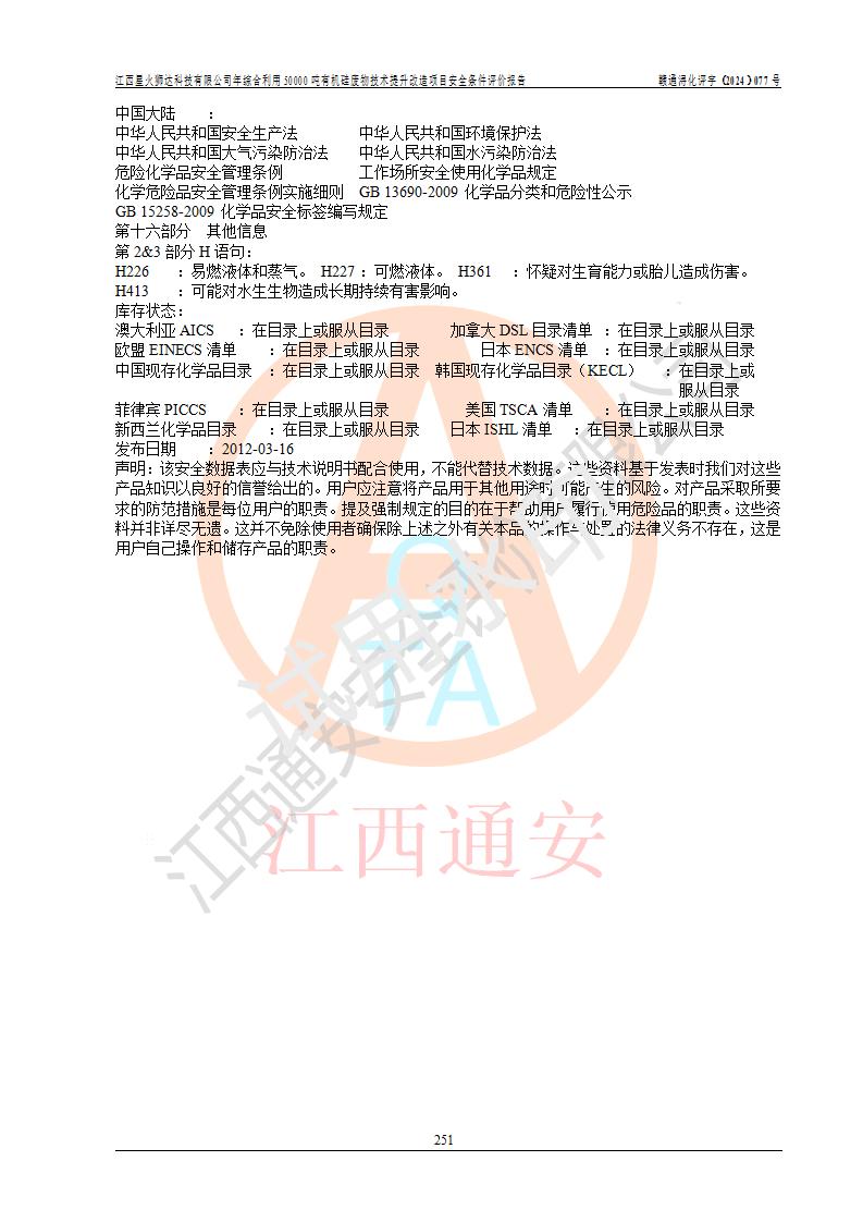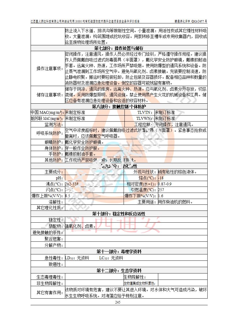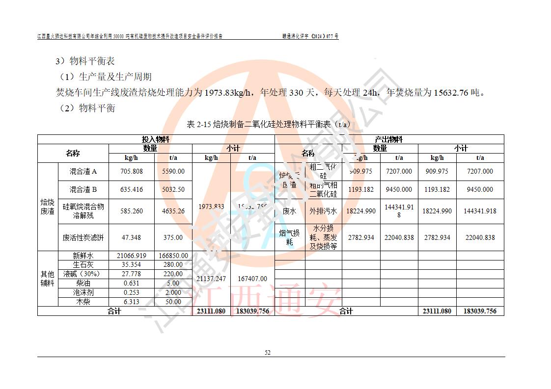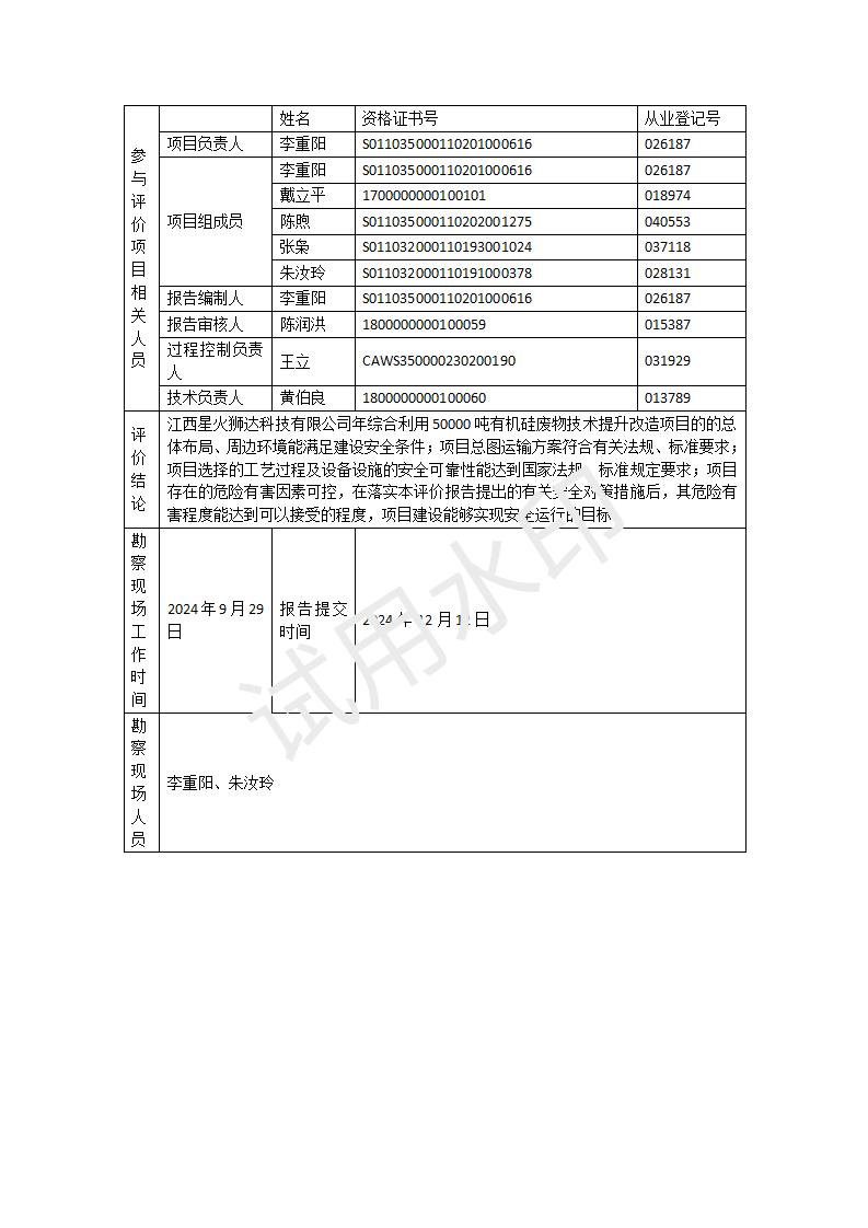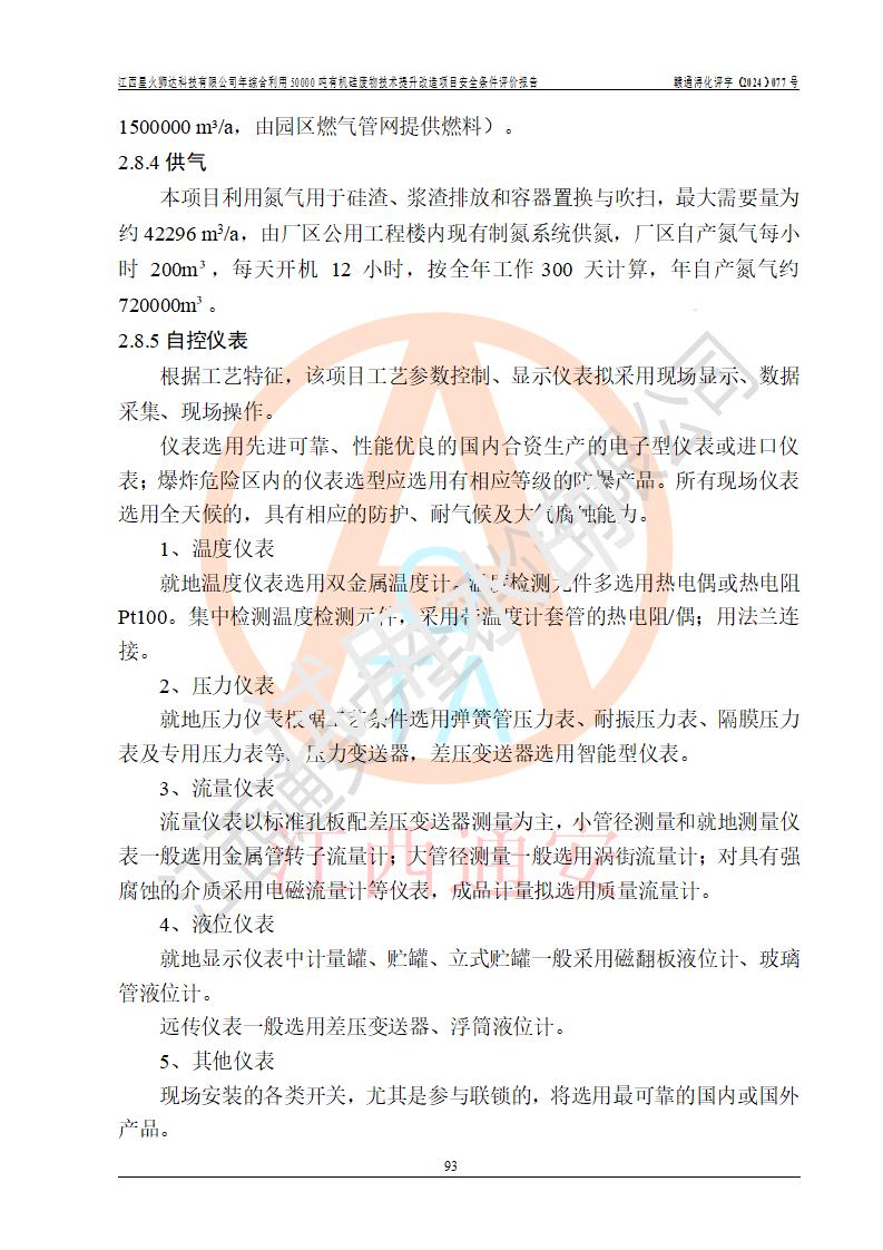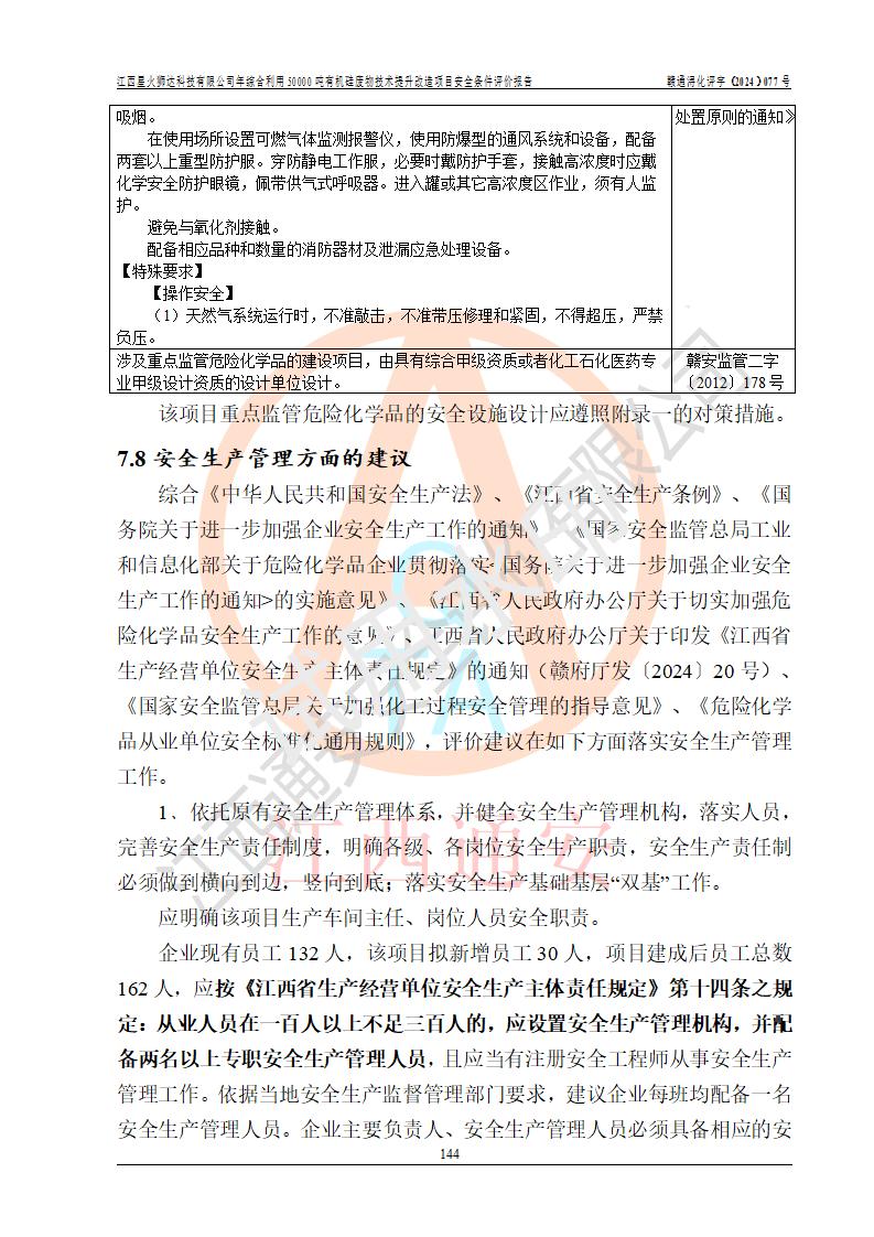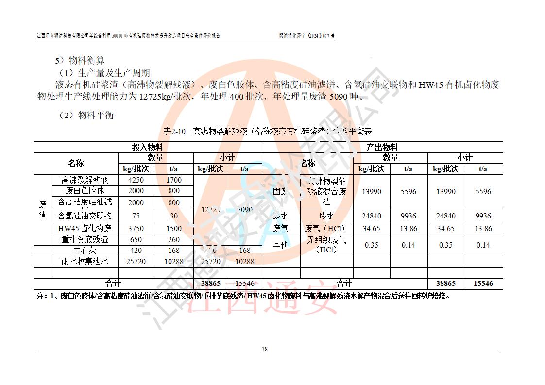 江西星火獅達科技有限公司年綜合利用50000噸有機硅廢物技術(shù)提升改造項目安全條件評價報告