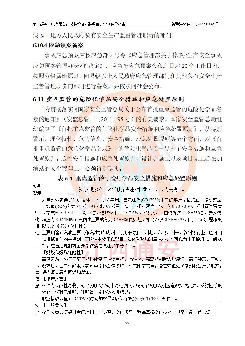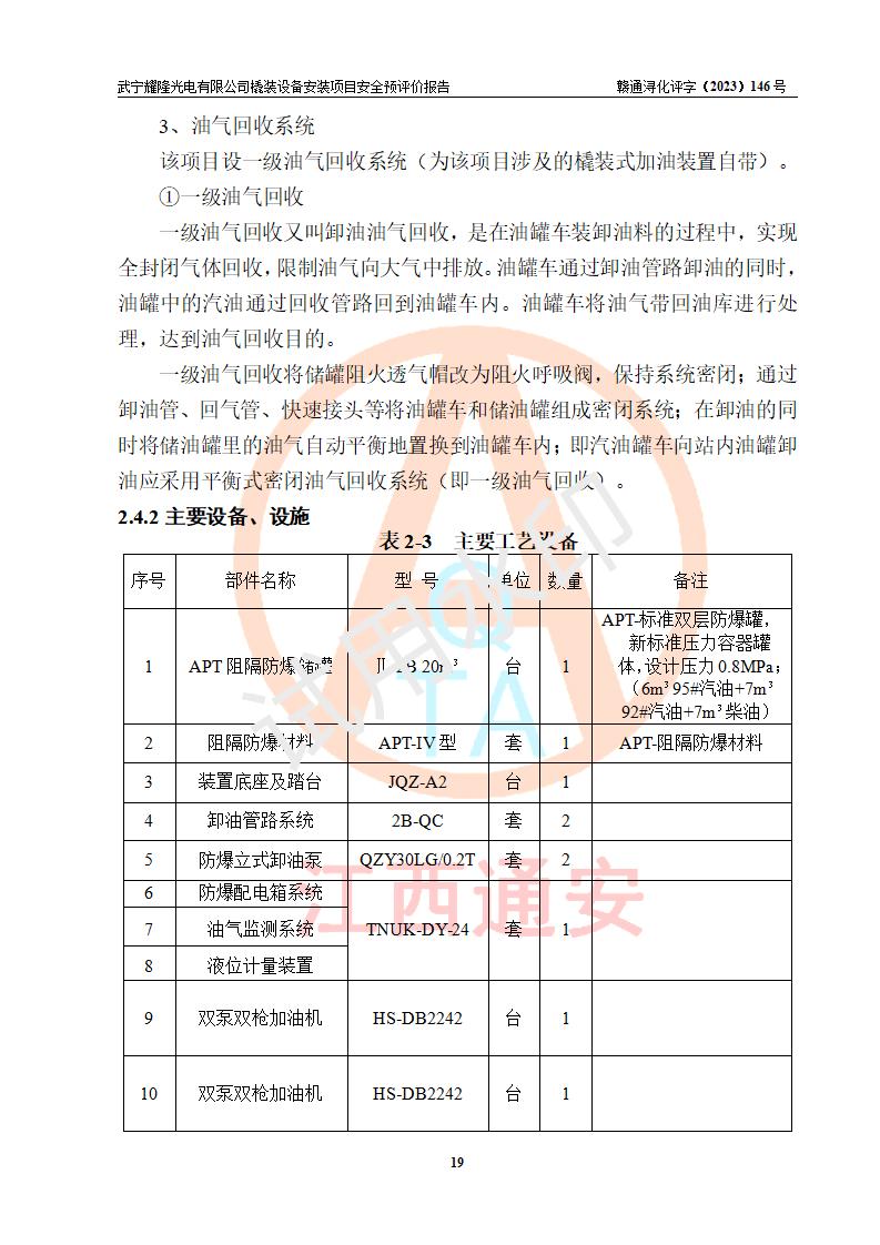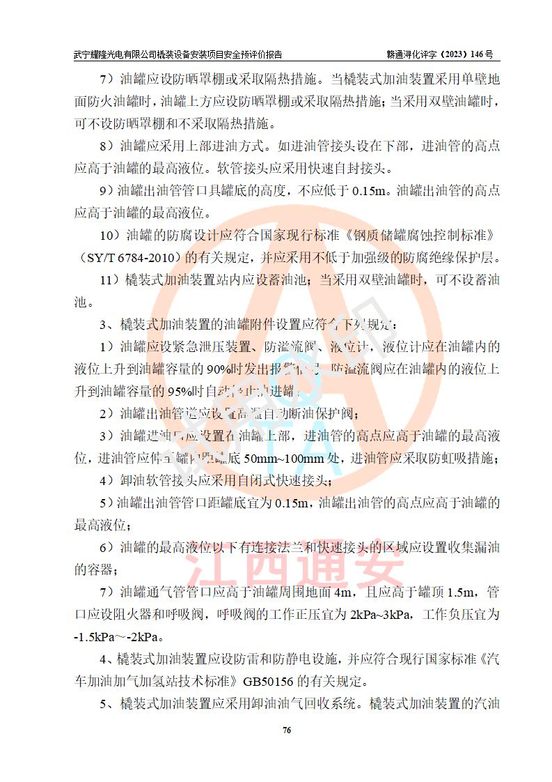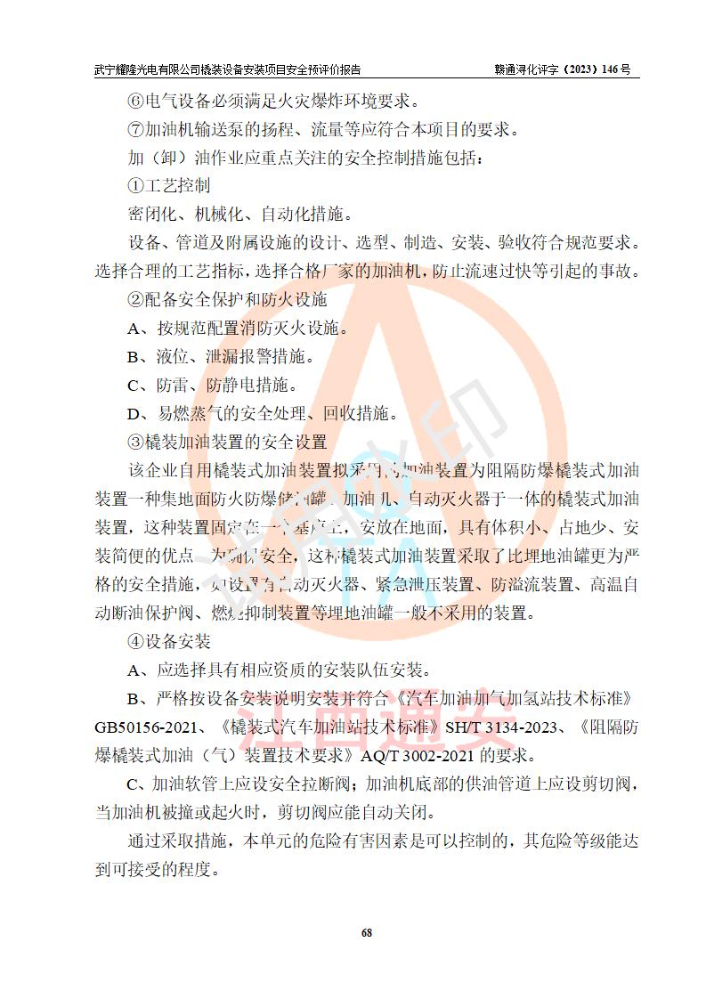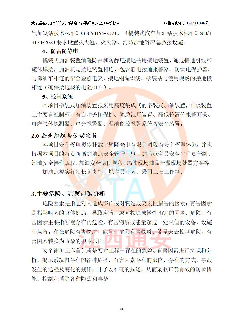 項(xiàng)目簡介 | 武寧耀隆光電有限公司,成立于2013年07月04日。公司地址位于江西省九江市武寧縣萬福工業(yè)園。經(jīng)營范圍:節(jié)能燈、照明電器、LED照明、燈具配件、銷售(以上項(xiàng)目**有專項(xiàng)規(guī)定的憑**許可證經(jīng)營)。 武寧耀隆光電有限公司為了滿足公司自用**內(nèi)部加油的需要,擬在九江市武寧縣萬福工業(yè)園武寧耀隆光電有限公司自有廠區(qū)用地紅線內(nèi)的南側(cè)閑置空地新建一處企業(yè)自用橇裝式加油裝置,該企業(yè)自用橇裝式加油裝置擬采用的加油裝置為阻隔防爆橇裝式加油裝置,是集加油機(jī)、阻隔防爆儲(chǔ)油罐、阻隔防爆油氣回收裝置和自動(dòng)滅火器于一體的地面加油設(shè)備(橇裝機(jī)),屬于成套裝置。該項(xiàng)目阻隔防爆橇裝式加油裝置擬設(shè)置阻隔防爆儲(chǔ)罐1個(gè)(APT-標(biāo)準(zhǔn)雙層防爆罐),總?cè)萘繛?/span>20m3 該項(xiàng)目擬建內(nèi)部自用加油點(diǎn)涉及的汽油、柴油為易燃液體,屬于《危險(xiǎn)化學(xué)品目錄》([2022]第8號(hào)公告修改)內(nèi)危險(xiǎn)化學(xué)品,汽油還屬于**重點(diǎn)監(jiān)管和特別管控的危險(xiǎn)化學(xué)品。 該項(xiàng)目擬建內(nèi)部加油點(diǎn)不涉及劇毒品、監(jiān)控化學(xué)品、易制毒化學(xué)品、易制爆化學(xué)品。 該加油站點(diǎn)涉及的汽油屬于《危險(xiǎn)化學(xué)品重大危險(xiǎn)源辨識(shí)》范圍內(nèi)物質(zhì),其加油單元與儲(chǔ)存單元均未*過規(guī)定的臨界量,未構(gòu)成危險(xiǎn)化學(xué)品重大危險(xiǎn)源。 | |||