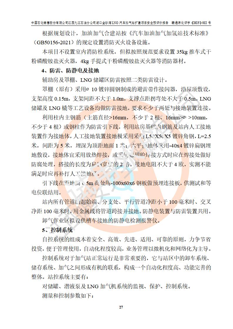 評價報告名稱 | 中國石化銷售股份有限公司江西九江石油分公司湖口金砂灣LNG汽車加氣站擴建項目安全預評價報告 | ||||||