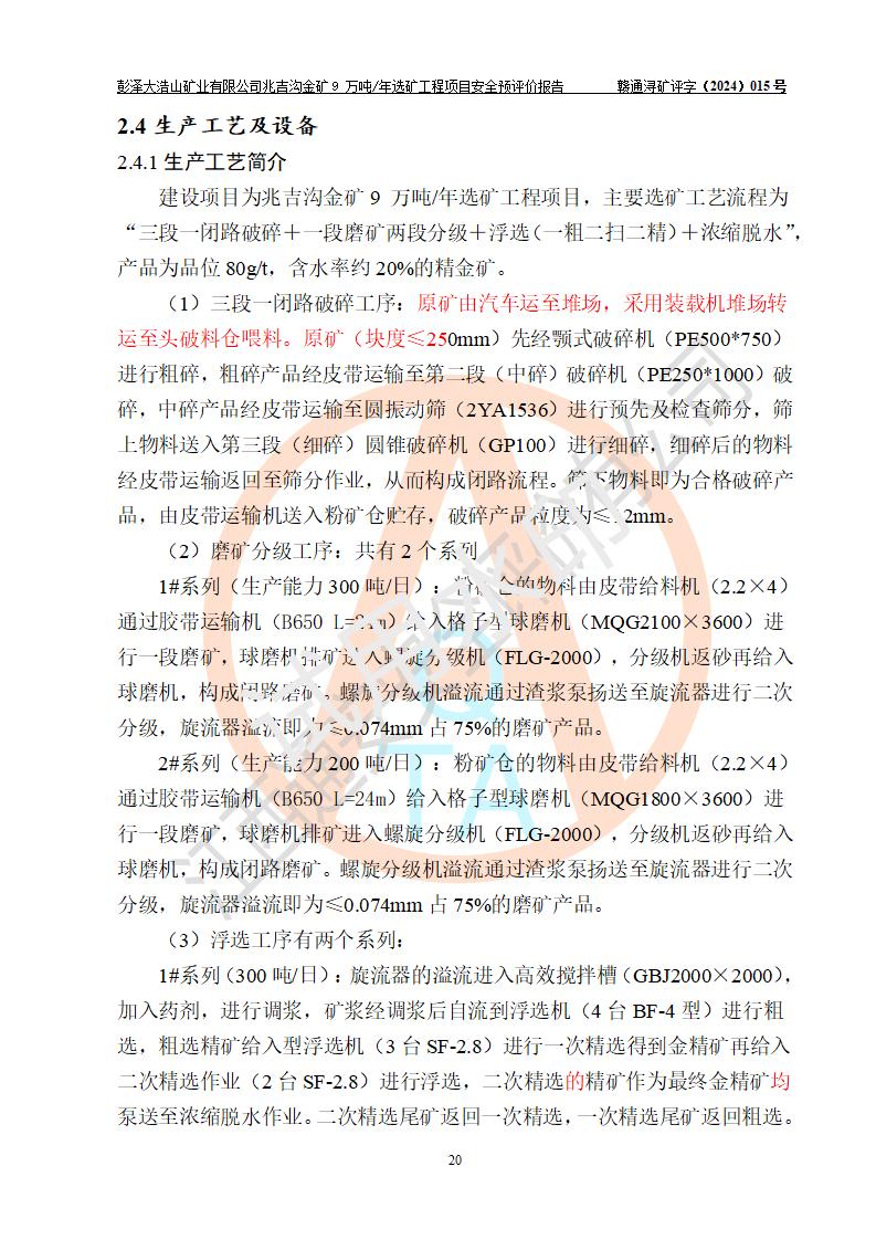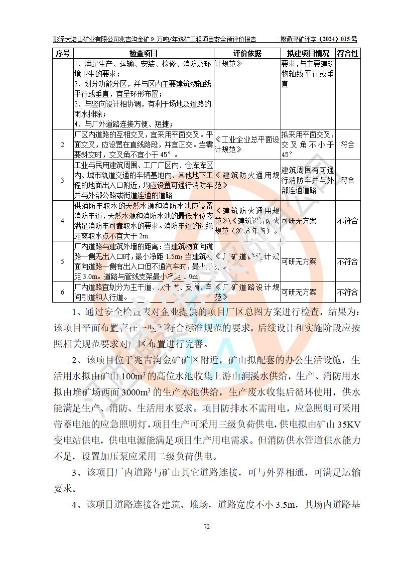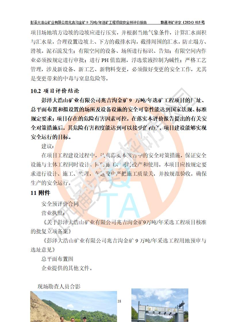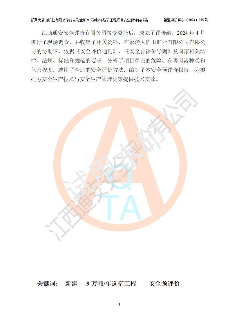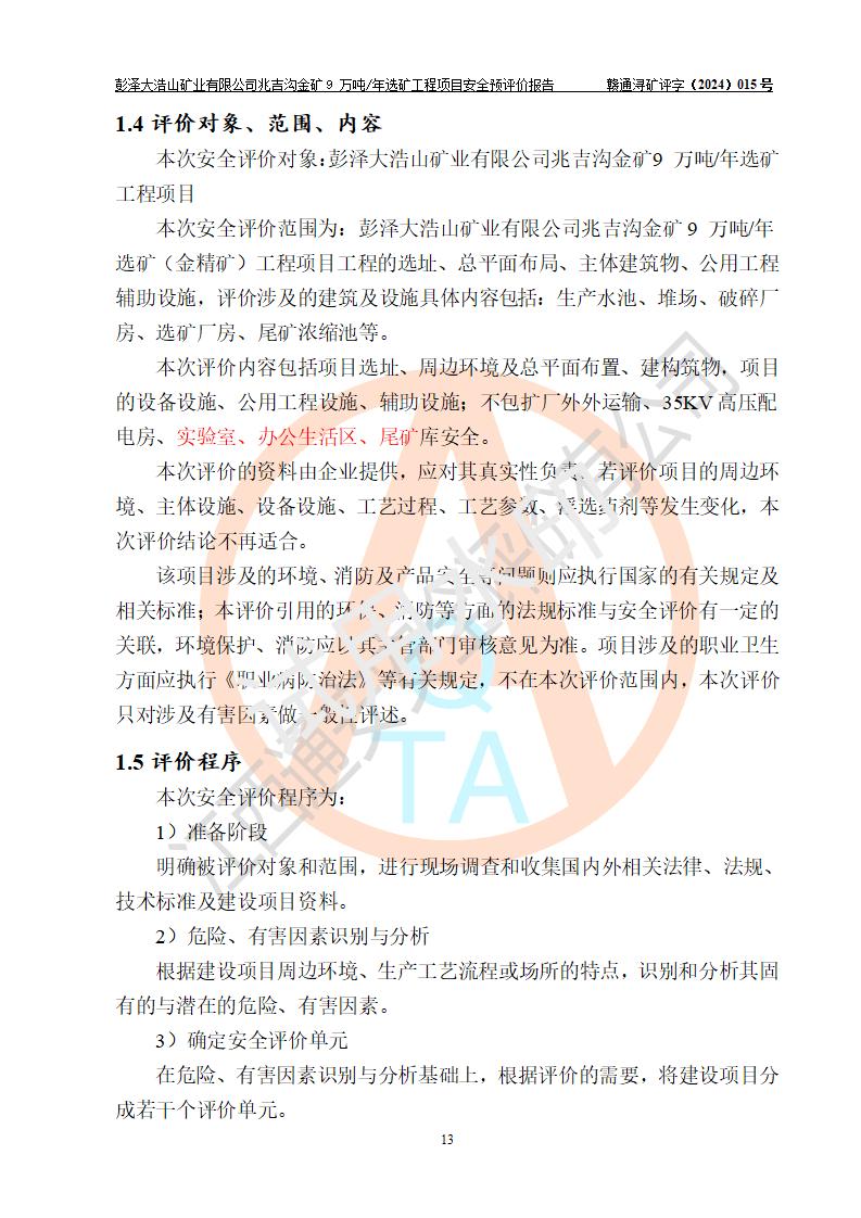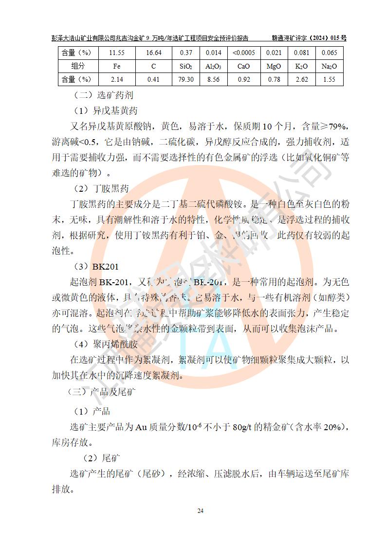 評(píng)價(jià)報(bào)告名稱 | 彭澤大浩山礦業(yè)有限公司兆吉溝金礦9 萬(wàn)噸/年選礦工程項(xiàng)目安全預(yù)評(píng)價(jià)報(bào)告 | |||||