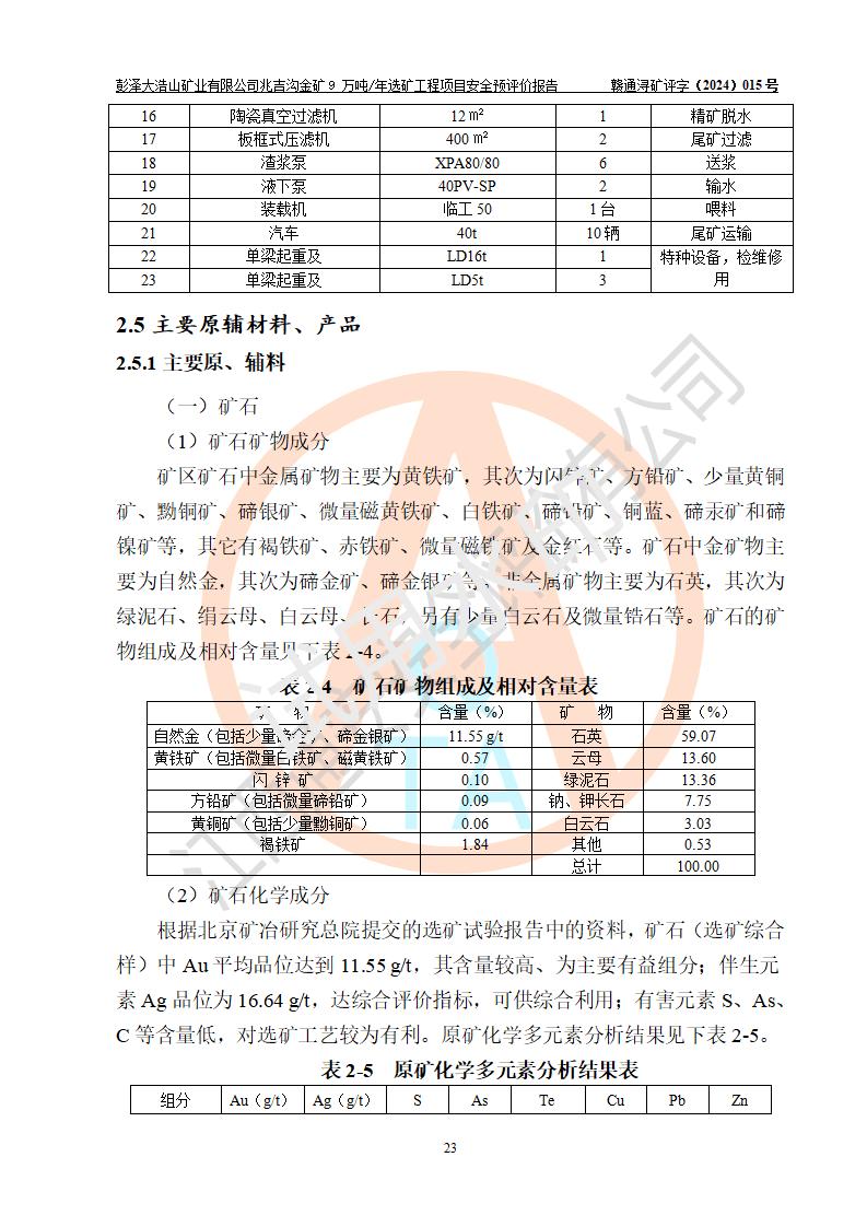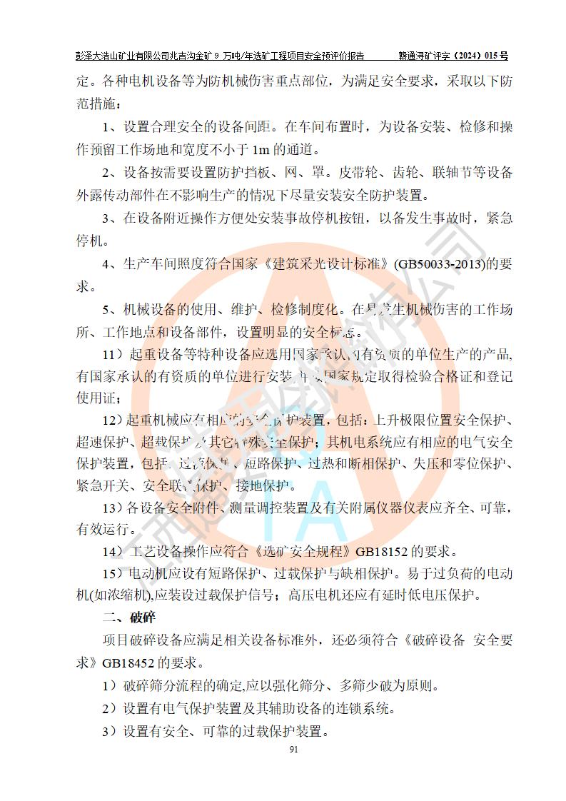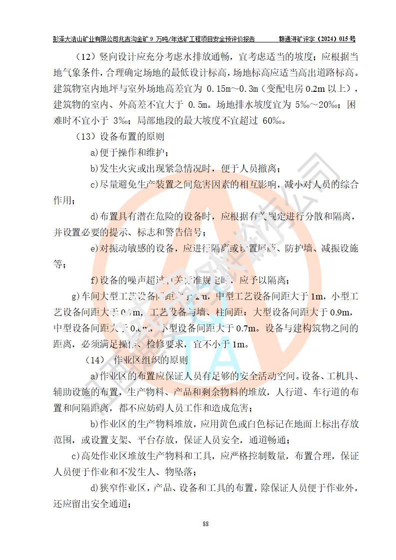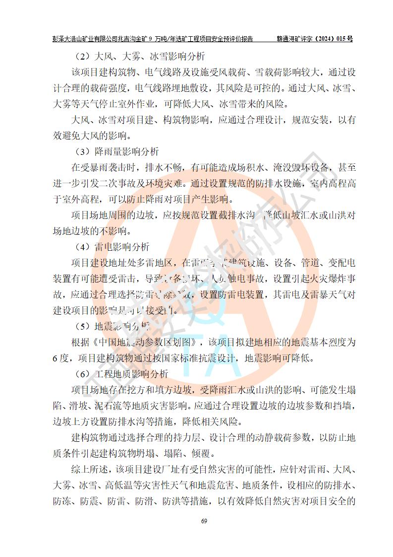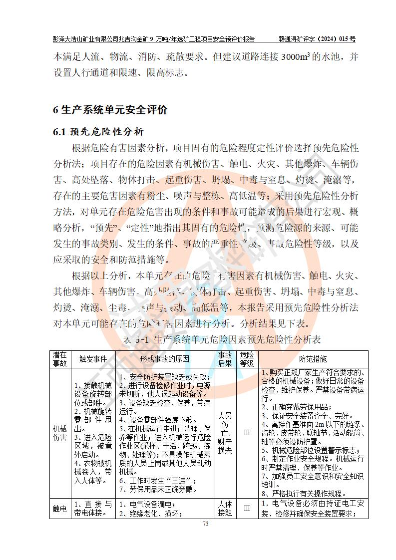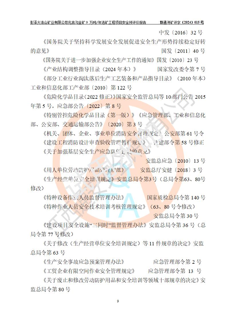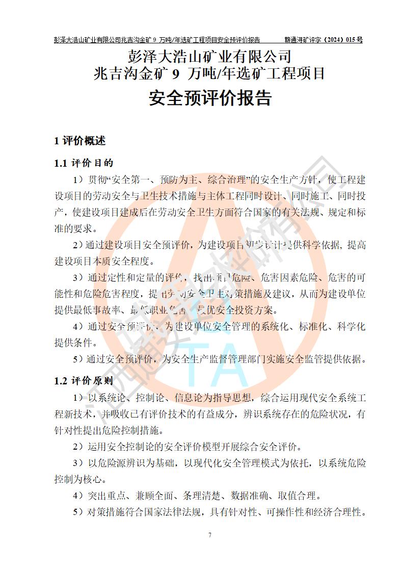 評(píng)價(jià)報(bào)告名稱 | 彭澤大浩山礦業(yè)有限公司兆吉溝金礦9 萬(wàn)噸/年選礦工程項(xiàng)目安全預(yù)評(píng)價(jià)報(bào)告 | |||||