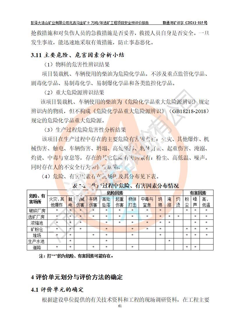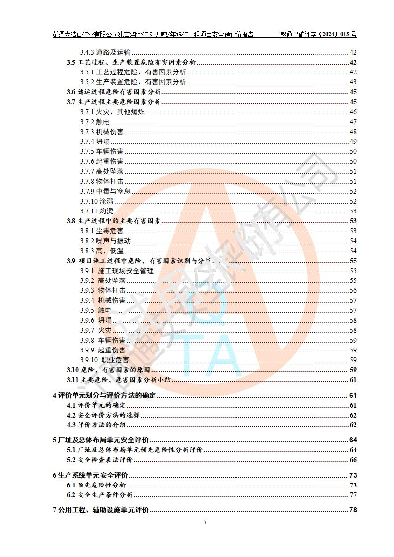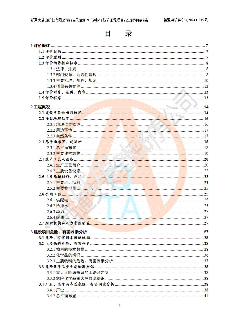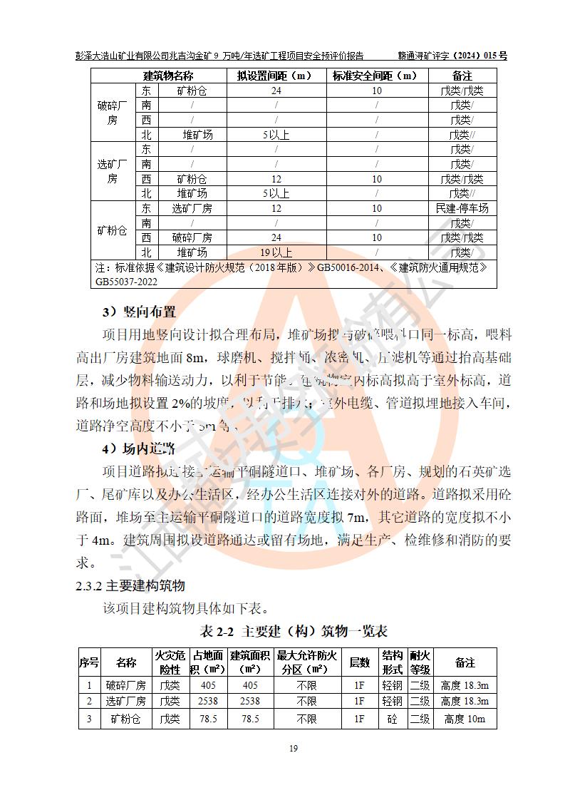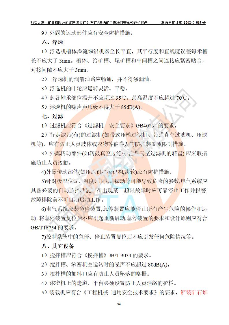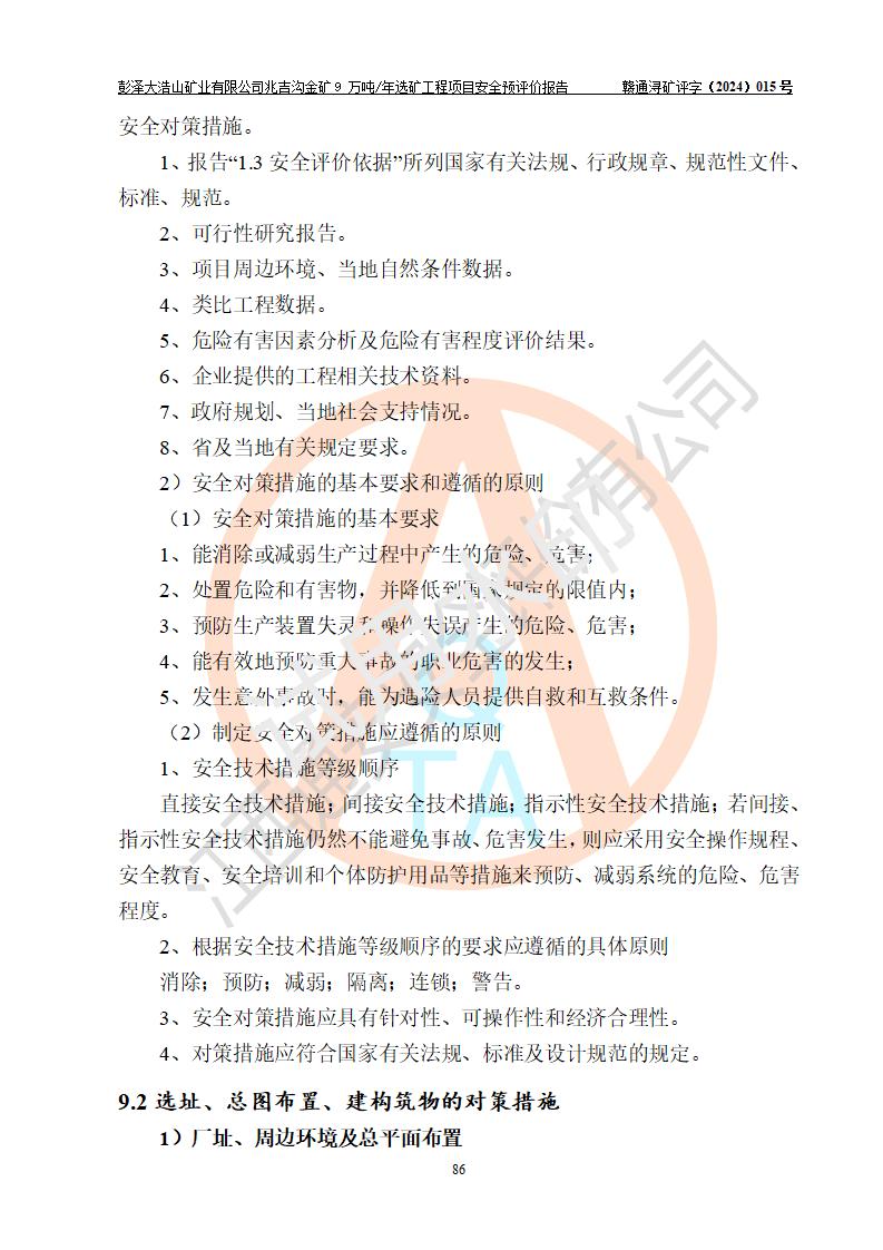 評(píng)價(jià)報(bào)告名稱 | 彭澤大浩山礦業(yè)有限公司兆吉溝金礦9 萬(wàn)噸/年選礦工程項(xiàng)目安全預(yù)評(píng)價(jià)報(bào)告 | |||||
