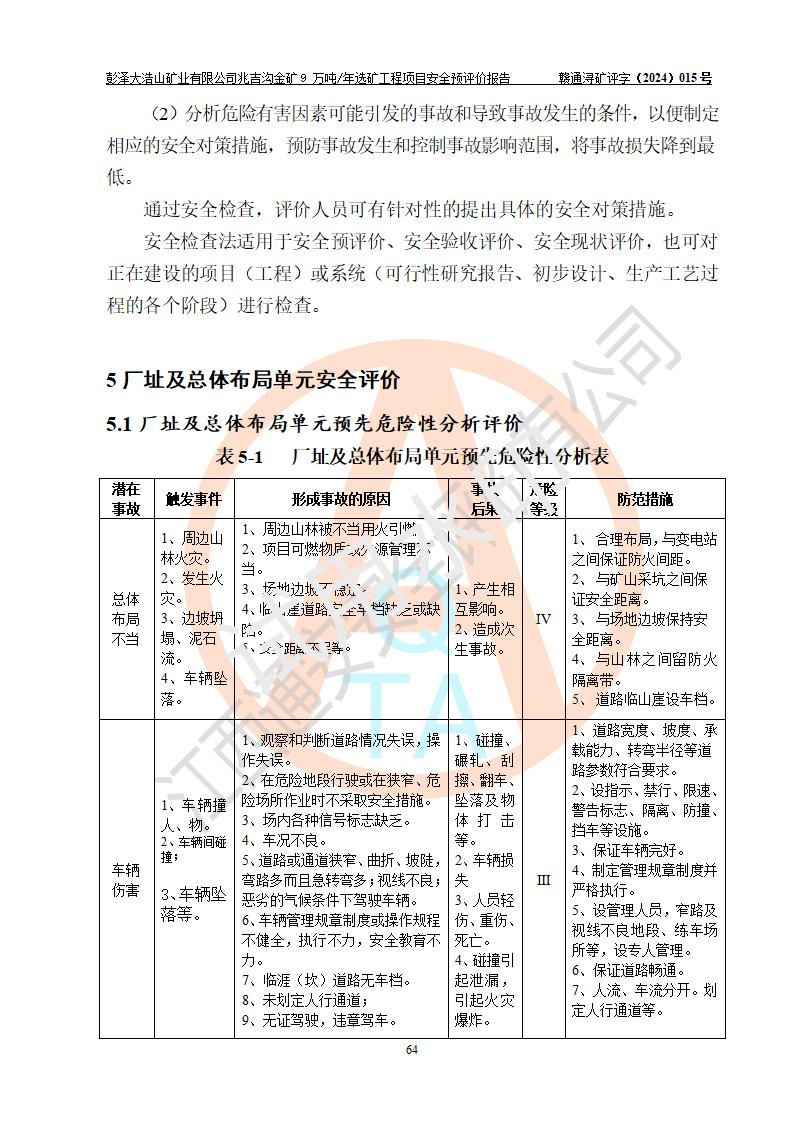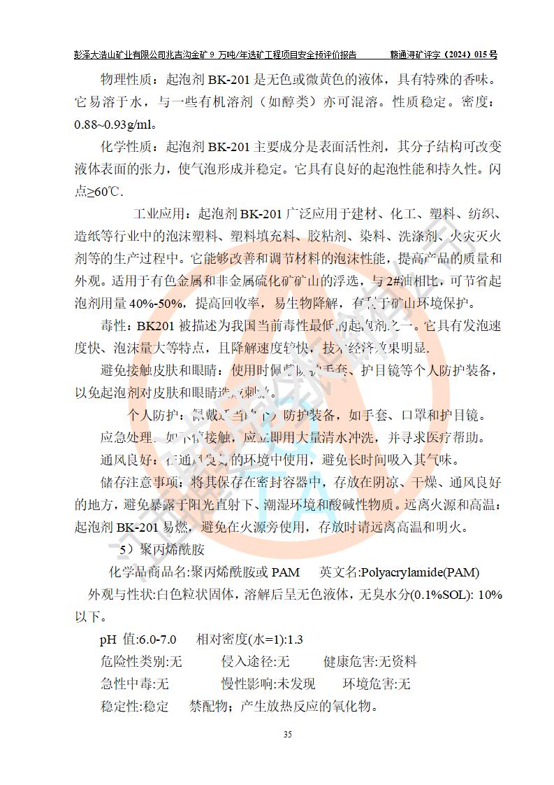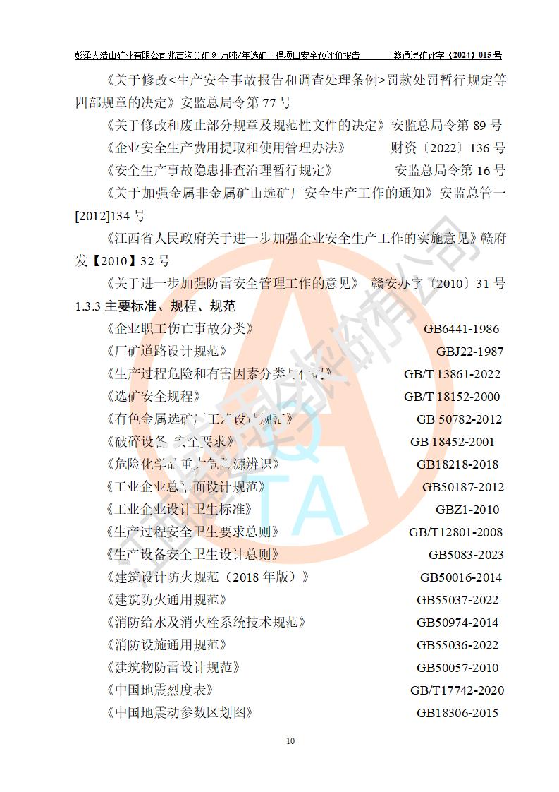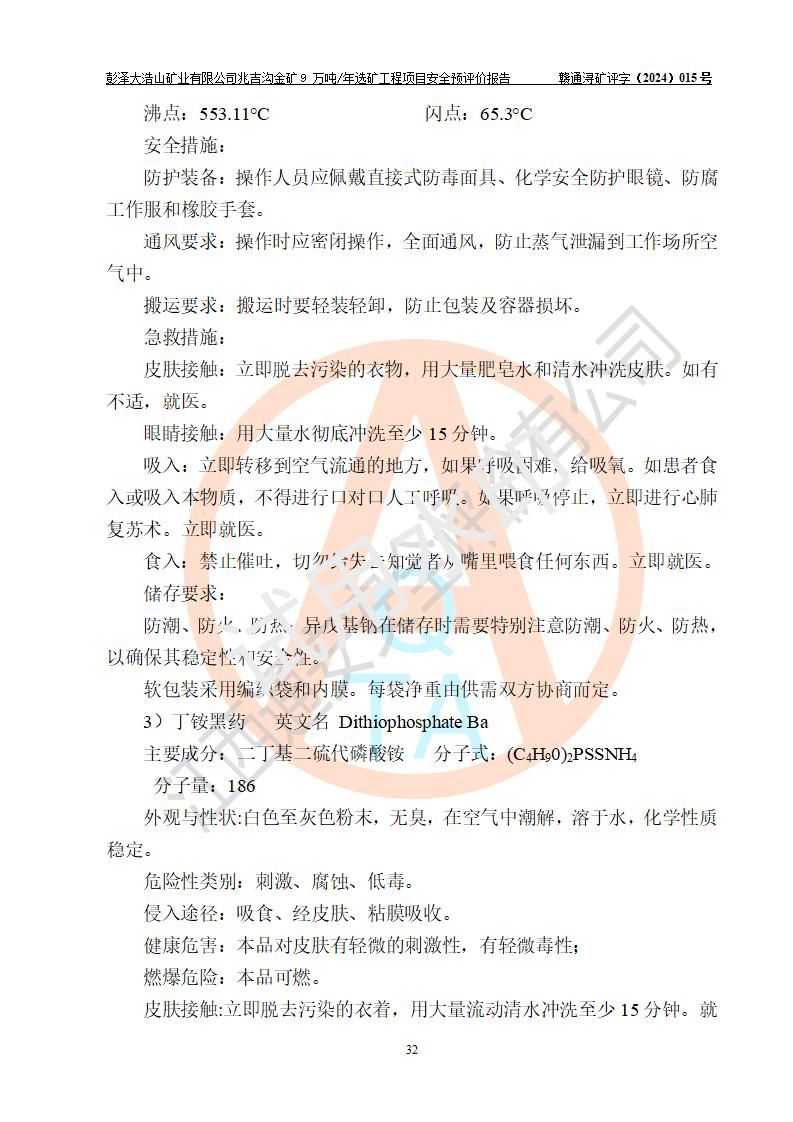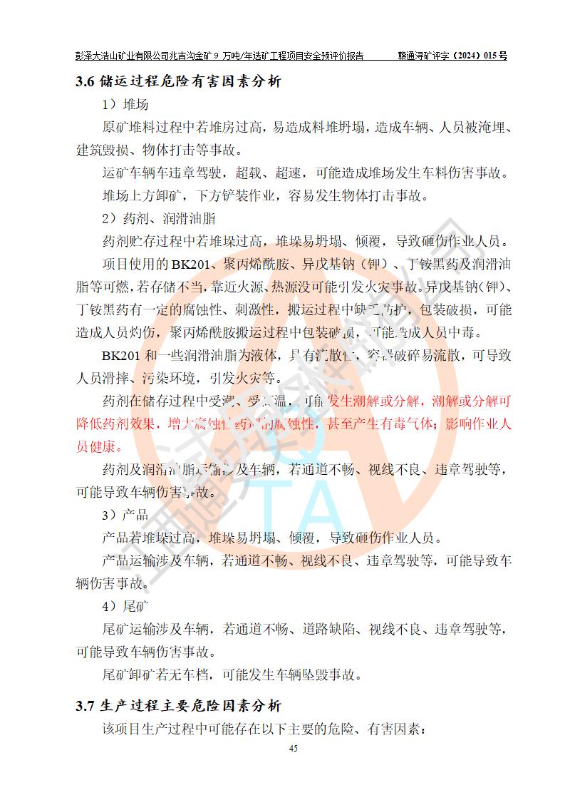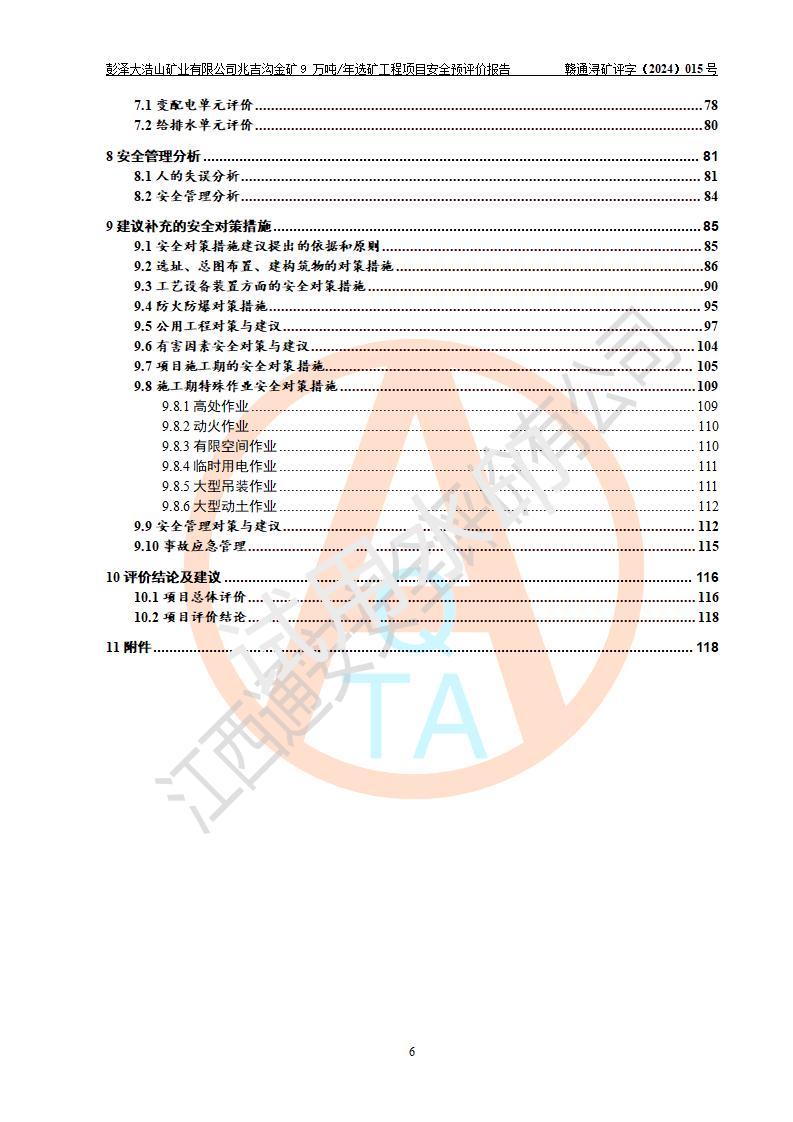 評(píng)價(jià)報(bào)告名稱 | 彭澤大浩山礦業(yè)有限公司兆吉溝金礦9 萬(wàn)噸/年選礦工程項(xiàng)目安全預(yù)評(píng)價(jià)報(bào)告 | |||||
