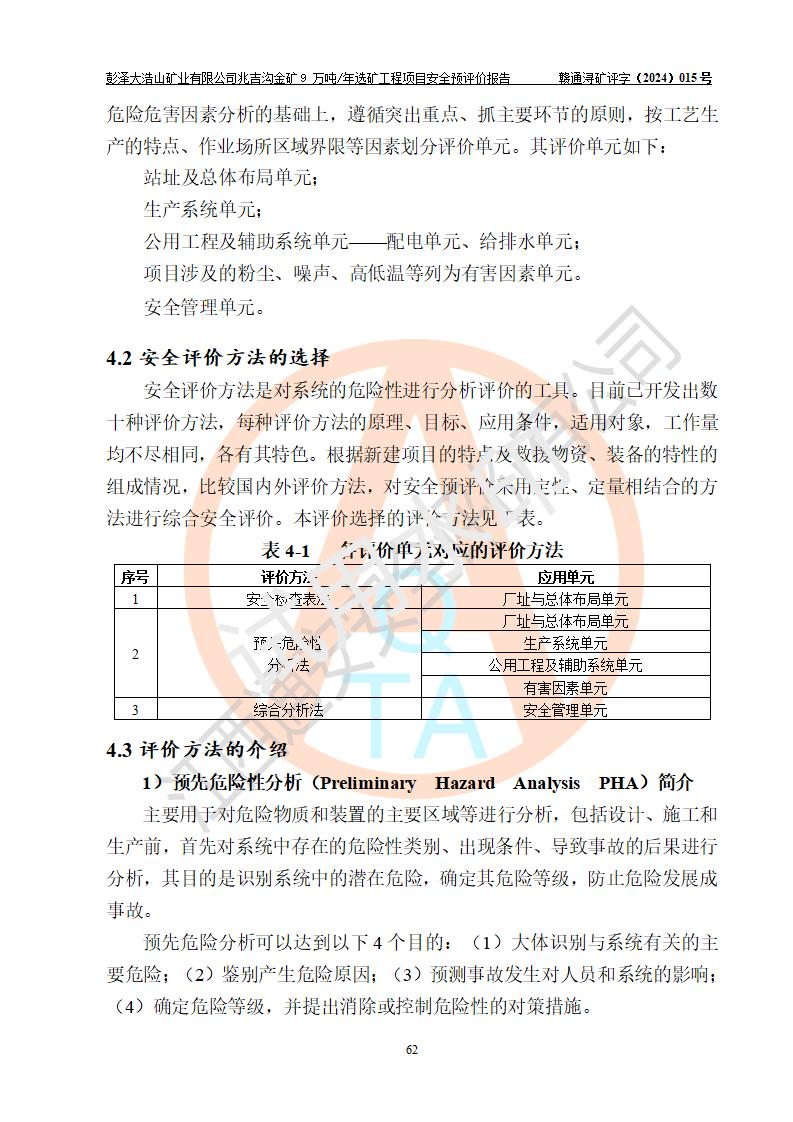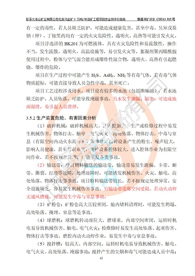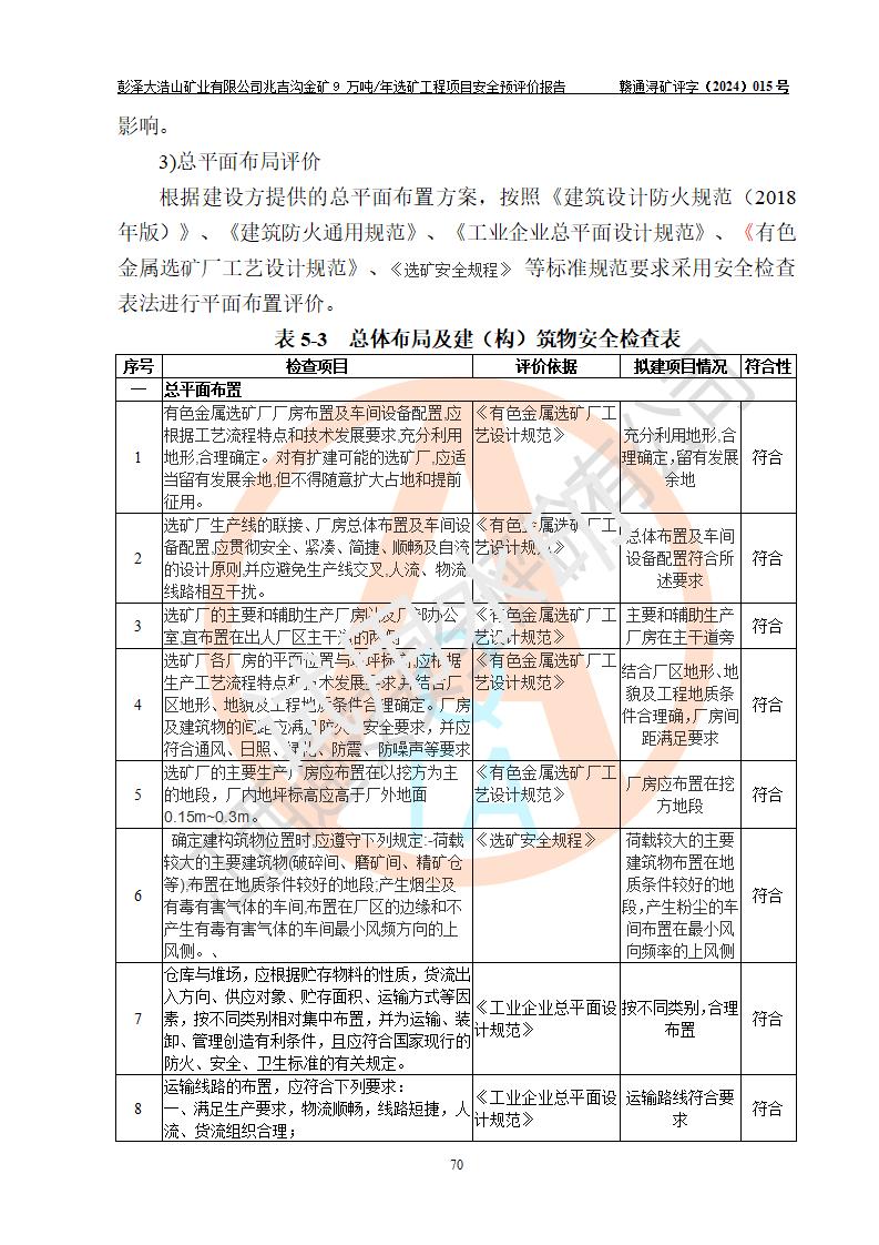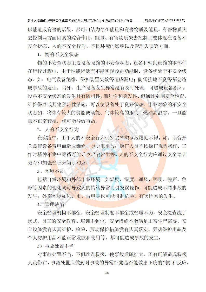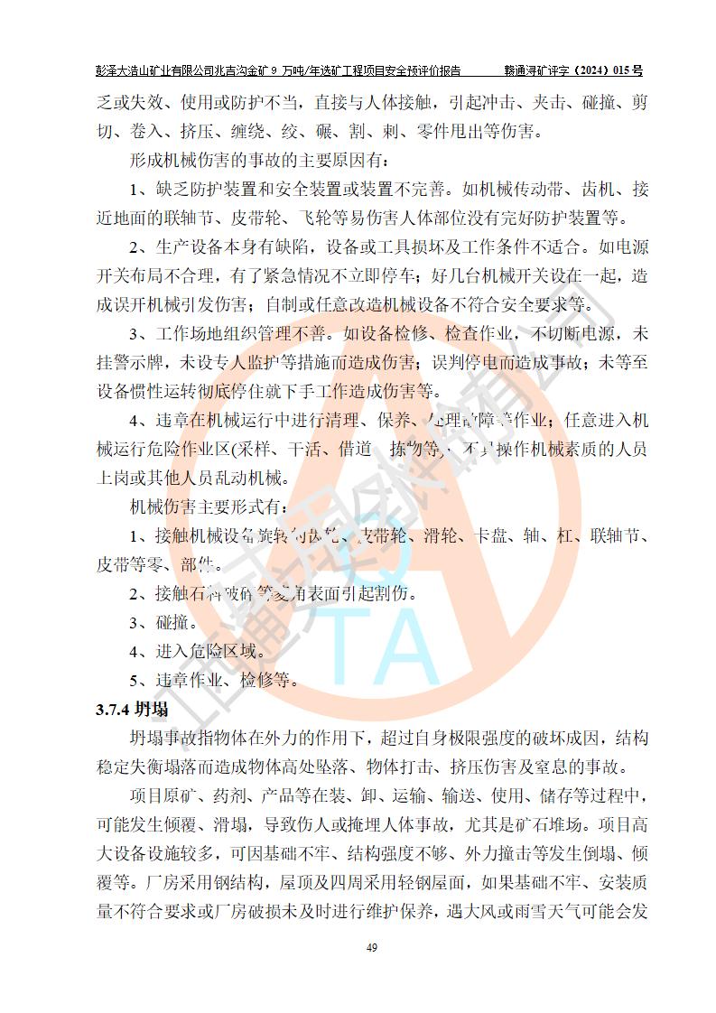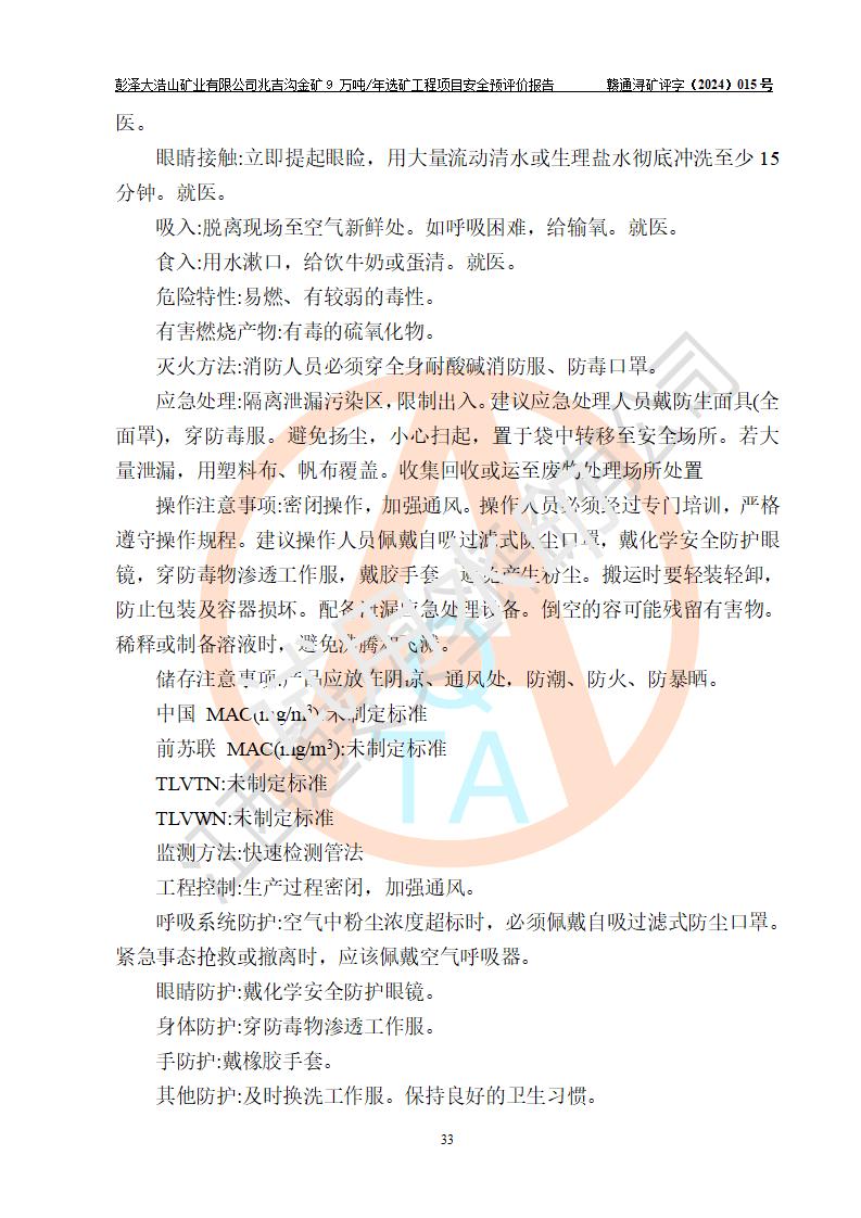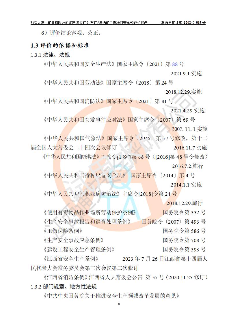 評(píng)價(jià)報(bào)告名稱 | 彭澤大浩山礦業(yè)有限公司兆吉溝金礦9 萬(wàn)噸/年選礦工程項(xiàng)目安全預(yù)評(píng)價(jià)報(bào)告 | |||||