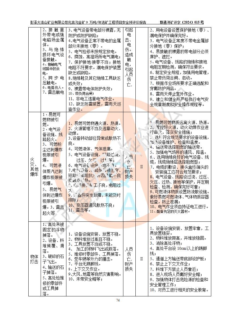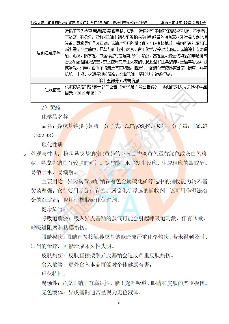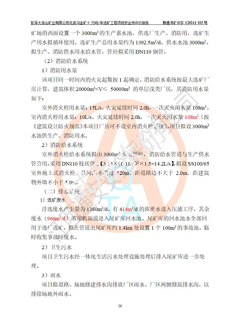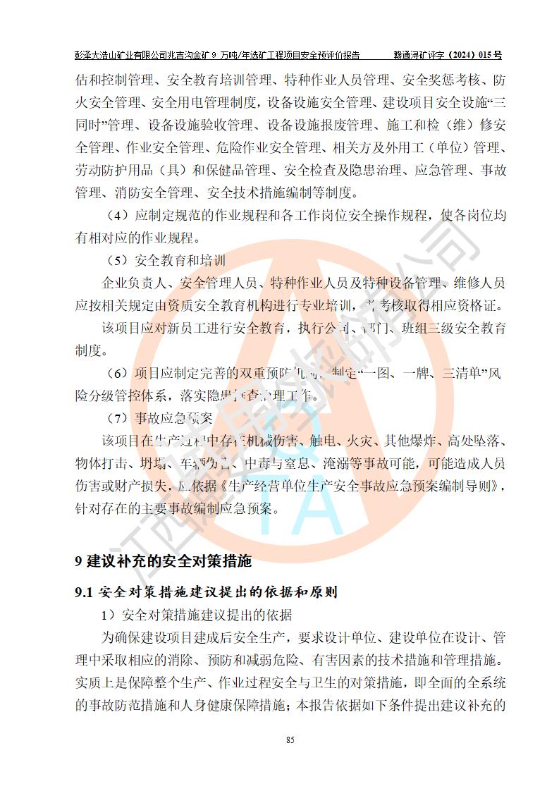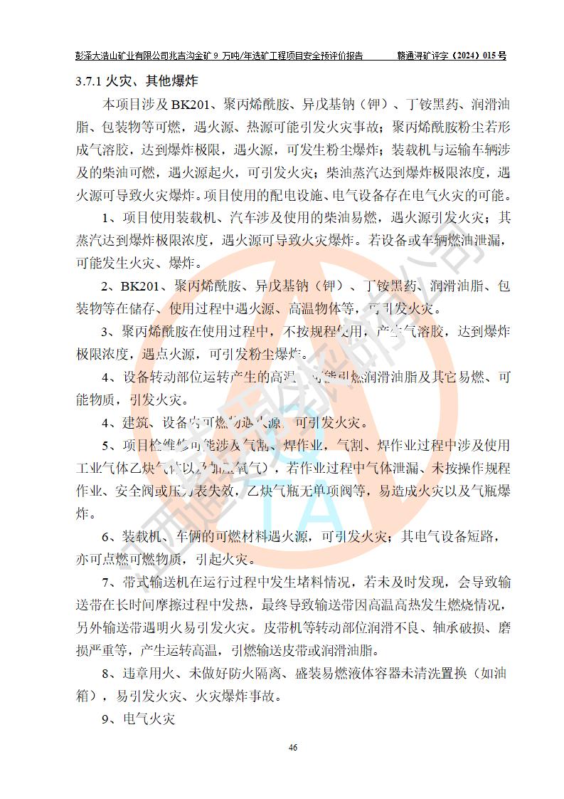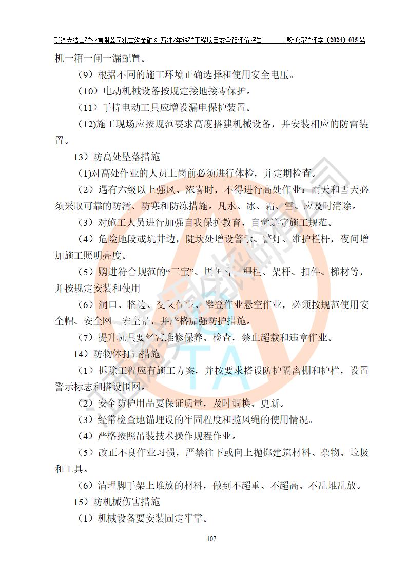 評(píng)價(jià)報(bào)告名稱 | 彭澤大浩山礦業(yè)有限公司兆吉溝金礦9 萬(wàn)噸/年選礦工程項(xiàng)目安全預(yù)評(píng)價(jià)報(bào)告 | |||||
