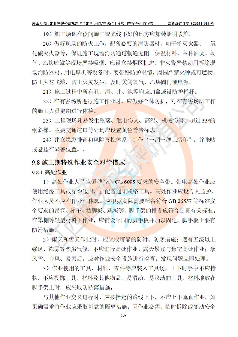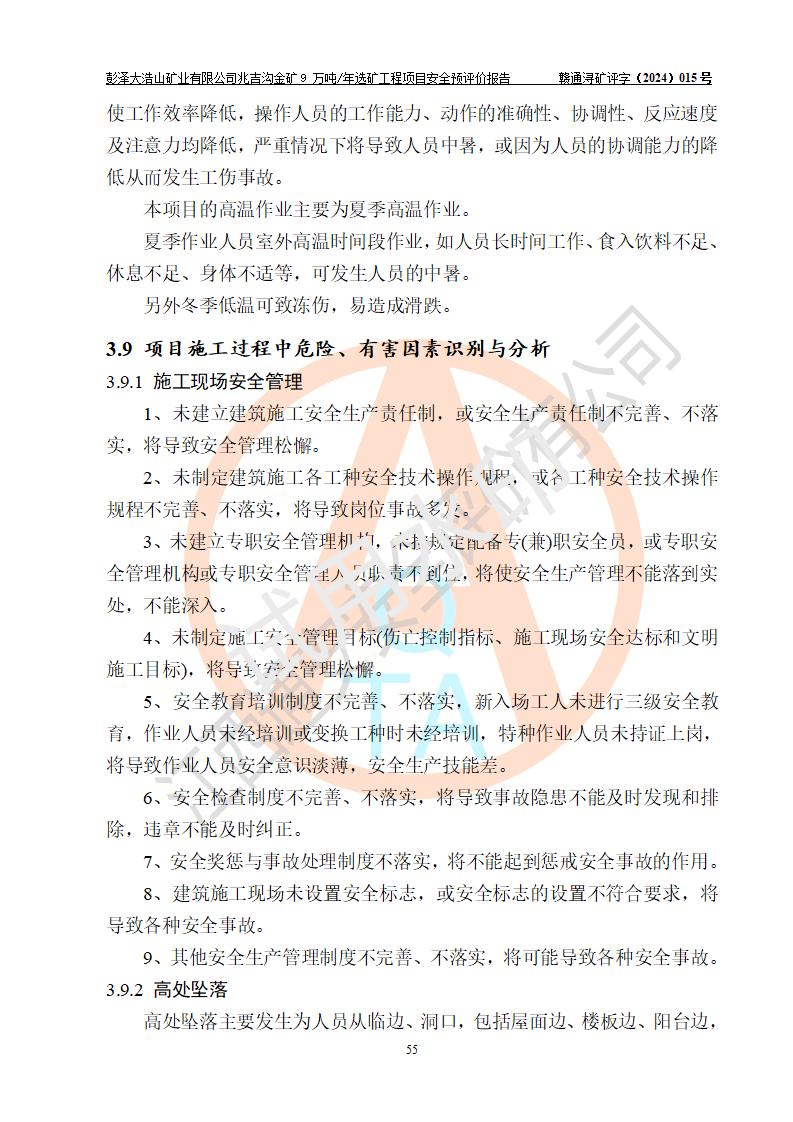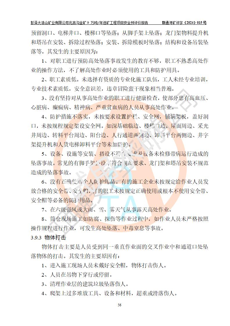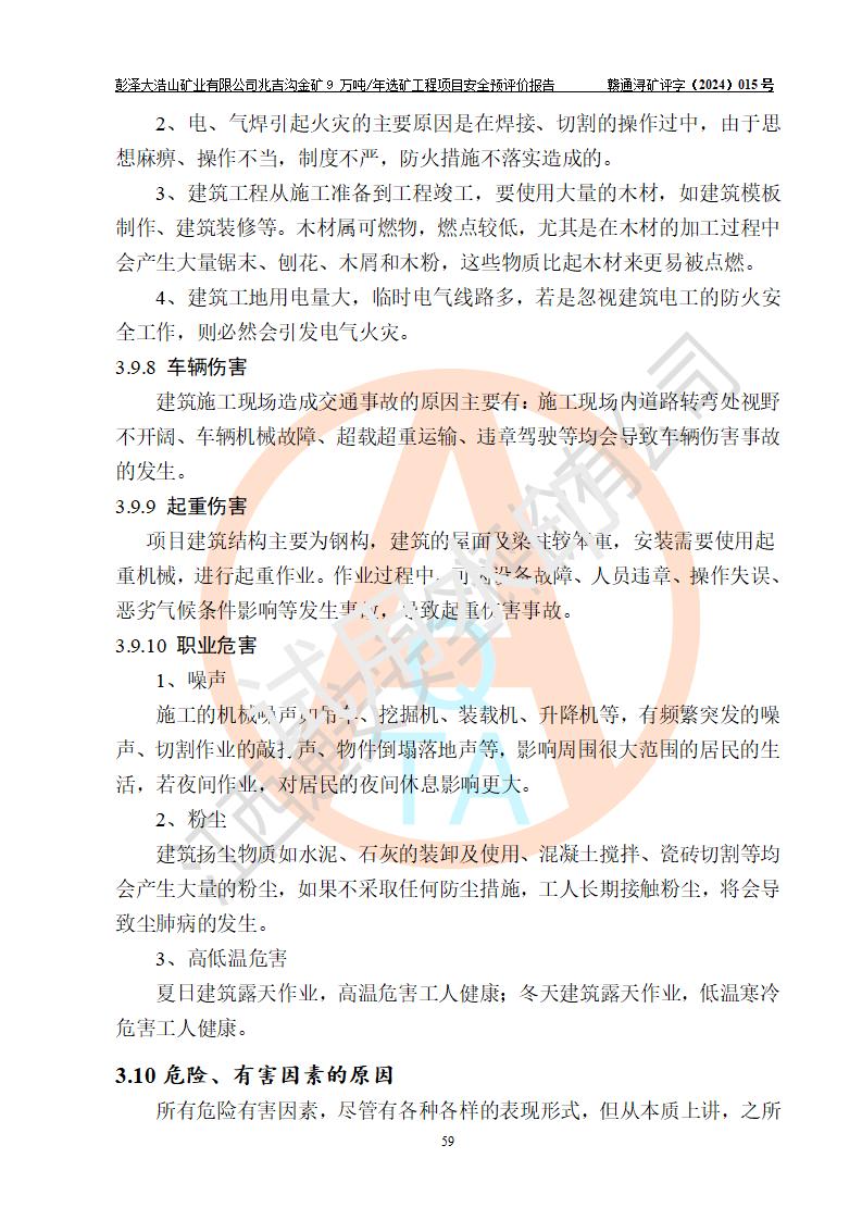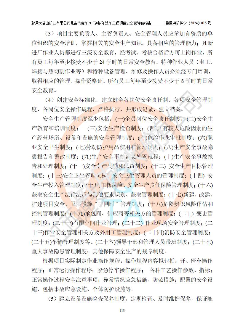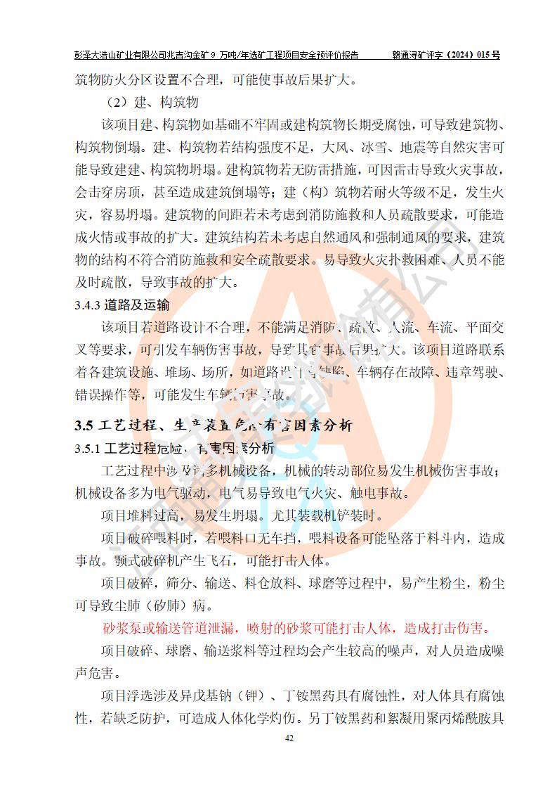 評(píng)價(jià)結(jié)論 | 總體結(jié)論:彭澤大浩山礦業(yè)有限公司兆吉溝金礦9 萬(wàn)噸/年選礦工程項(xiàng)目的廠址、總平面布置和擬設(shè)置的場(chǎng)所及設(shè)備設(shè)施的安全可靠性能達(dá)到**法規(guī)、標(biāo)準(zhǔn)規(guī)定要求;項(xiàng)目存在的危險(xiǎn)有害因素可控,在落實(shí)本評(píng)價(jià)報(bào)告提出的有關(guān)安全對(duì)策措施后,其危險(xiǎn)有害程度能達(dá)到可以接受的程度,項(xiàng)目建設(shè)能夠?qū)崿F(xiàn)安全運(yùn)行的目標(biāo)。 | |||||