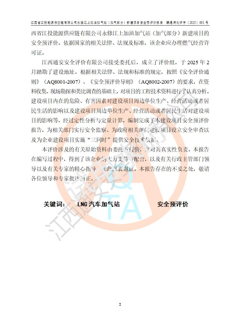 評(píng)價(jià)報(bào)告名稱 | 江西省江投能源供應(yīng)鏈有限公司永修江上加油加氣站(加氣部分)新建項(xiàng)目安全預(yù)評(píng)價(jià)報(bào)告 | ||||||