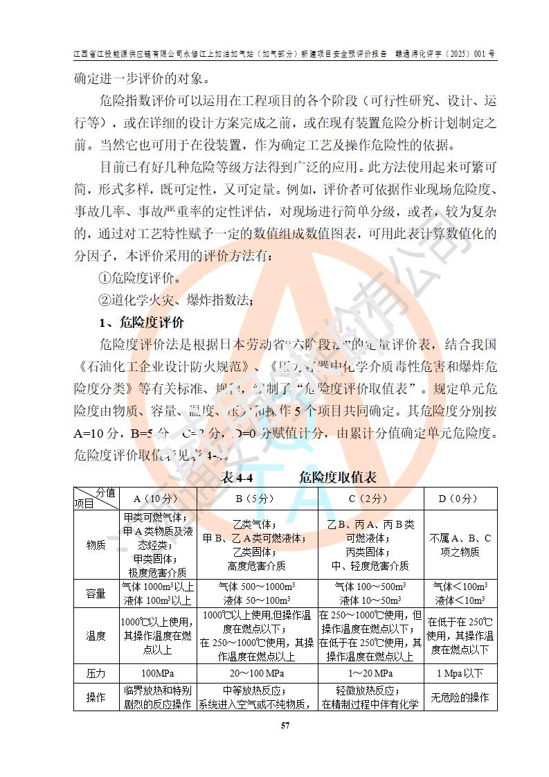 評(píng)價(jià)結(jié)論 | 綜上所述:江西省江投能源供應(yīng)鏈有限公司永修江上加油加氣站(加氣部分)的選址、自然條件適宜該項(xiàng)目工程的建設(shè);項(xiàng)目規(guī)劃設(shè)計(jì)中的總體布局方案可行,符合有關(guān)法規(guī)、標(biāo)準(zhǔn)要求;項(xiàng)目選擇的工藝過程及設(shè)備設(shè)施的安全可靠性能達(dá)到**法規(guī)、標(biāo)準(zhǔn)規(guī)定要求;項(xiàng)目存在的危險(xiǎn)有害因素可控,在落實(shí)項(xiàng)目建設(shè)方案及評(píng)價(jià)報(bào)告提出的有關(guān)安全對(duì)策措施后,其危險(xiǎn)有害程度能達(dá)到可以接受的程度,項(xiàng)目建設(shè)能夠?qū)崿F(xiàn)安全運(yùn)行的目標(biāo)。 | ||||||