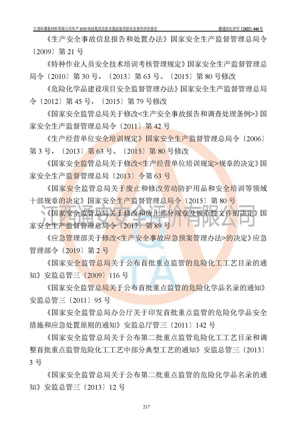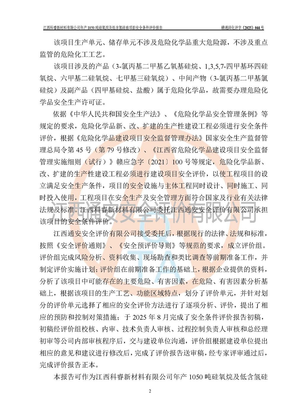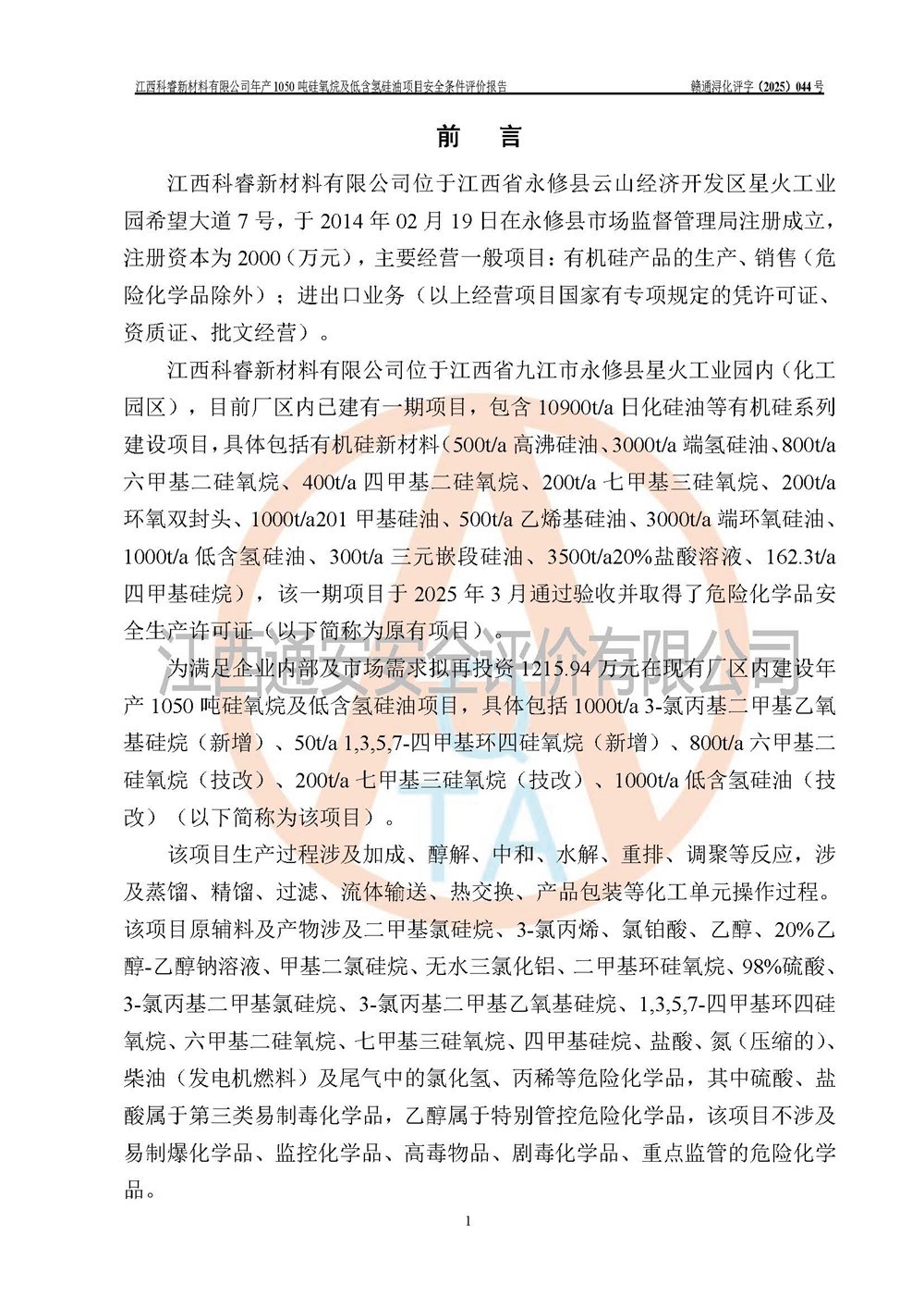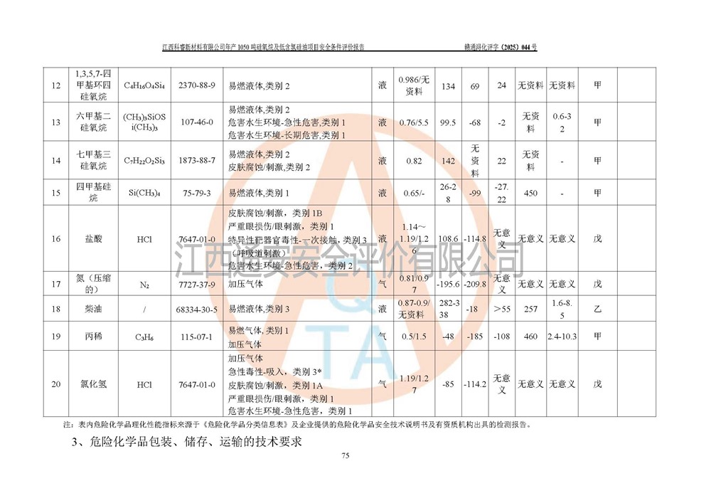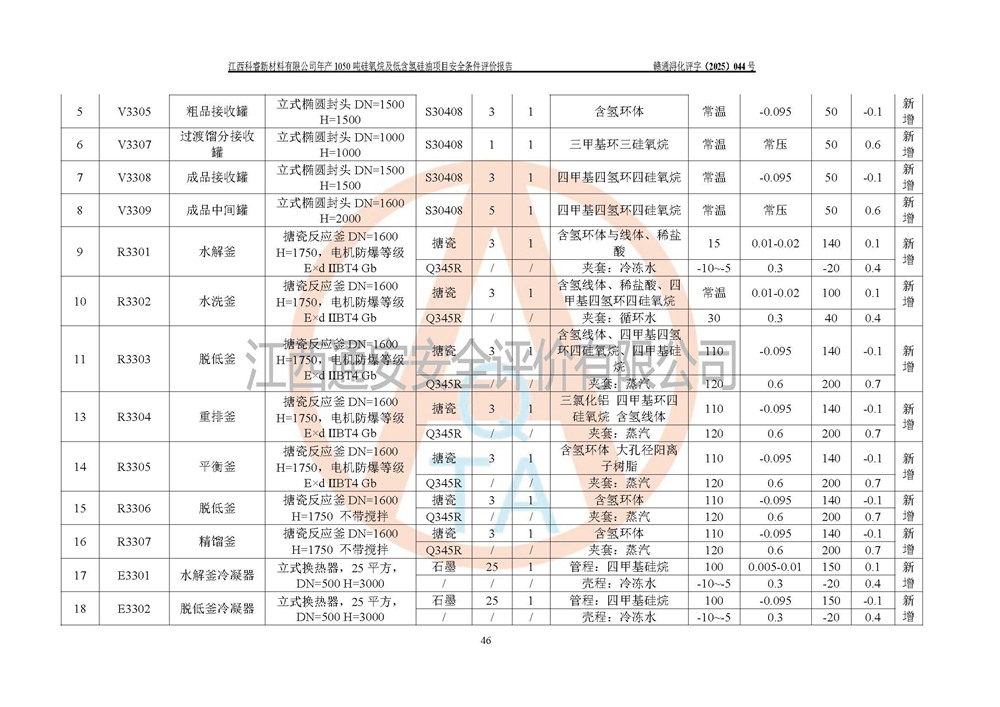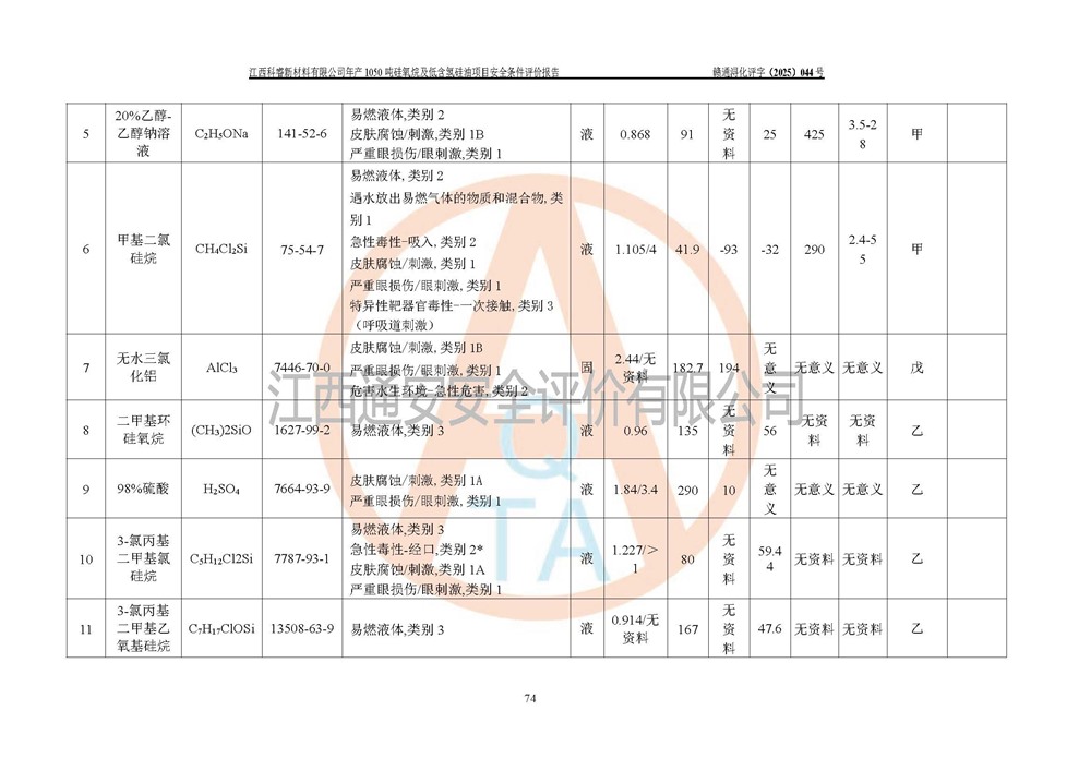 評(píng)價(jià)報(bào)告名稱 | 江西科睿新材料有限公司年產(chǎn)1050噸硅氧烷及低含氫硅油項(xiàng)目安全條件評(píng)價(jià) | |||||