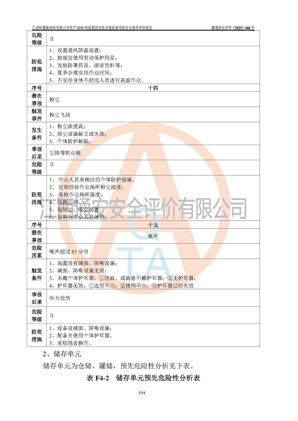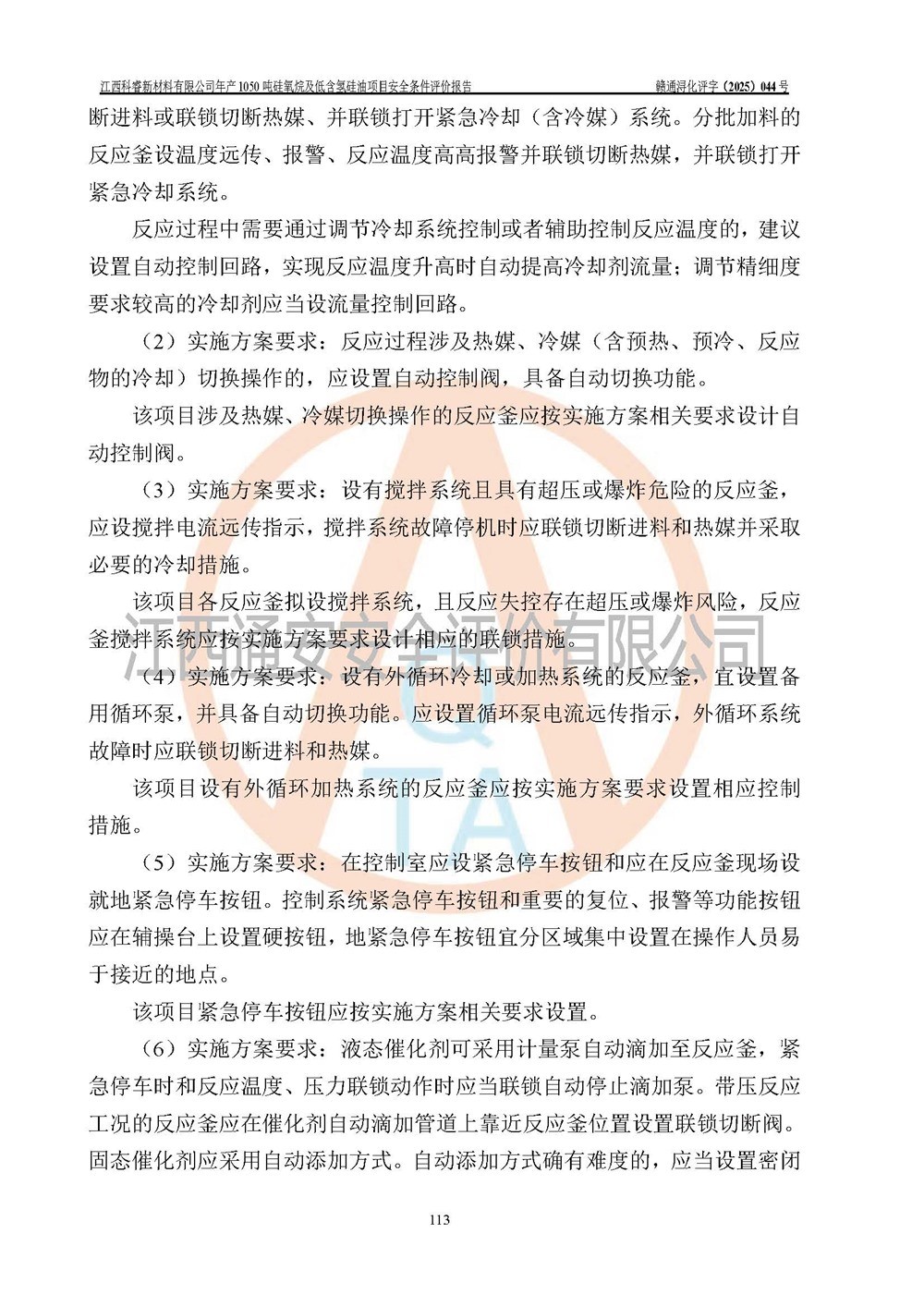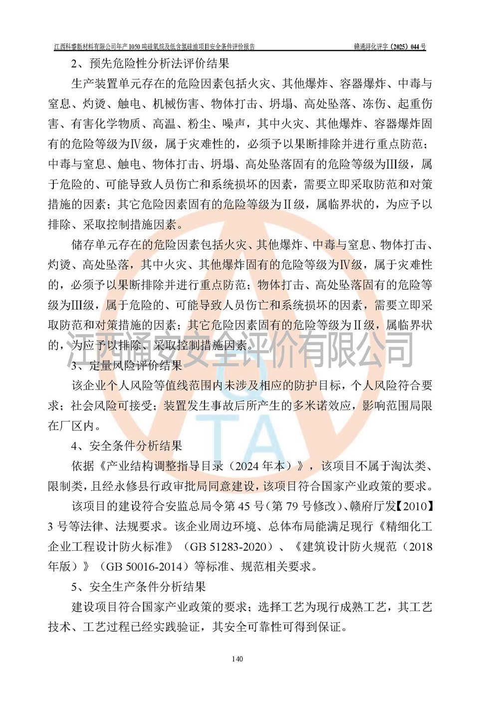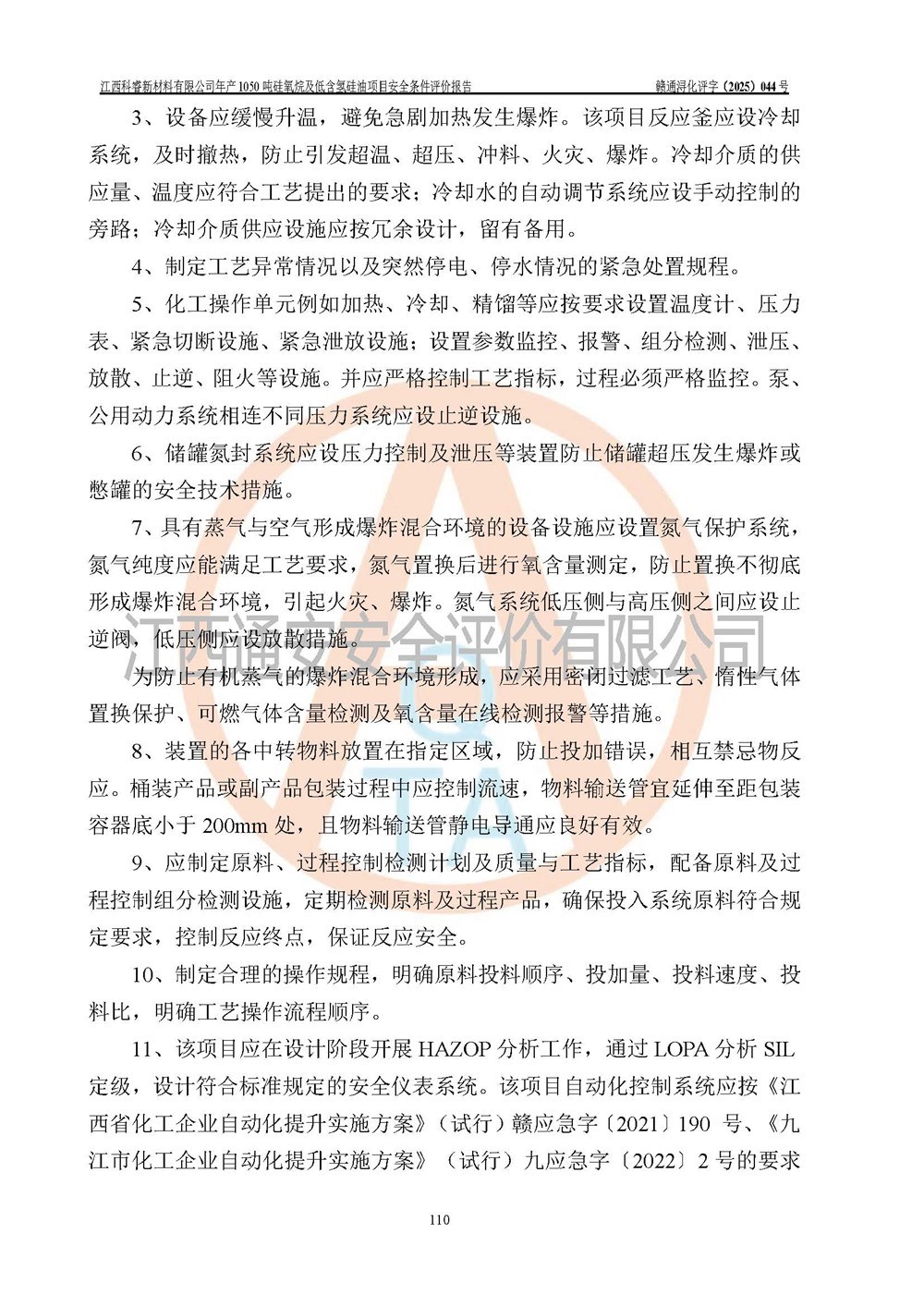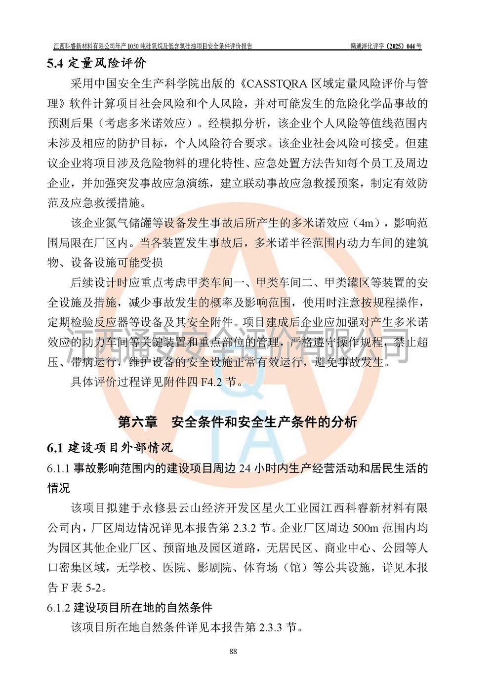 評(píng)價(jià)結(jié)論 | 江西科睿新材料有限公司年產(chǎn)1050噸硅氧烷及低含氫硅油項(xiàng)目的周邊環(huán)境、總體布局、自然環(huán)境能滿足建設(shè)安全條件;項(xiàng)目選擇的工藝過程及設(shè)備設(shè)施的安全可靠性能達(dá)到**法規(guī)、標(biāo)準(zhǔn)規(guī)定要求;項(xiàng)目存在的危險(xiǎn)有害因素可控,在落實(shí)本評(píng)價(jià)報(bào)告提出的有關(guān)安全對(duì)策措施后,其危險(xiǎn)有害程度能達(dá)到可以接受的程度,項(xiàng)目建設(shè)能夠?qū)崿F(xiàn)安全運(yùn)行的目標(biāo)。 | |||||
