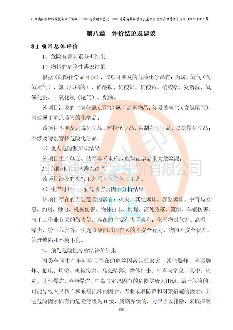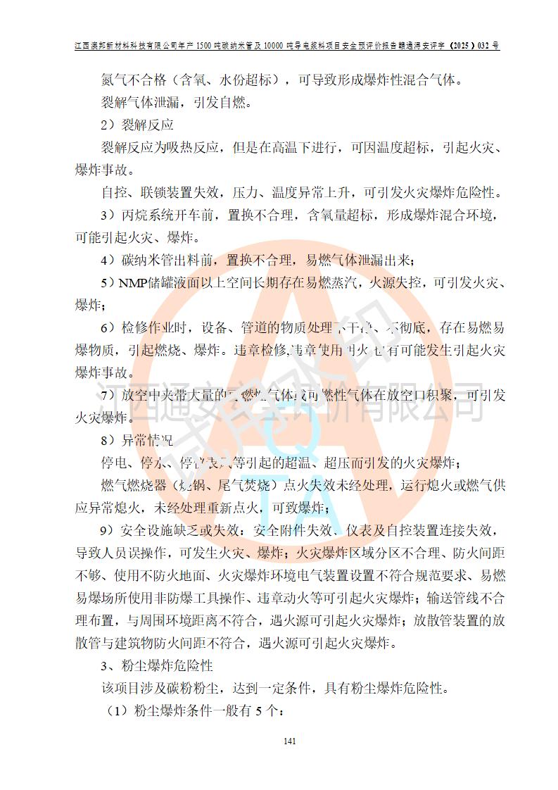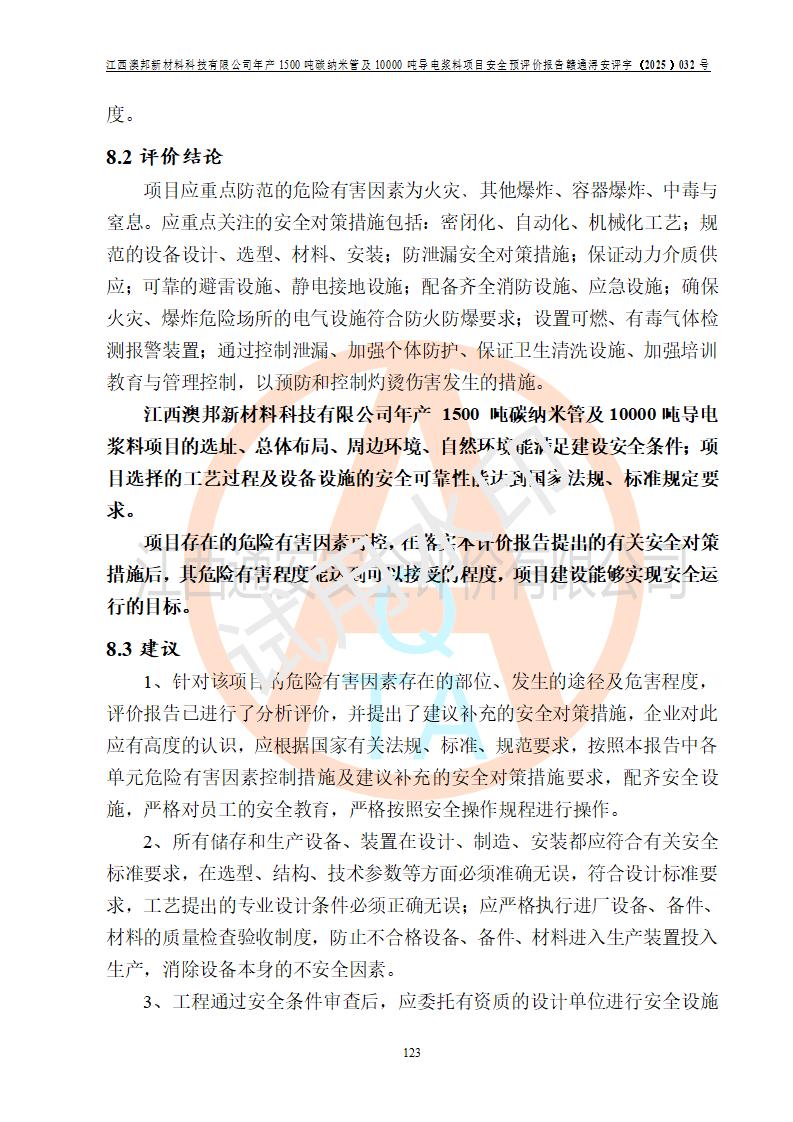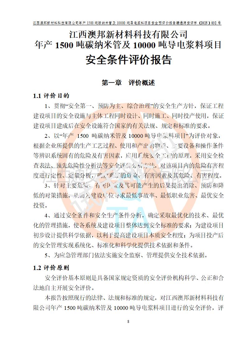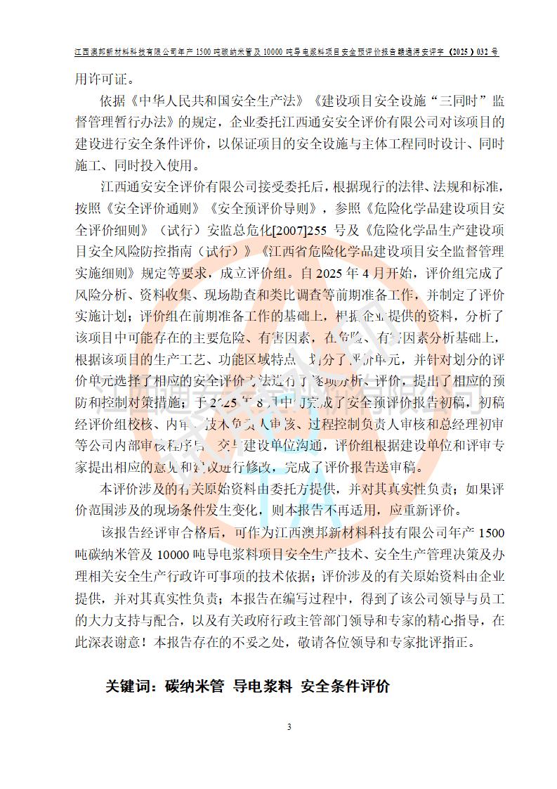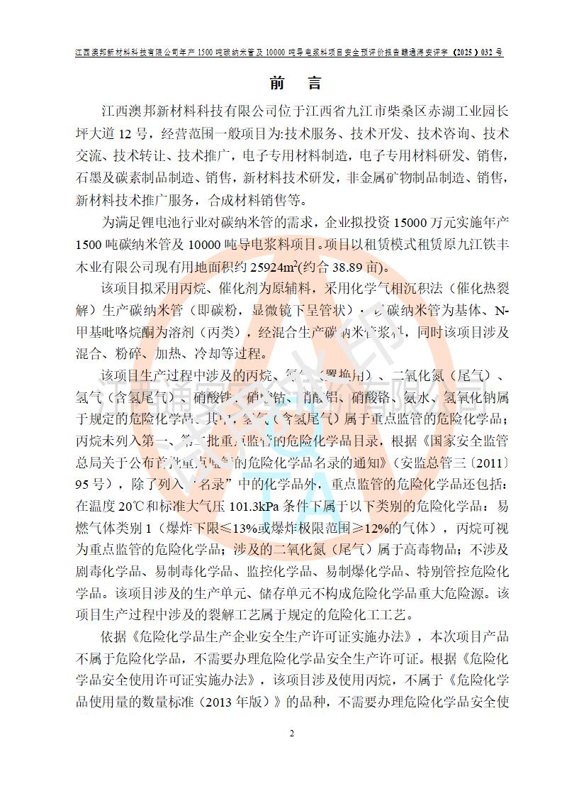 評(píng)價(jià)報(bào)告名稱 | 江西澳邦新材料科技有限公司年產(chǎn)1500噸碳納米管及10000噸導(dǎo)電漿料項(xiàng)目安全預(yù)評(píng)價(jià)報(bào)告 | |||||