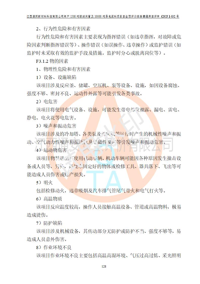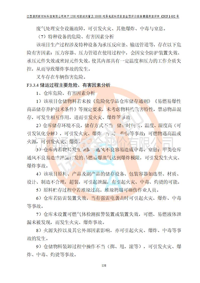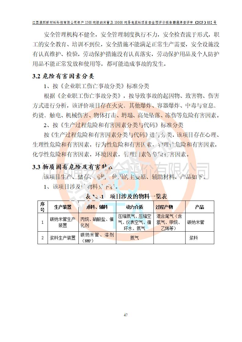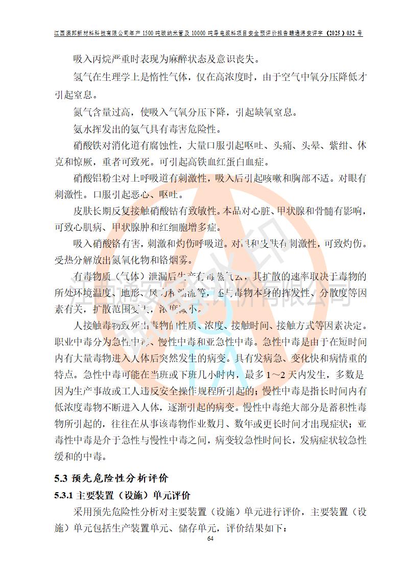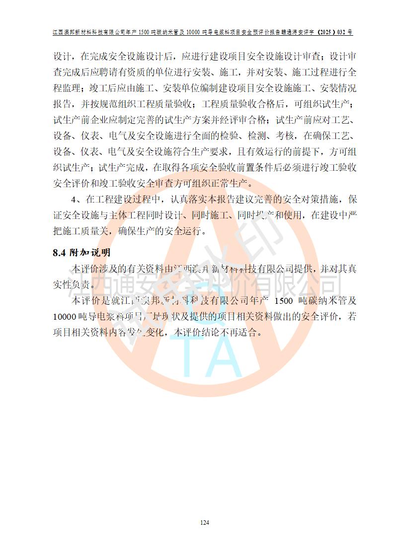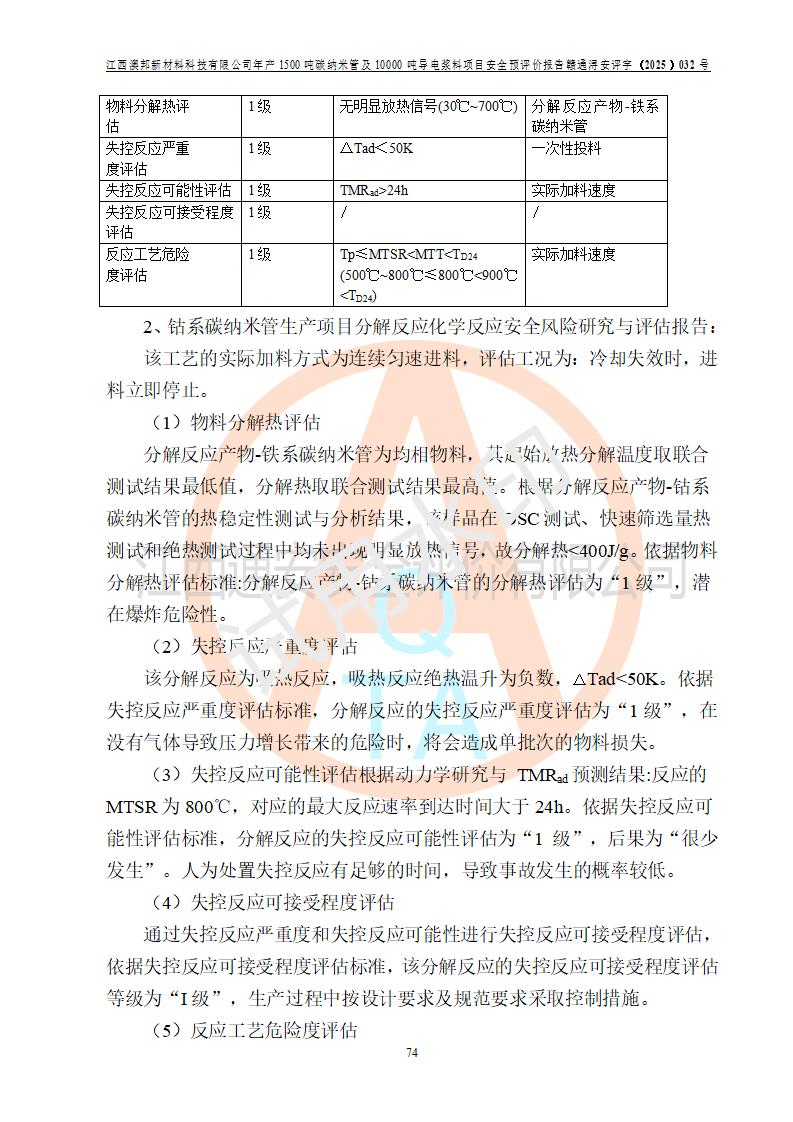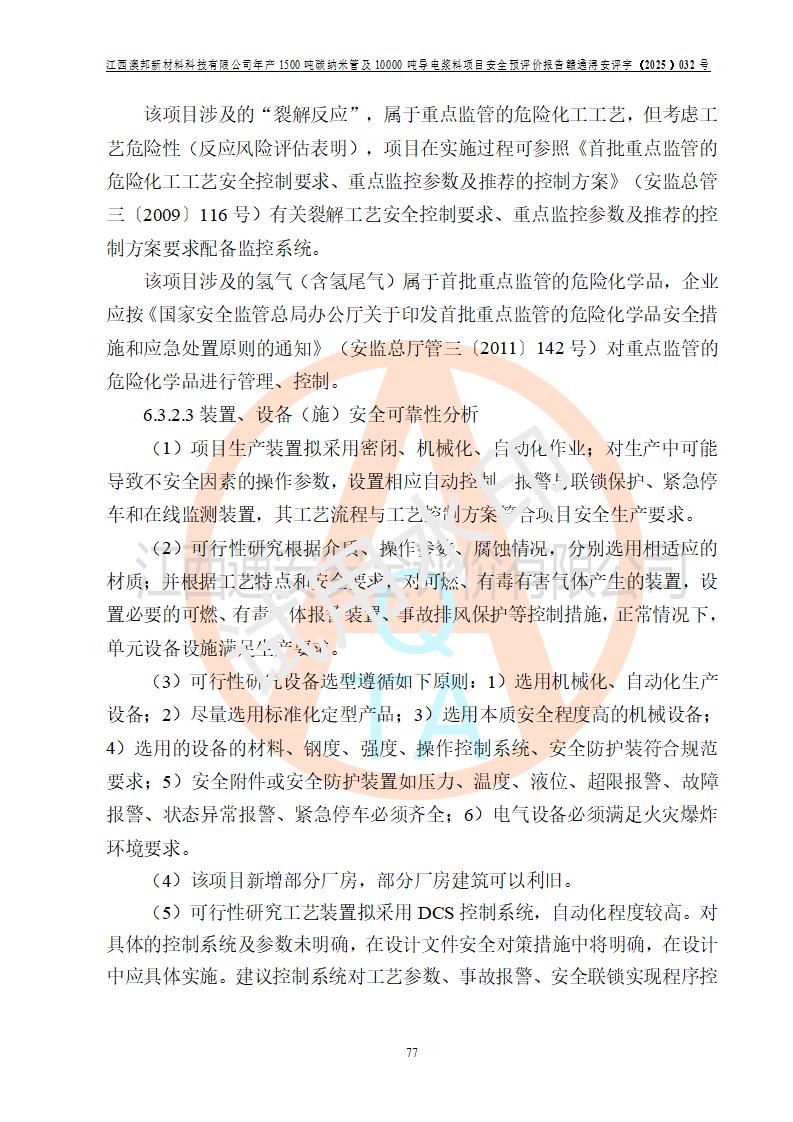 評(píng)價(jià)報(bào)告名稱 | 江西澳邦新材料科技有限公司年產(chǎn)1500噸碳納米管及10000噸導(dǎo)電漿料項(xiàng)目安全預(yù)評(píng)價(jià)報(bào)告 | |||||