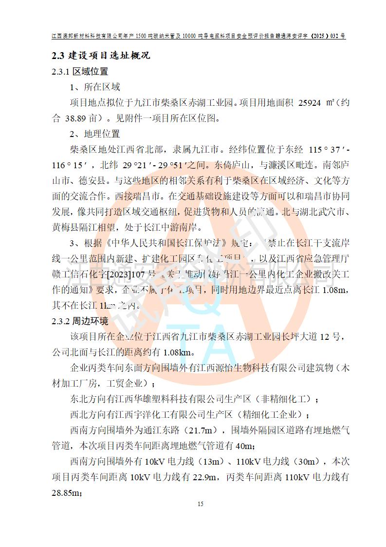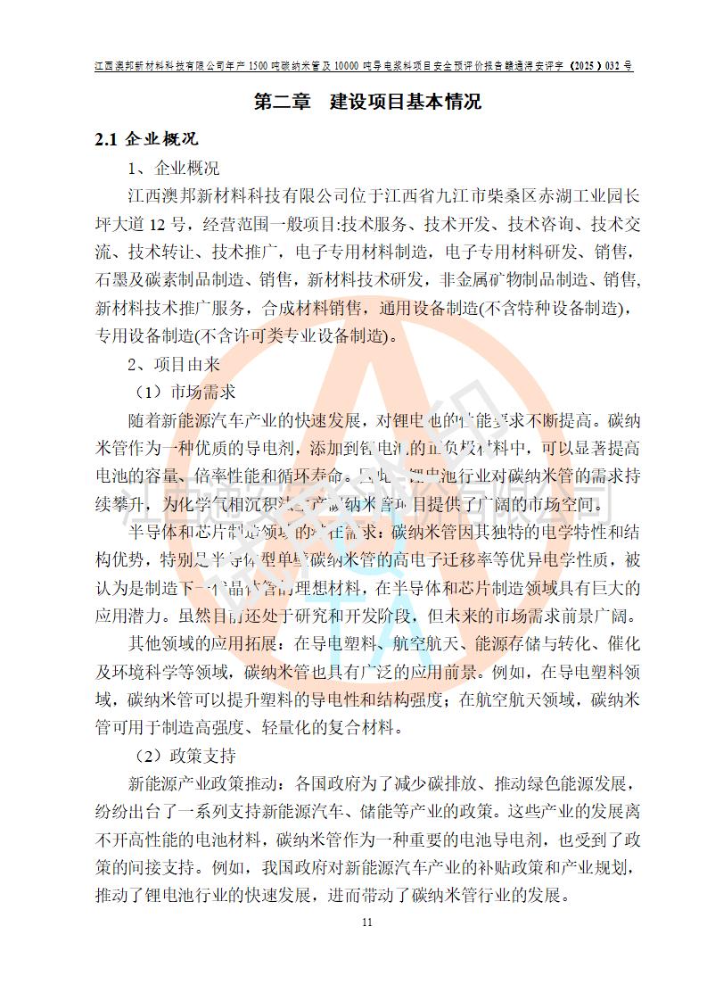 項(xiàng)目簡(jiǎn)介 | 項(xiàng)目名稱:年產(chǎn)1500噸碳納米管及10000噸導(dǎo)電漿料項(xiàng)目 建設(shè)單位:江西澳邦新材料科技有限公司 建設(shè)地點(diǎn):江西省九江市柴桑區(qū)赤湖工業(yè)園長(zhǎng)坪大道12號(hào) 建設(shè)性質(zhì):新建 企業(yè)性質(zhì): 有限責(zé)任公司 占地面積:項(xiàng)目以租賃模式租賃九江鐵豐木業(yè)有限公司現(xiàn)有用地面積約25924m2(約合38.89畝),用地性質(zhì)為工業(yè)用地。 項(xiàng)目總投資:15000萬(wàn)元 | |||||