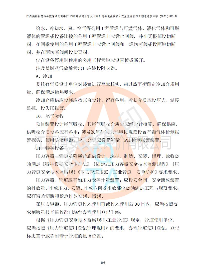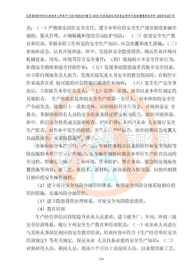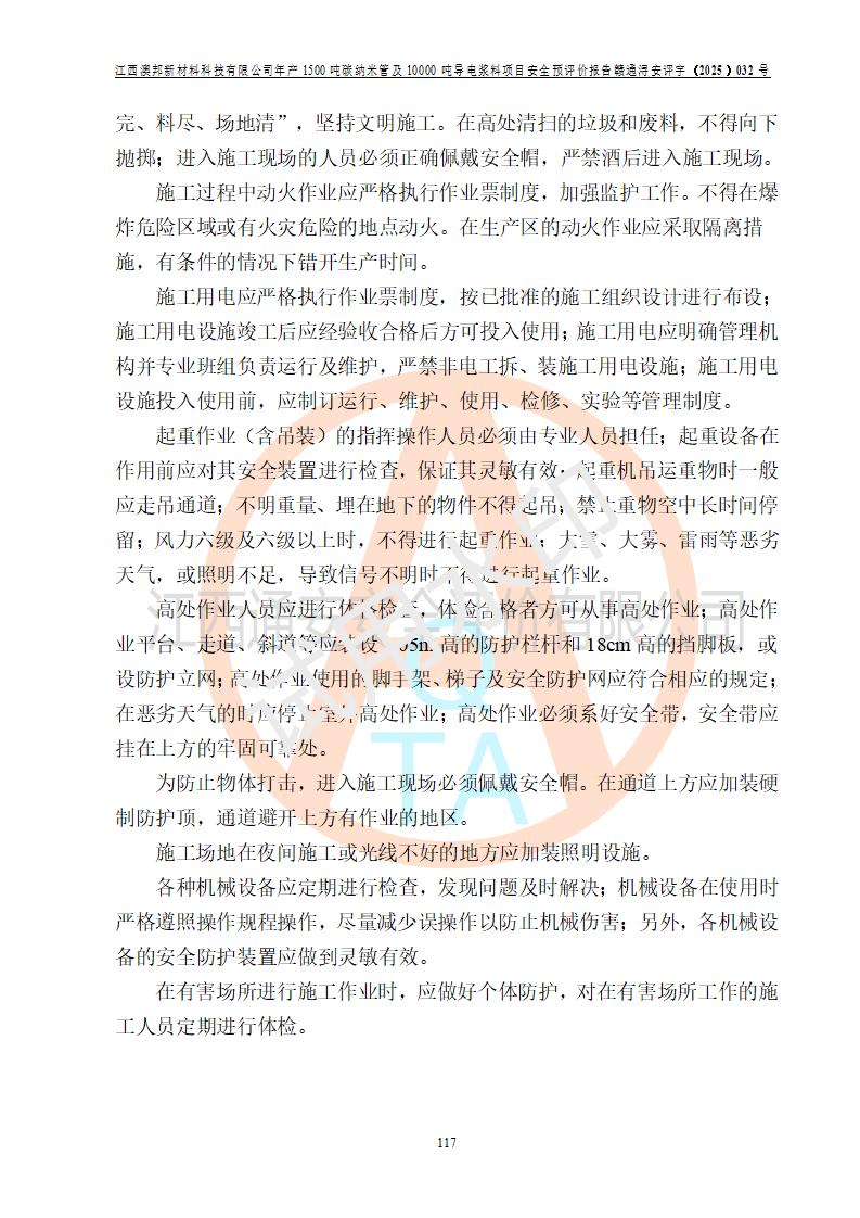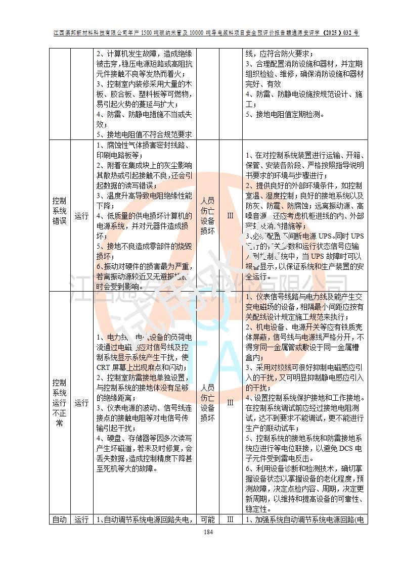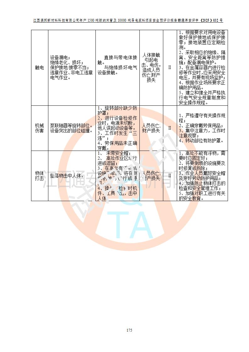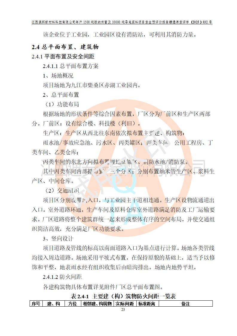 評(píng)價(jià)結(jié)論 | 江西澳邦新材料科技有限公司年產(chǎn) 1500 噸碳納米管及10000噸導(dǎo)電漿料項(xiàng)目的選址、總體布局、周邊環(huán)境、自然環(huán)境能滿足建設(shè)安全條件;項(xiàng)目選擇的工藝過程及設(shè)備設(shè)施的安全可靠性能達(dá)到**法規(guī)、標(biāo)準(zhǔn)規(guī)定要求。 項(xiàng)目存在的危險(xiǎn)有害因素可控,在落實(shí)本評(píng)價(jià)報(bào)告提出的有關(guān)安全對(duì)策措施后,其危險(xiǎn)有害程度能達(dá)到可以接受的程度,項(xiàng)目建設(shè)能夠?qū)崿F(xiàn)安全運(yùn)行的目標(biāo)。 | |||||