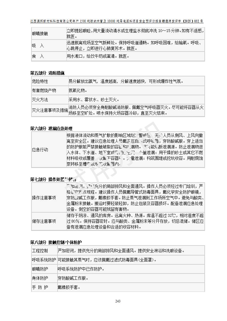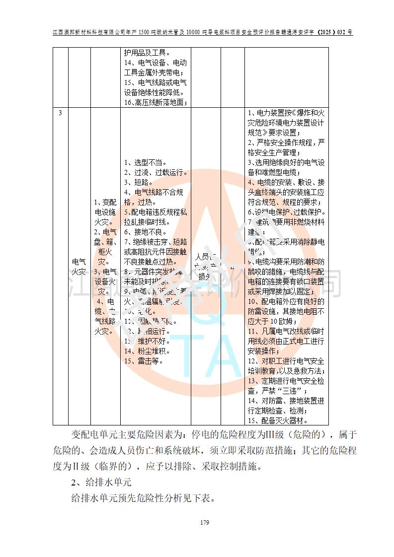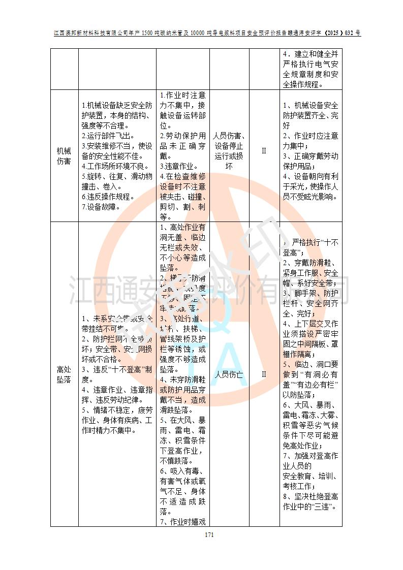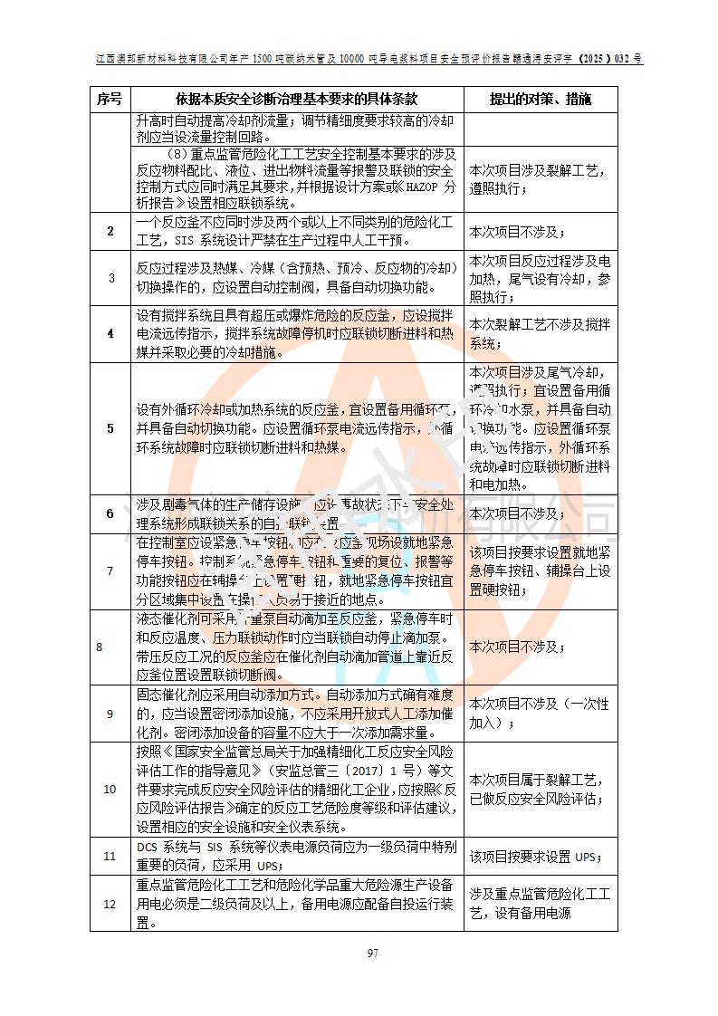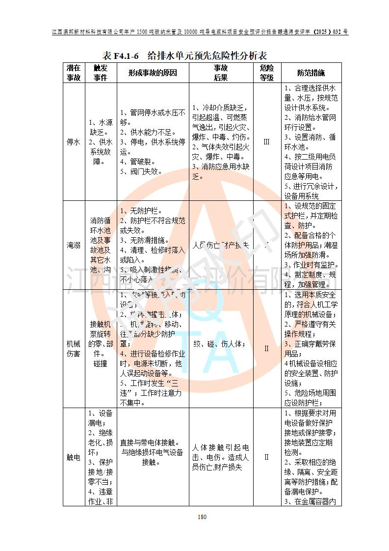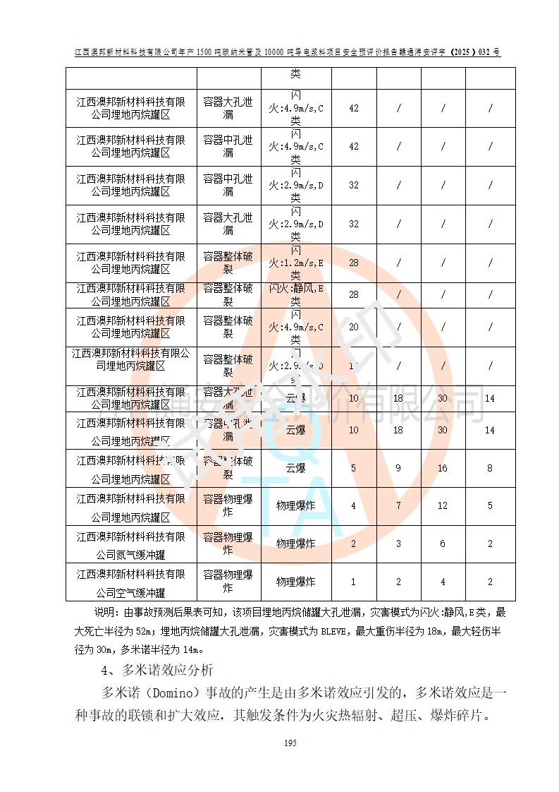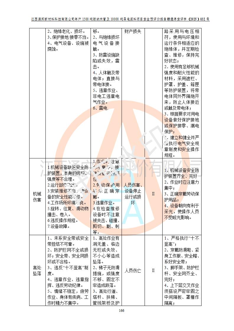 評(píng)價(jià)結(jié)論 | 江西澳邦新材料科技有限公司年產(chǎn) 1500 噸碳納米管及10000噸導(dǎo)電漿料項(xiàng)目的選址、總體布局、周邊環(huán)境、自然環(huán)境能滿足建設(shè)安全條件;項(xiàng)目選擇的工藝過程及設(shè)備設(shè)施的安全可靠性能達(dá)到**法規(guī)、標(biāo)準(zhǔn)規(guī)定要求。 項(xiàng)目存在的危險(xiǎn)有害因素可控,在落實(shí)本評(píng)價(jià)報(bào)告提出的有關(guān)安全對(duì)策措施后,其危險(xiǎn)有害程度能達(dá)到可以接受的程度,項(xiàng)目建設(shè)能夠?qū)崿F(xiàn)安全運(yùn)行的目標(biāo)。 | |||||