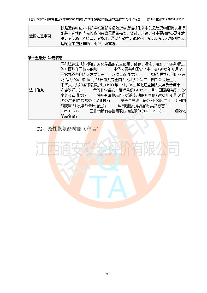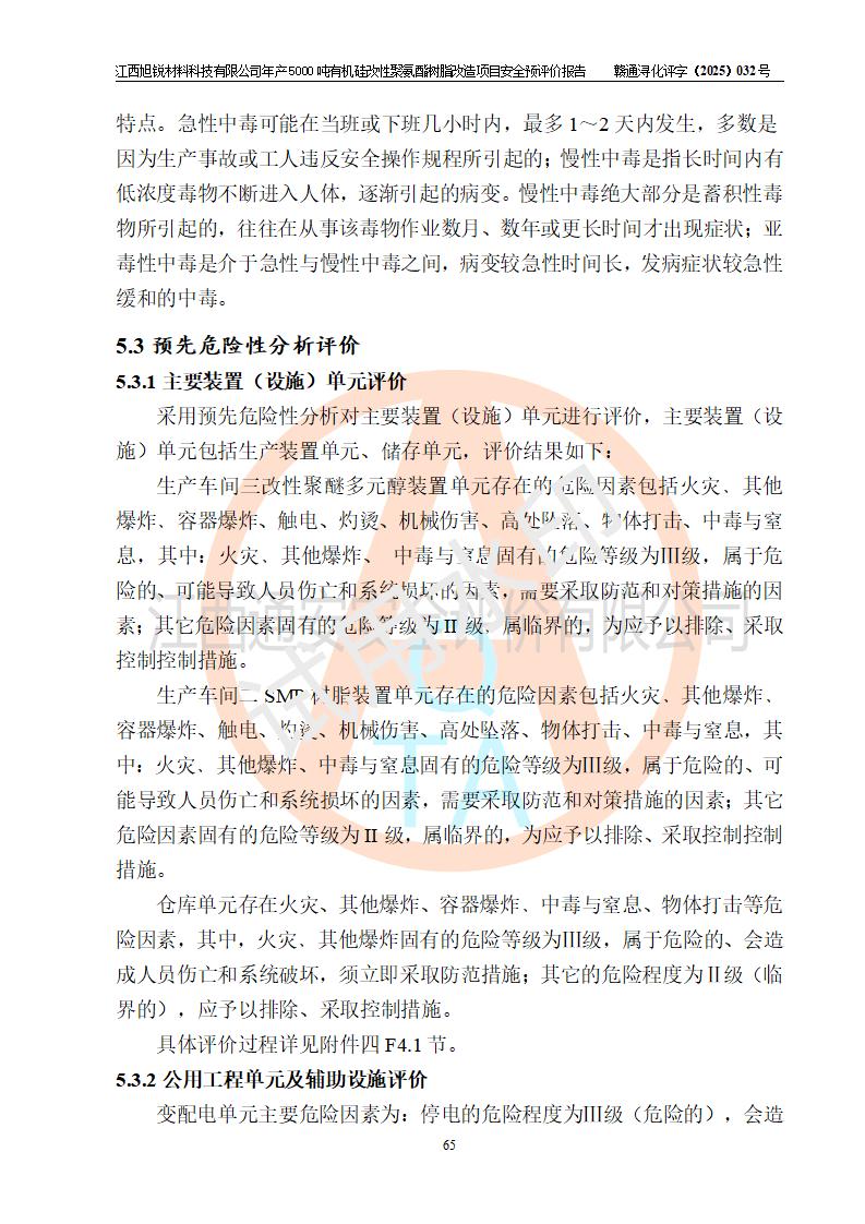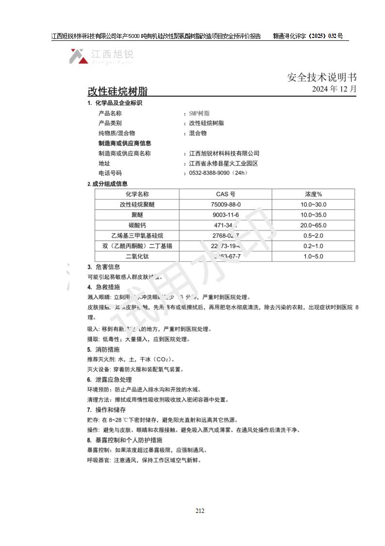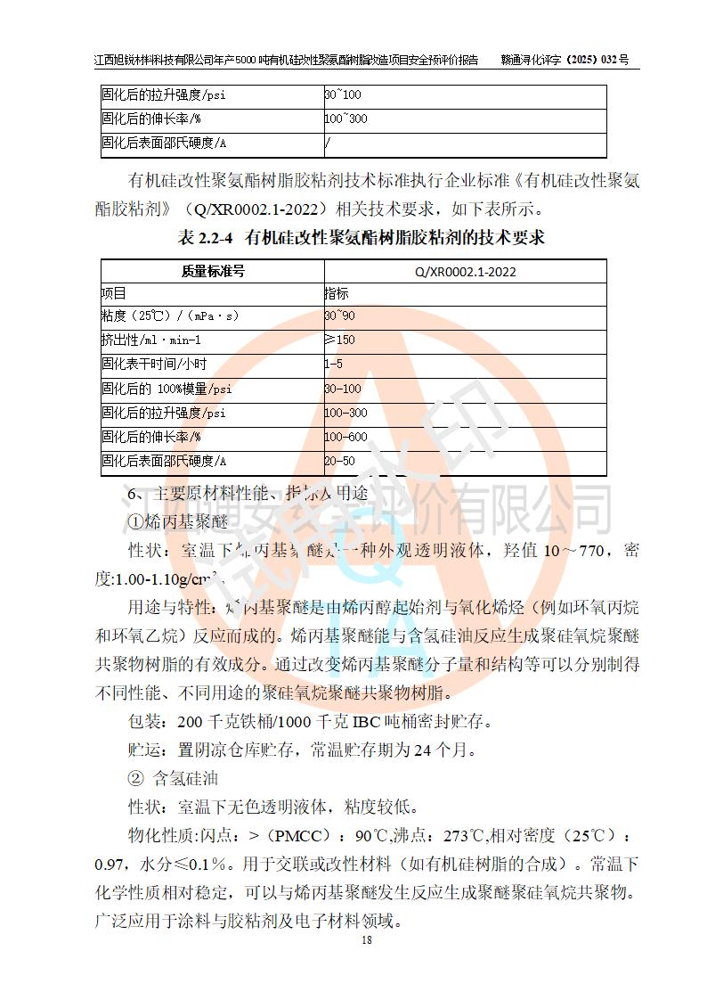評價(jià)報(bào)告名稱 | 江西旭銳材料科技有限公司年產(chǎn)5000噸有機(jī)硅改性聚氨酯樹脂改造項(xiàng)目安全預(yù)評價(jià)報(bào)告 | |||||
