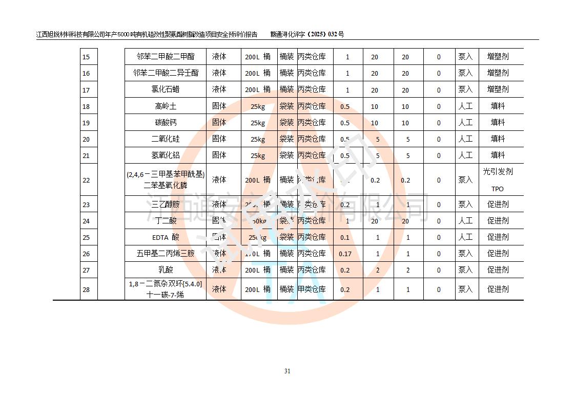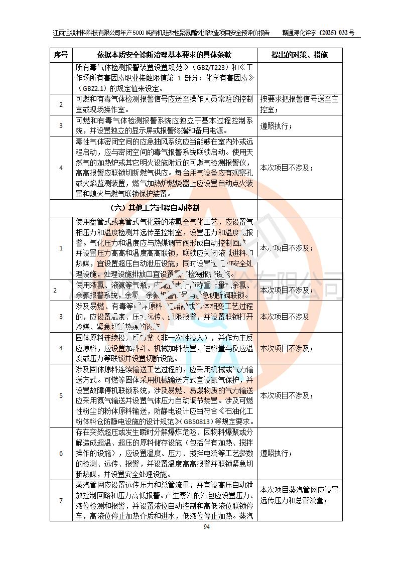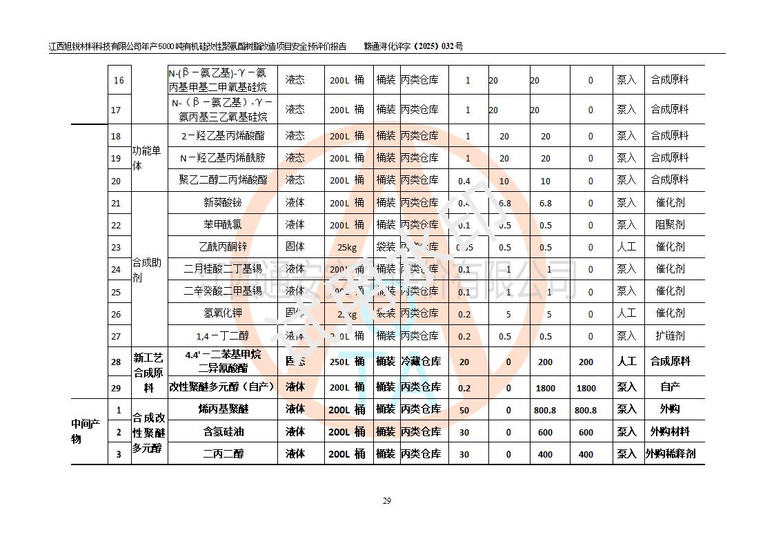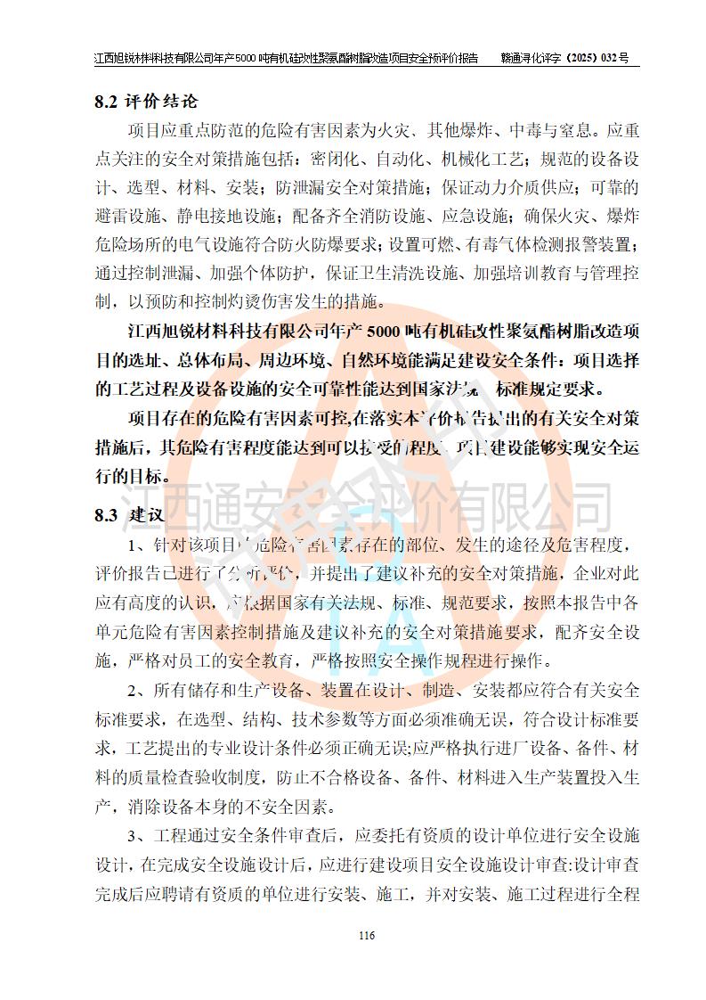 評價(jià)報(bào)告名稱 | 江西旭銳材料科技有限公司年產(chǎn)5000噸有機(jī)硅改性聚氨酯樹脂改造項(xiàng)目安全預(yù)評價(jià)報(bào)告 | |||||