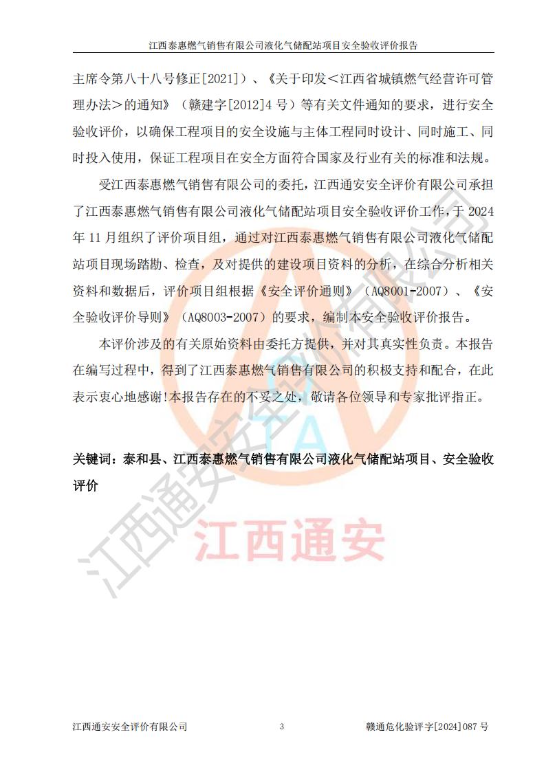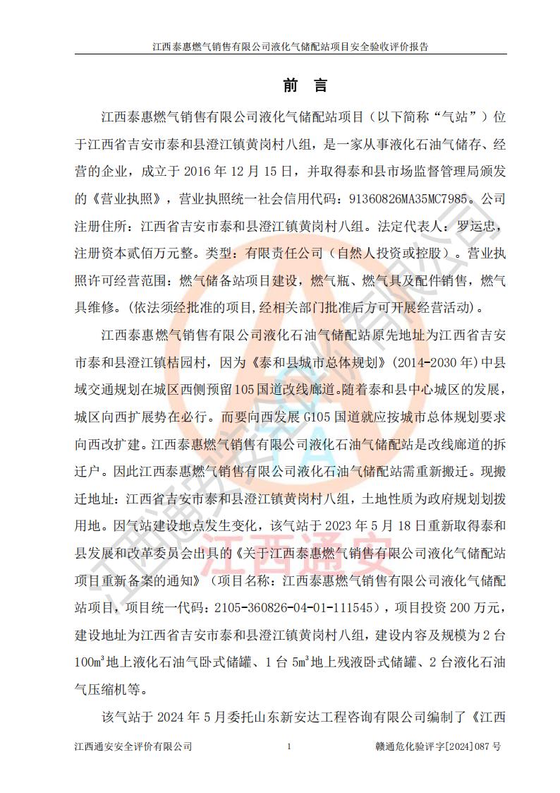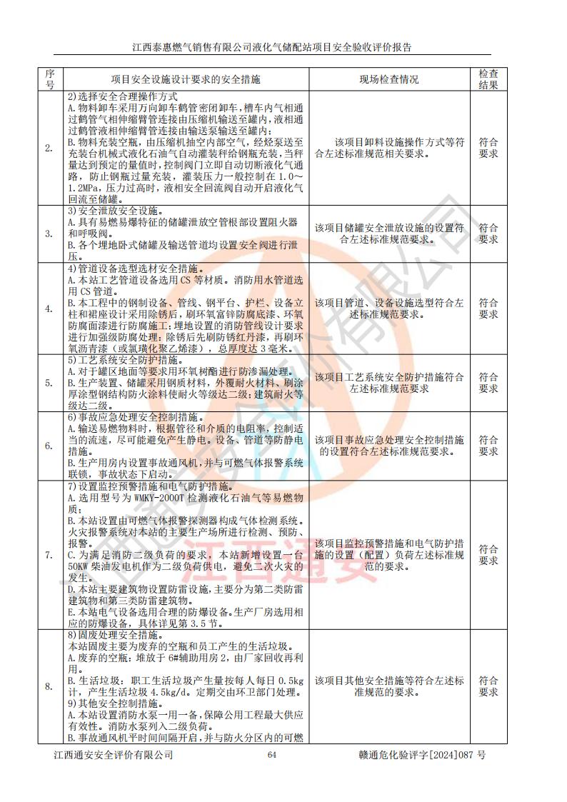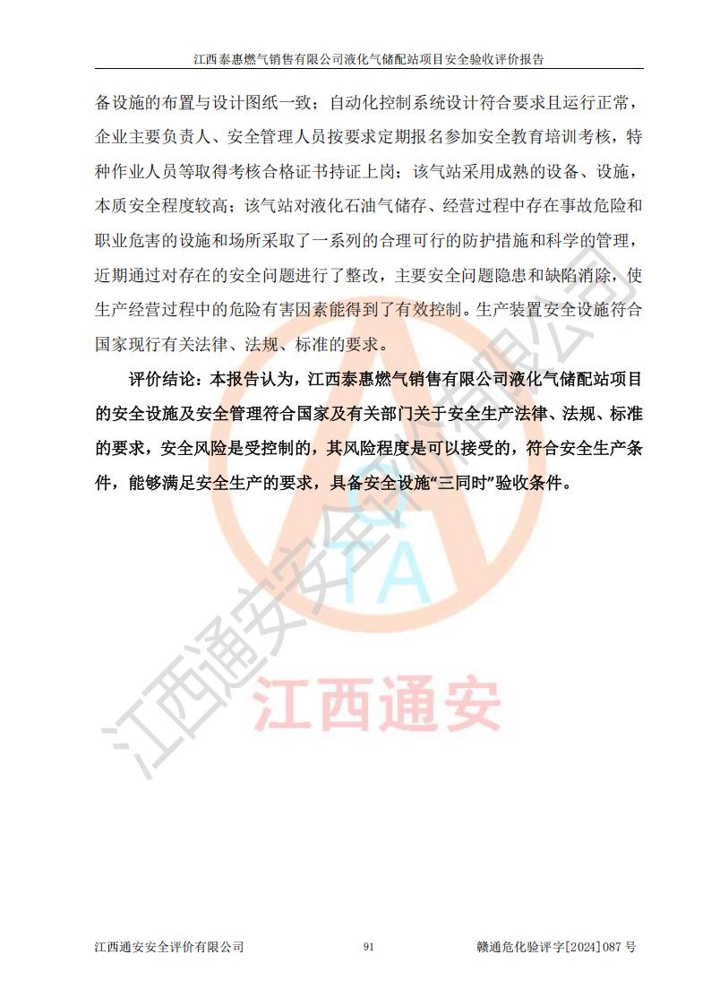 項(xiàng)目名稱 | 江西泰惠燃?xì)怃N售有限公司液化氣儲(chǔ)配站項(xiàng)目安全驗(yàn)收評(píng)價(jià)報(bào)告 | ||||