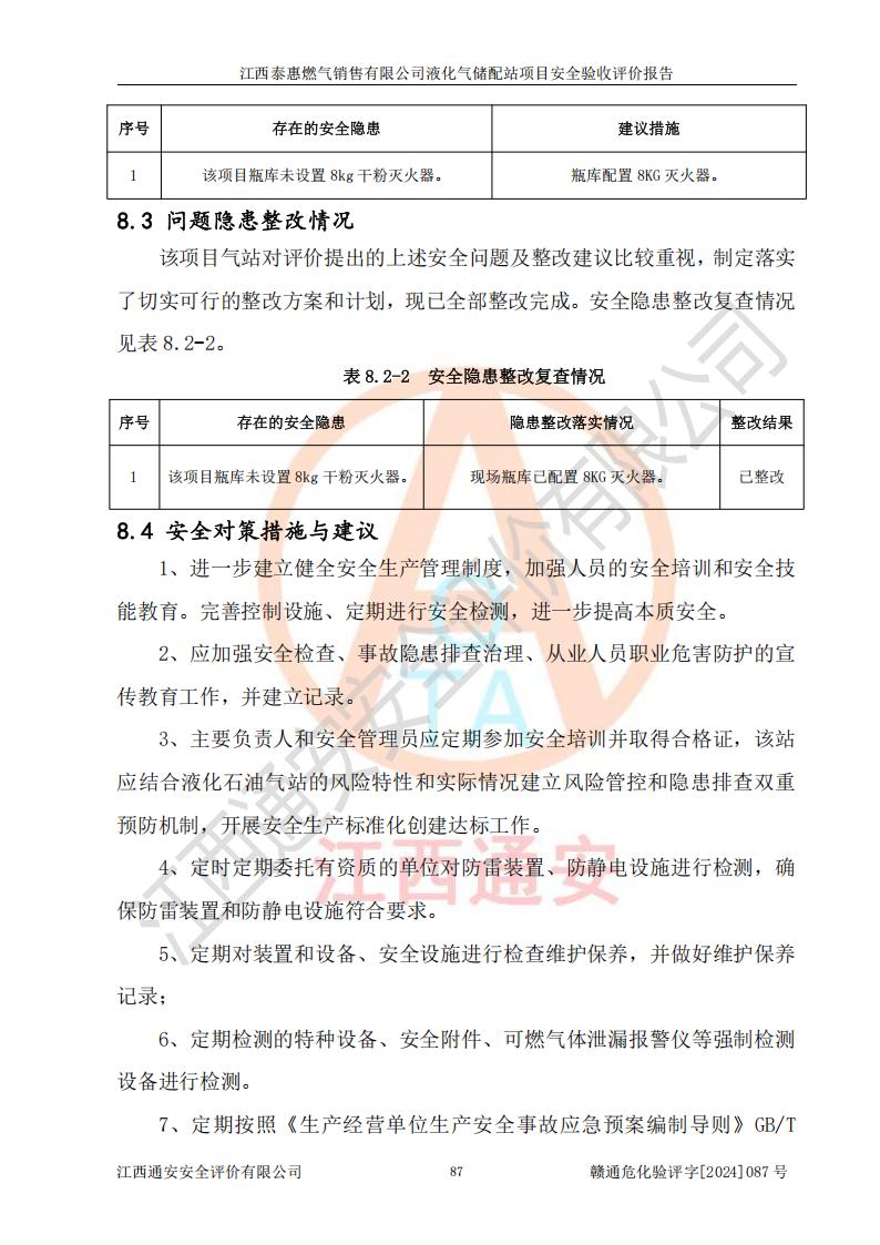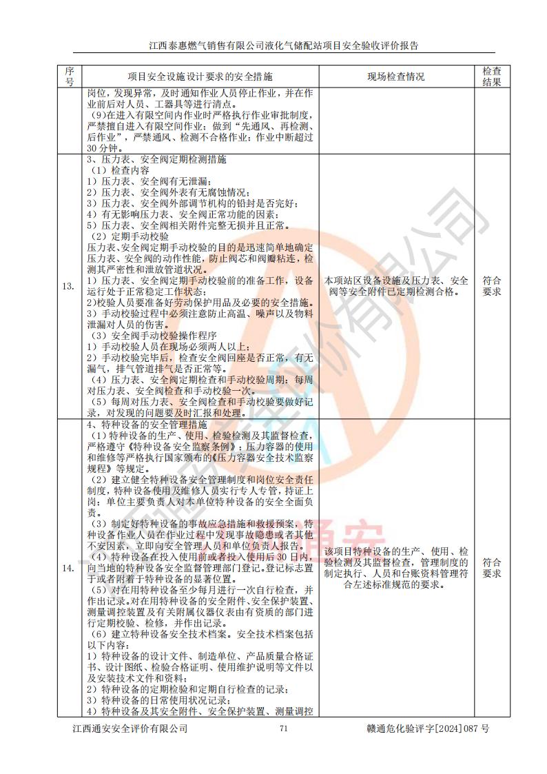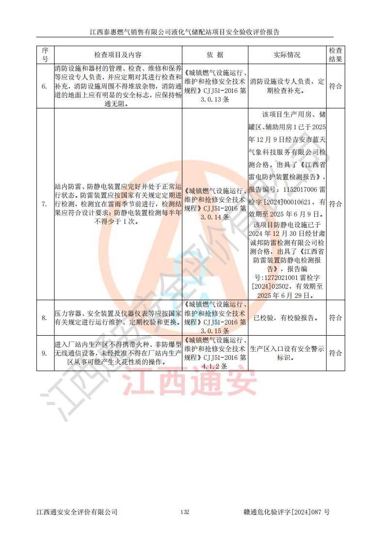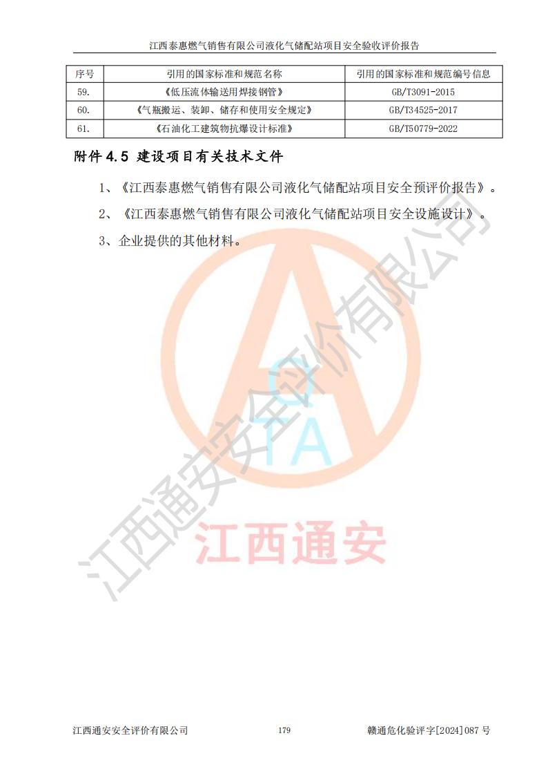 項(xiàng)目名稱 | 江西泰惠燃?xì)怃N售有限公司液化氣儲(chǔ)配站項(xiàng)目安全驗(yàn)收評(píng)價(jià)報(bào)告 | ||||