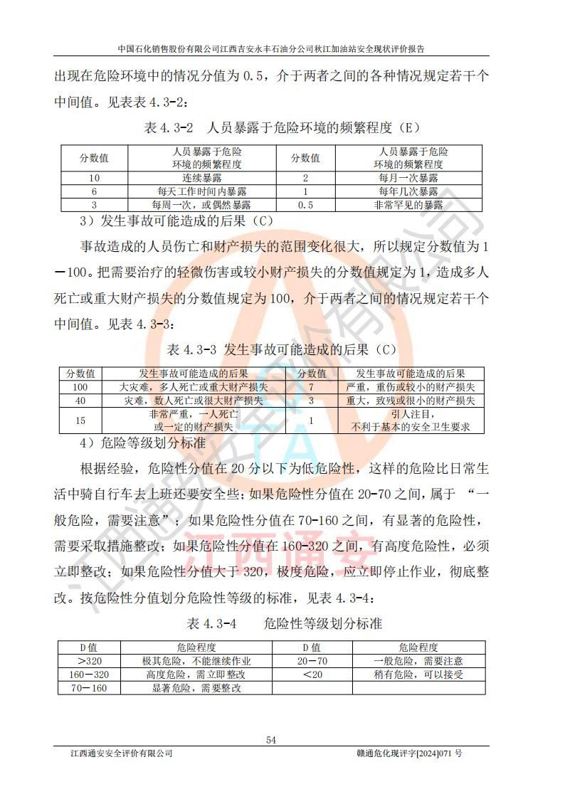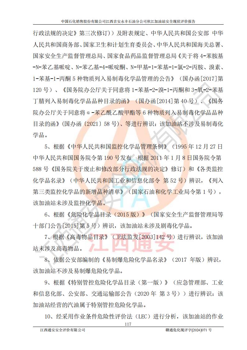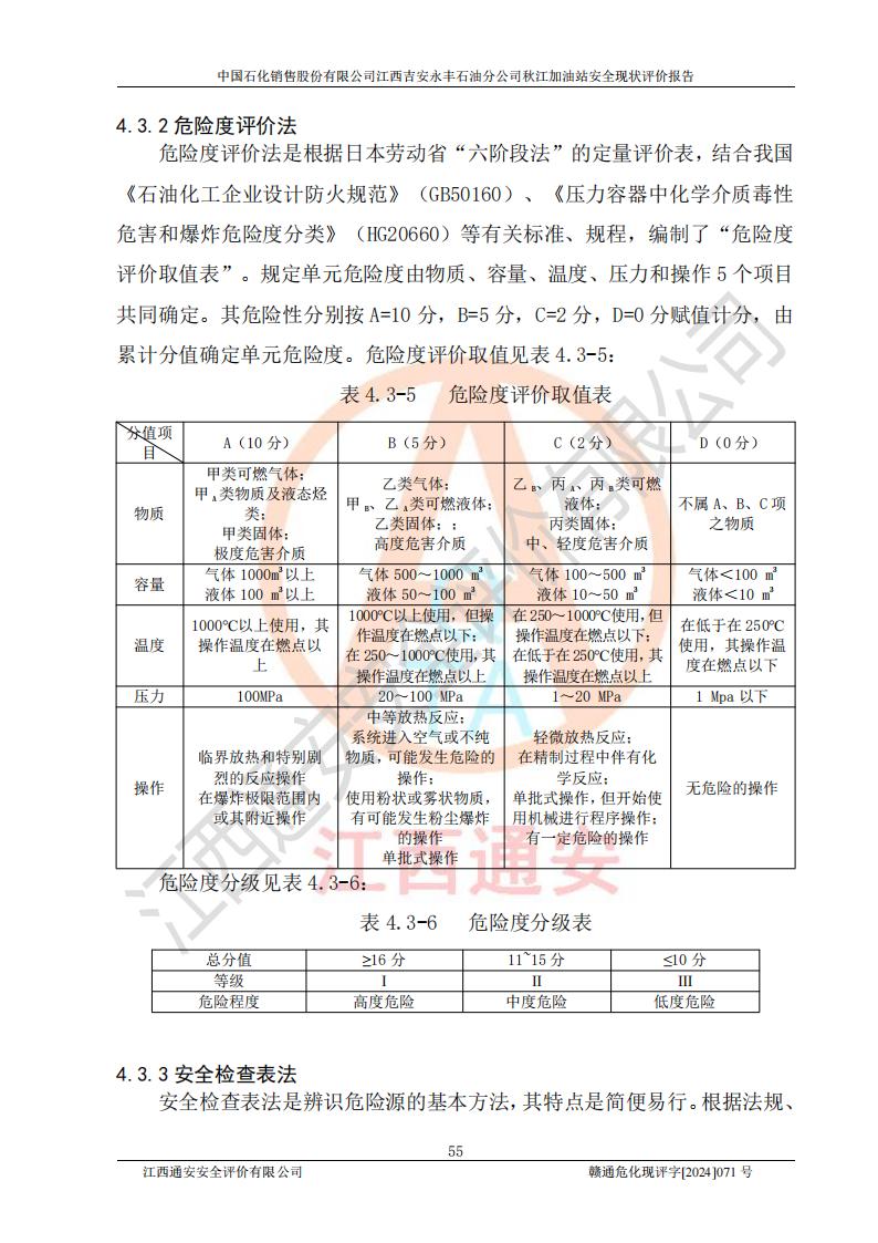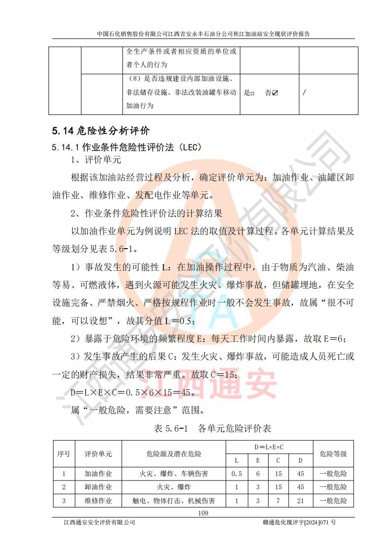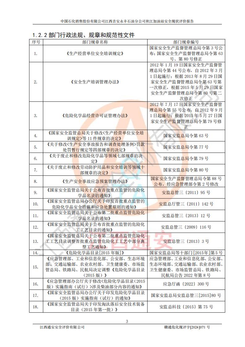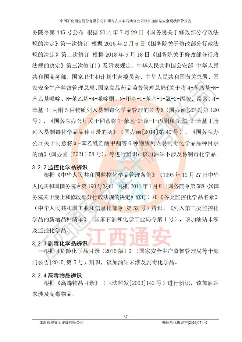 評價結論 | 江西高速實業(yè)開發(fā)有限公司吉安服務區(qū)西加油站改造項目現場布置與設計圖紙一致,有關從業(yè)人員資質符合《江西省危險化學品安全專項整治三年行動實施方案》要求,具備**有關安全生產法律、法規(guī)、部門規(guī)章及標準規(guī)范要求的安全條件,符合經營和儲存危險化學品的安全條件要求,具備安全驗收的要求。 | |||