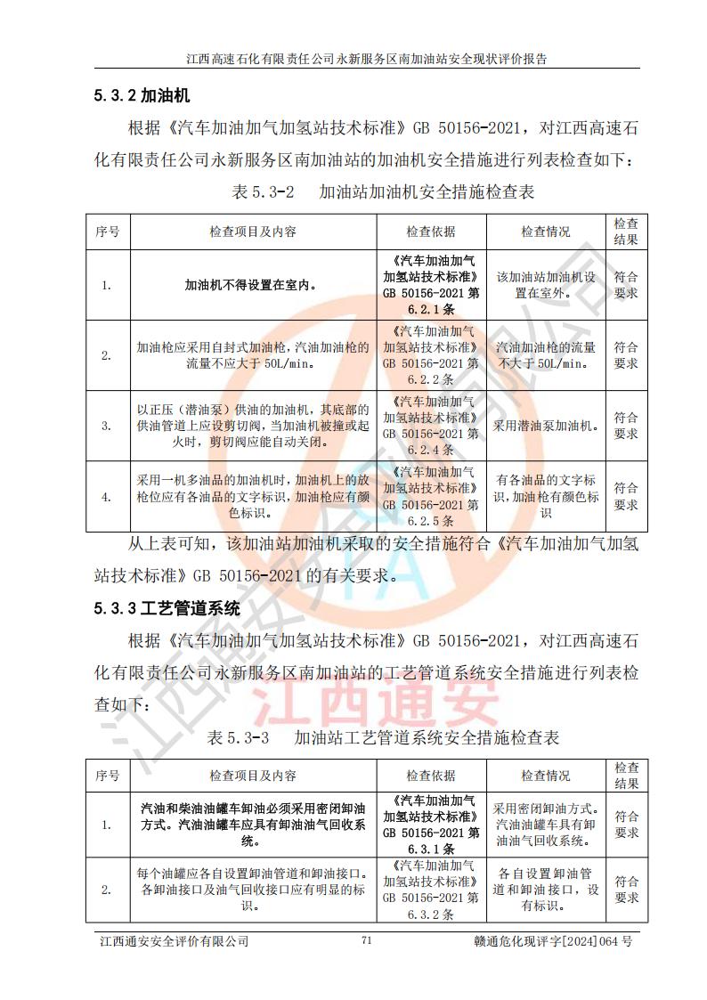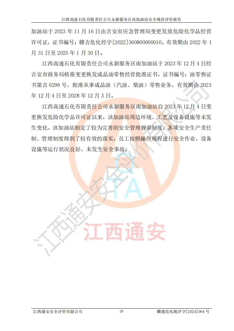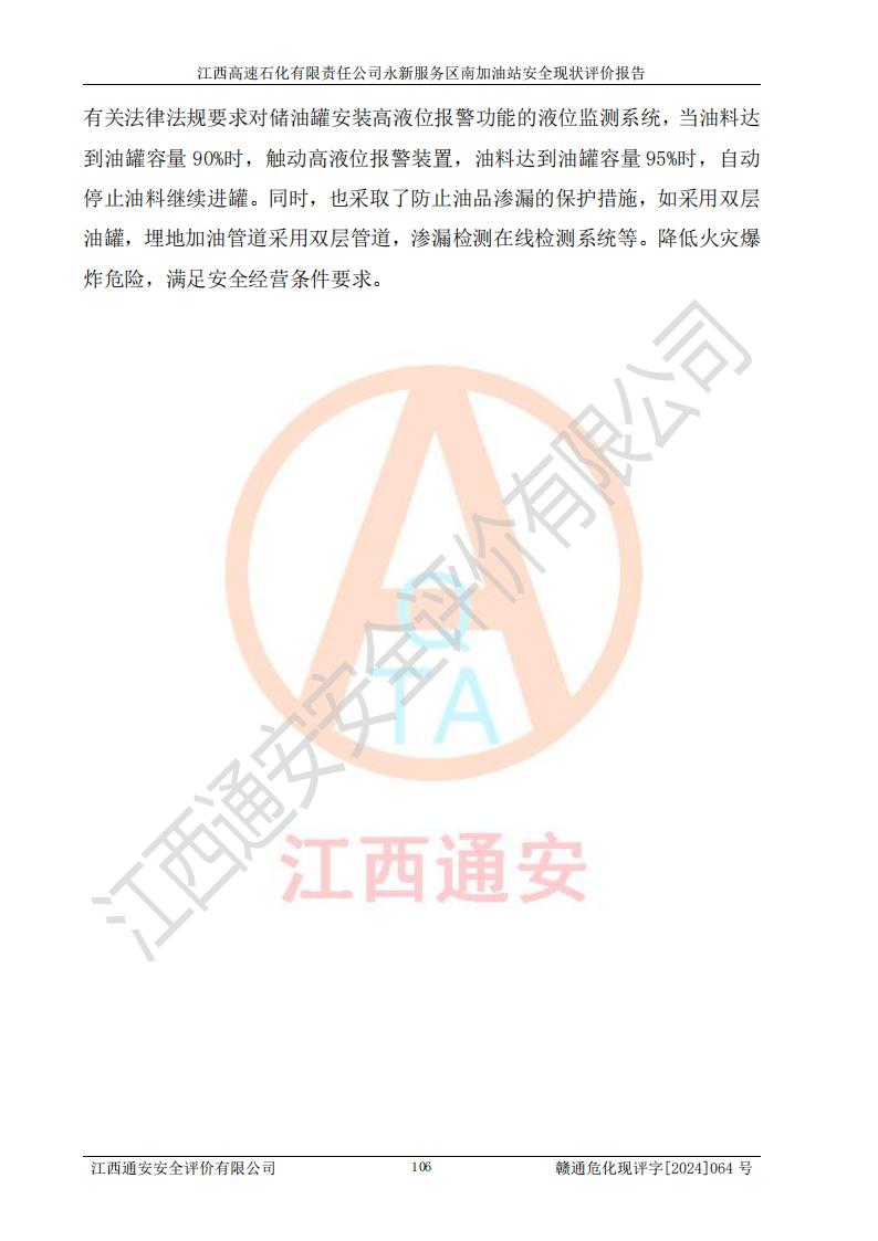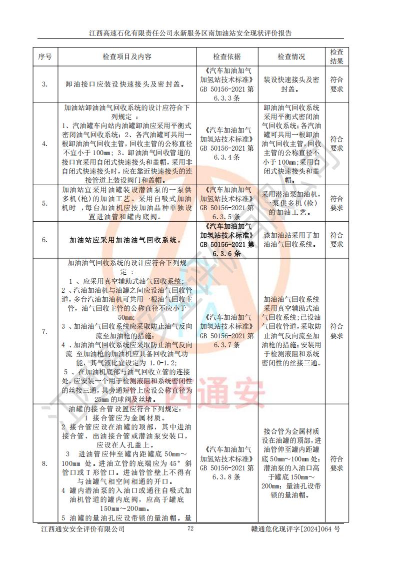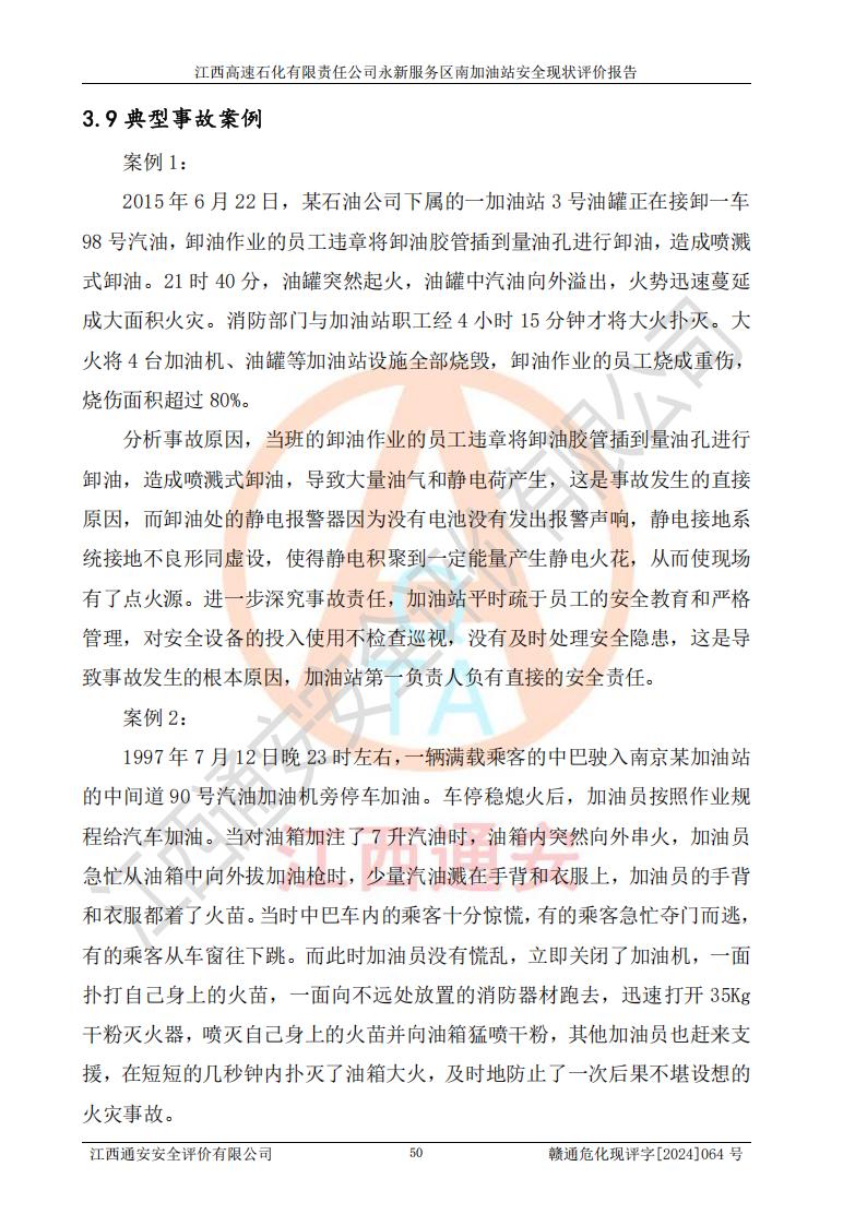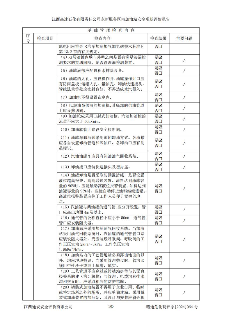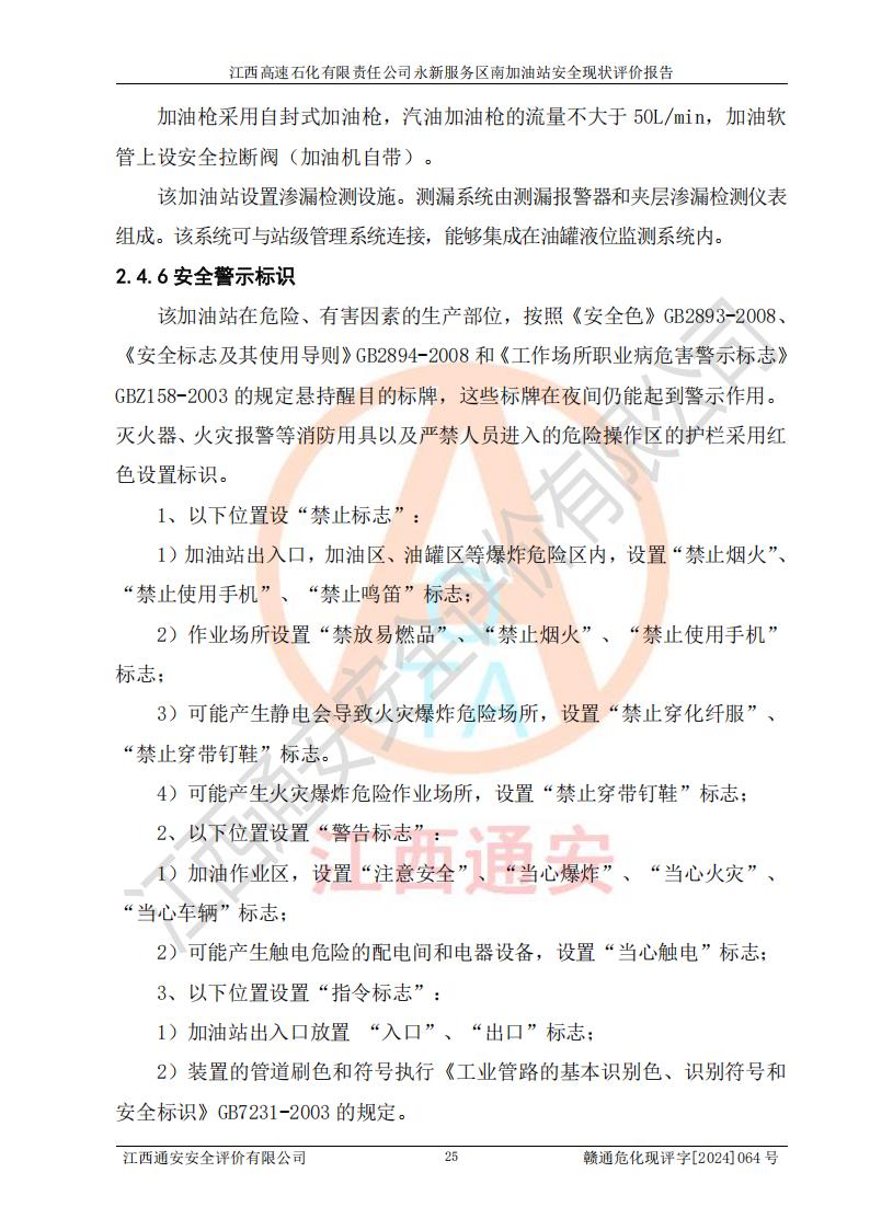 評價報告名稱 | 江西高速石化有限責任公司永新服務區(qū)南加油站安全現(xiàn)狀評價報告 | |||