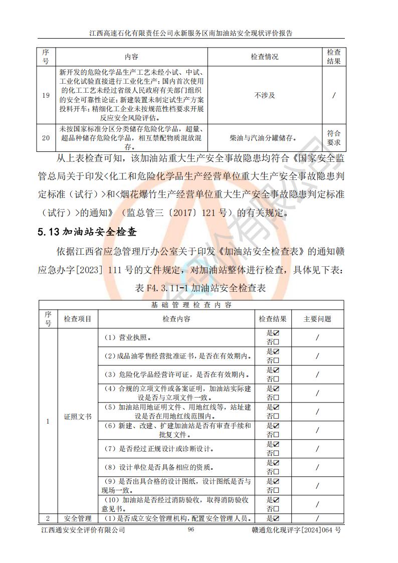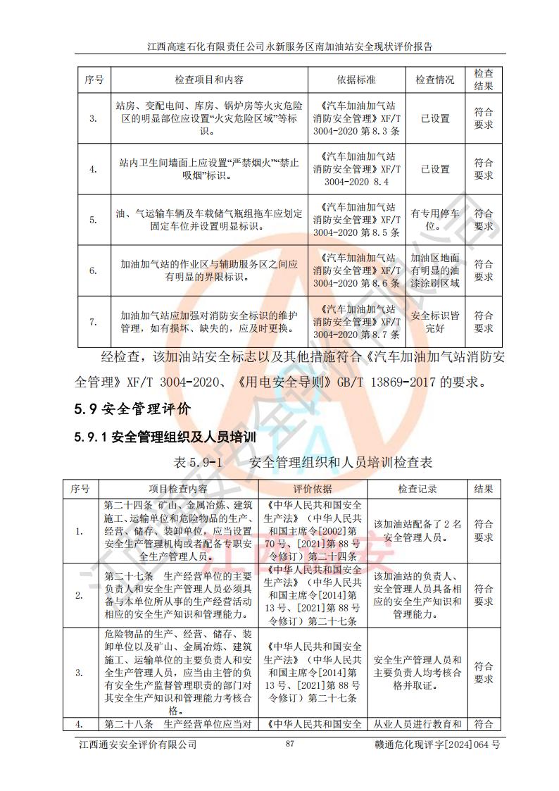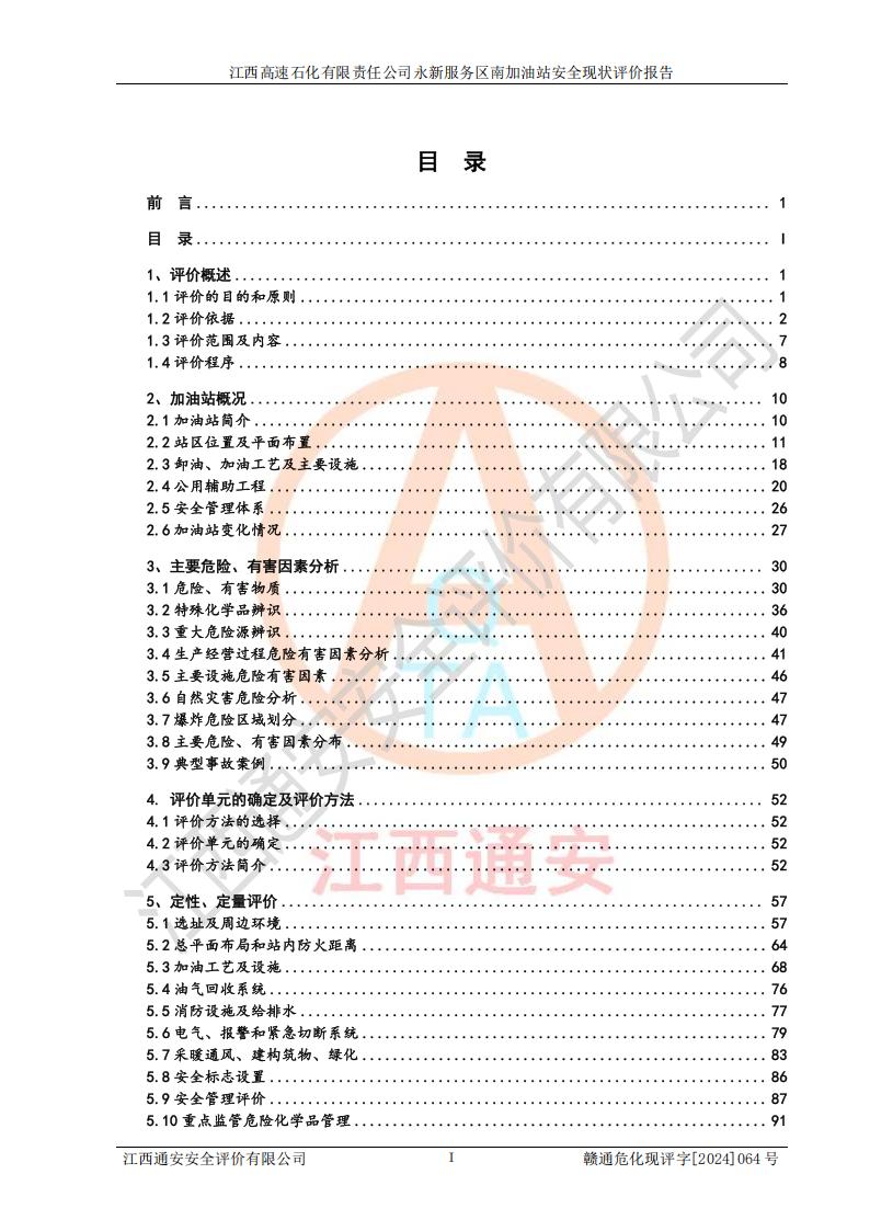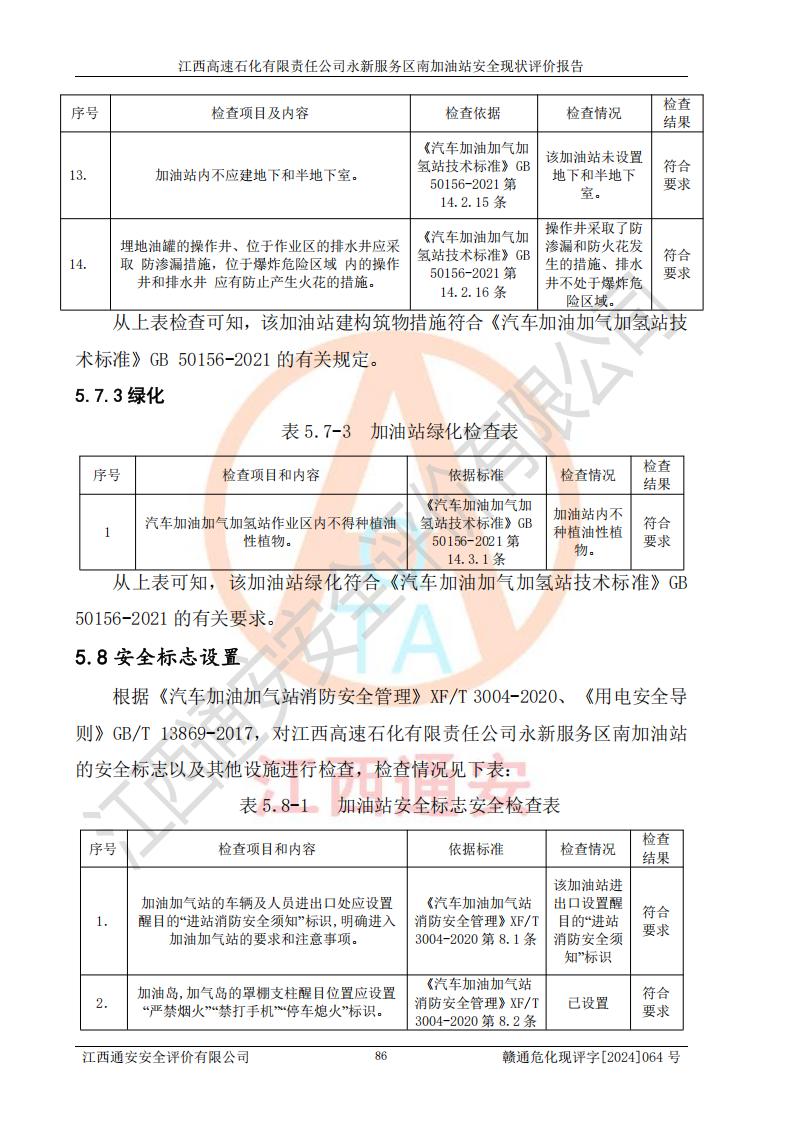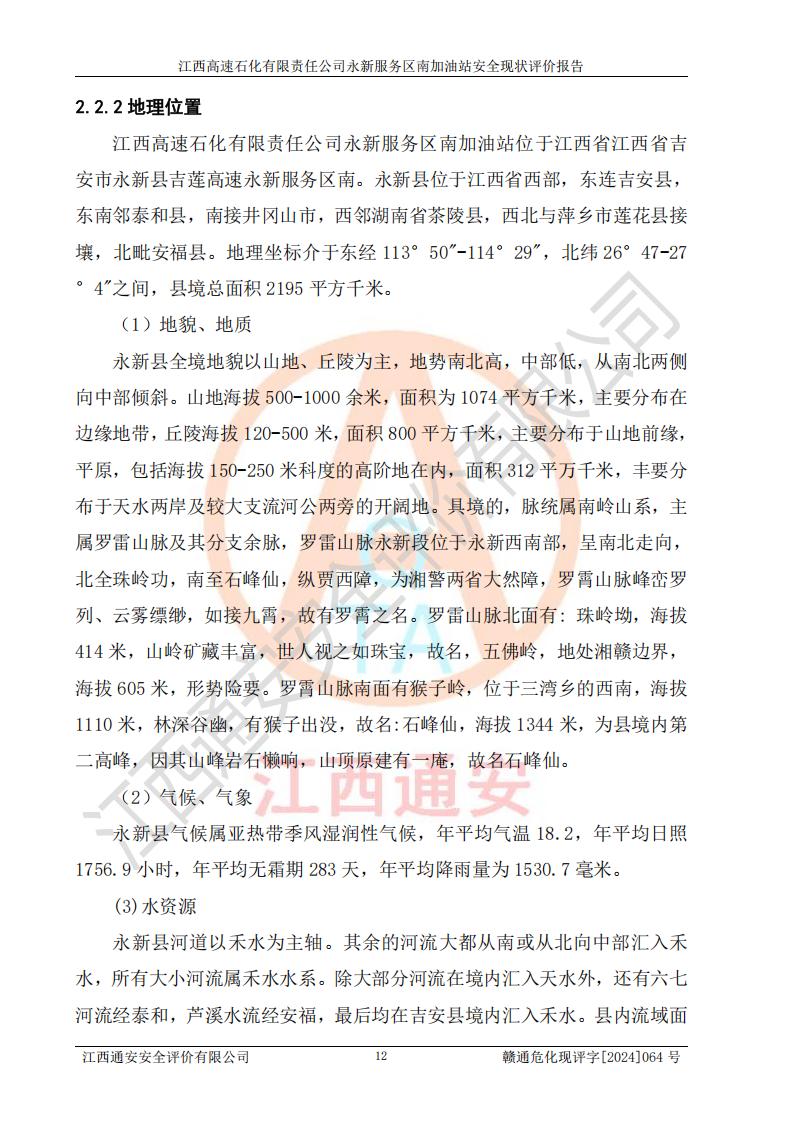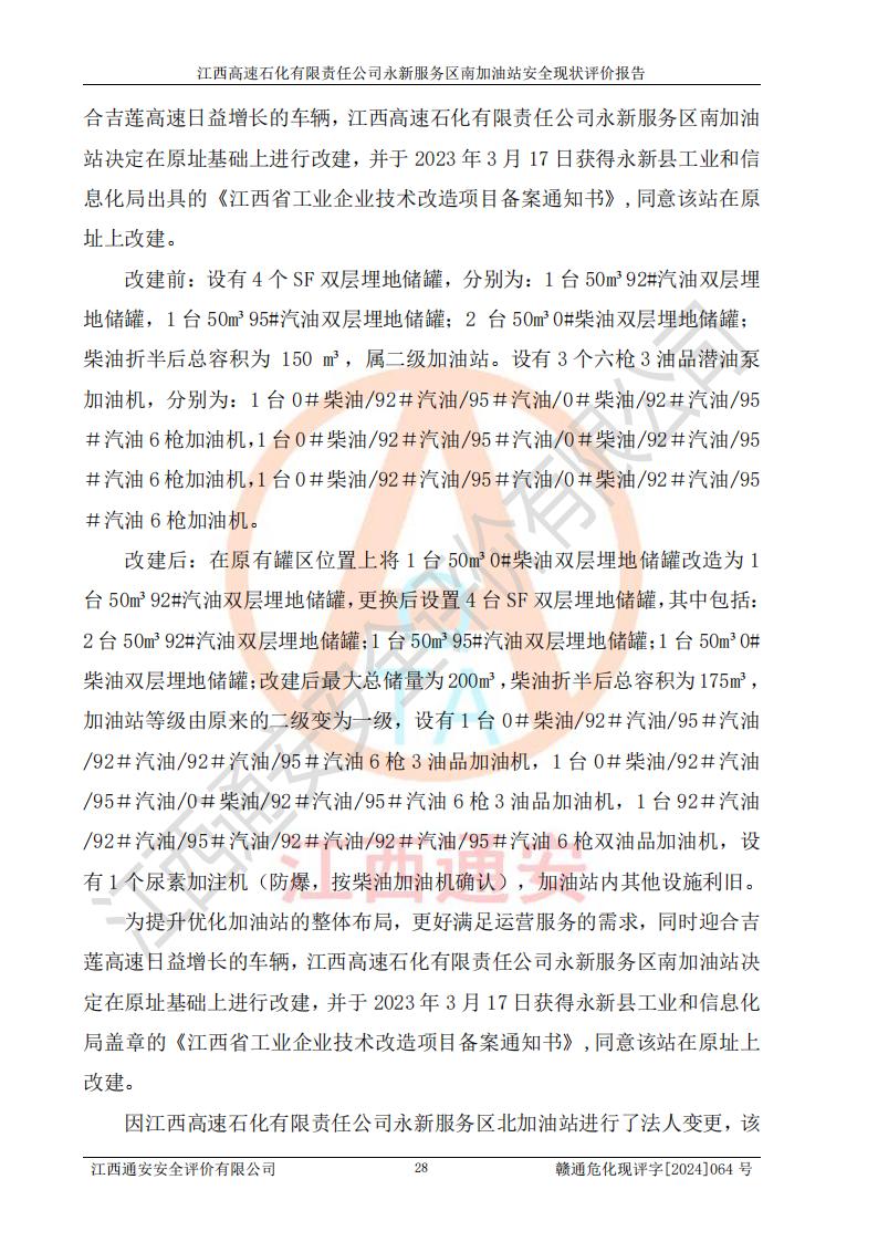 評價報告名稱 | 江西高速石化有限責任公司永新服務區(qū)南加油站安全現(xiàn)狀評價報告 | |||