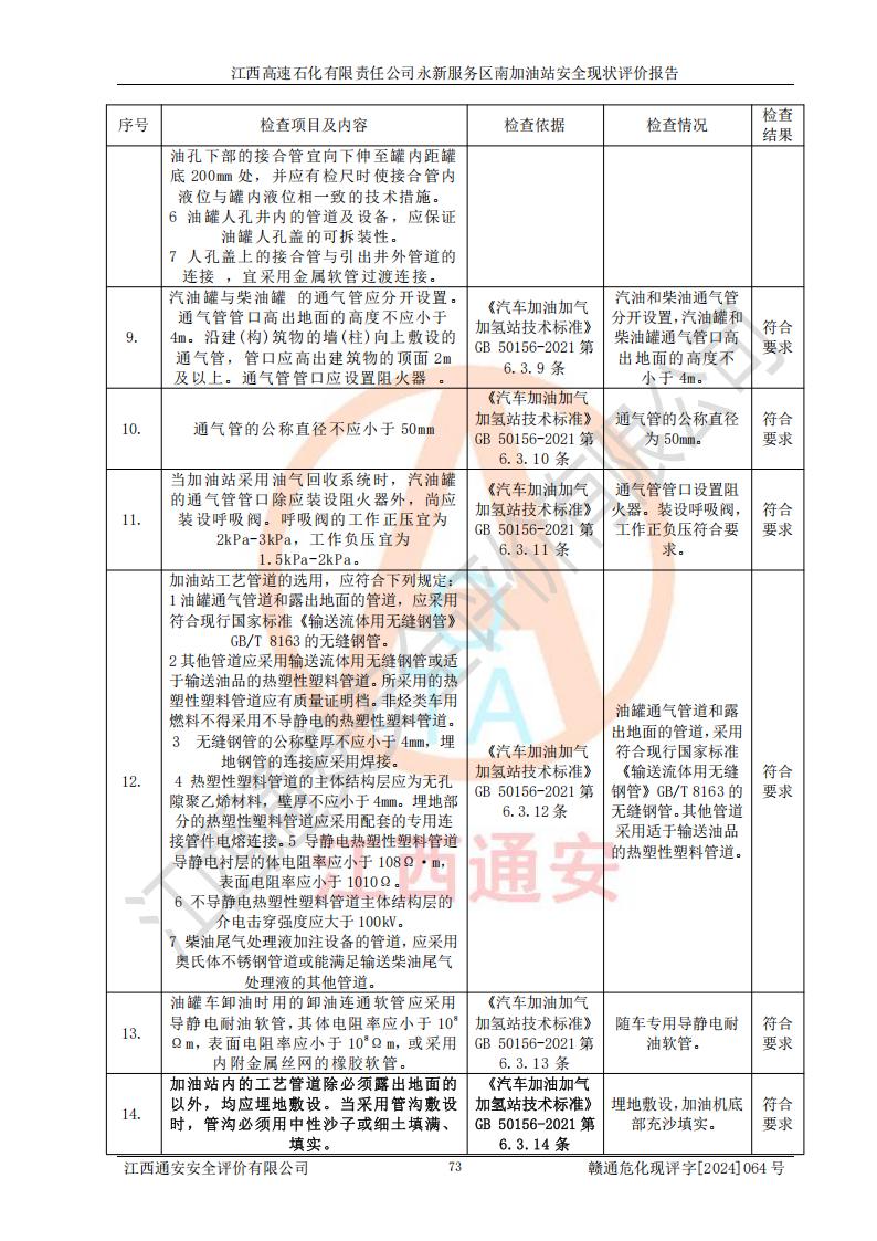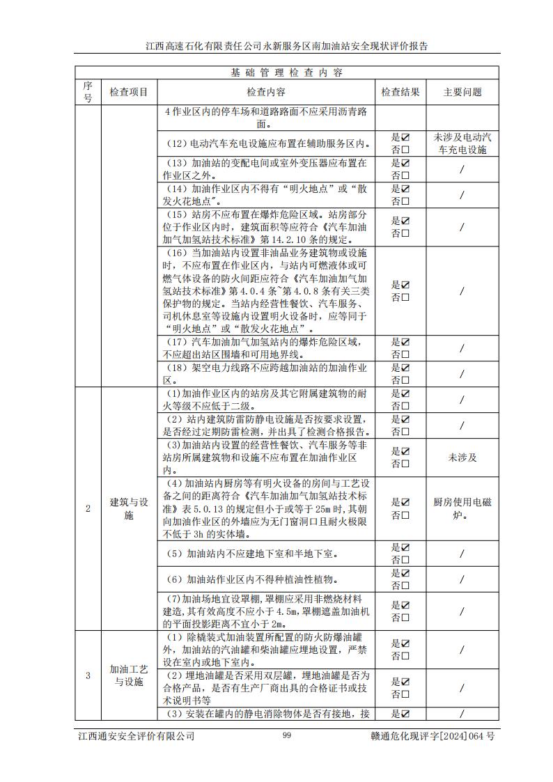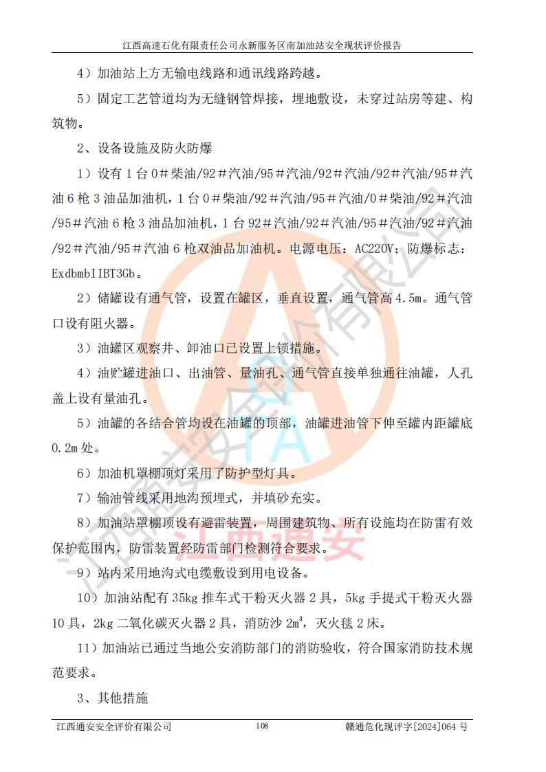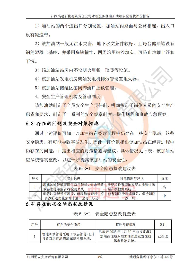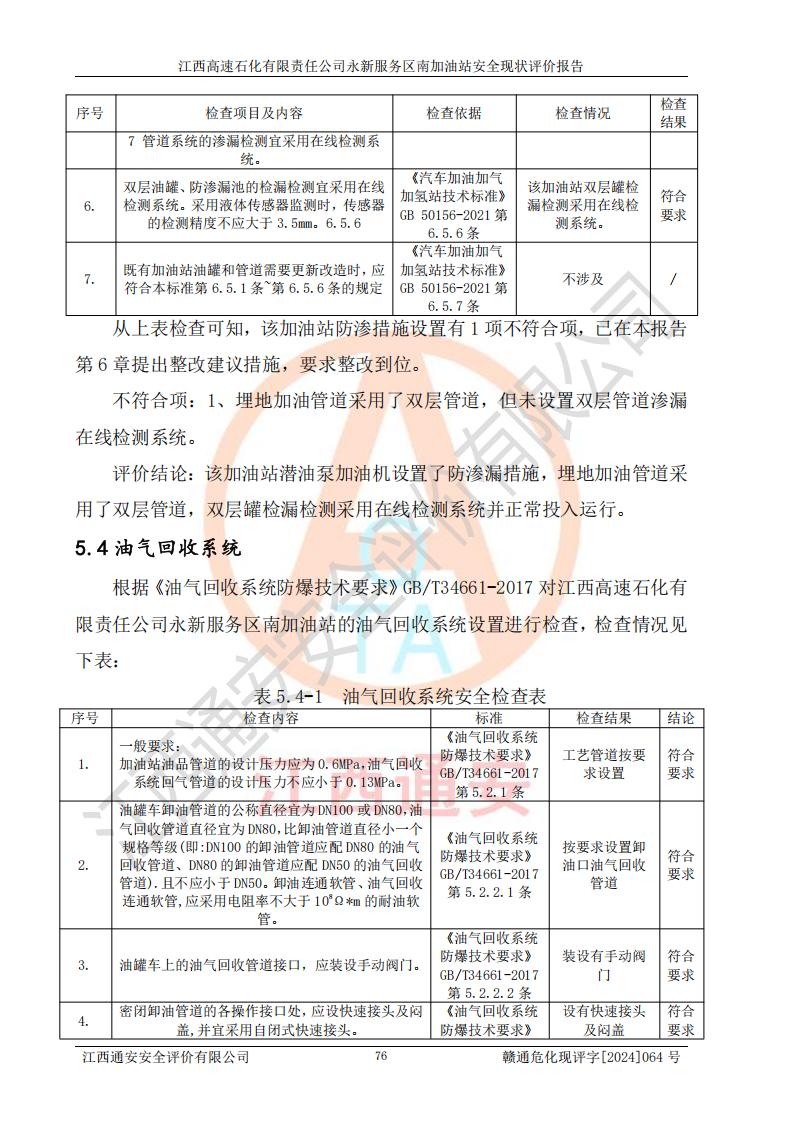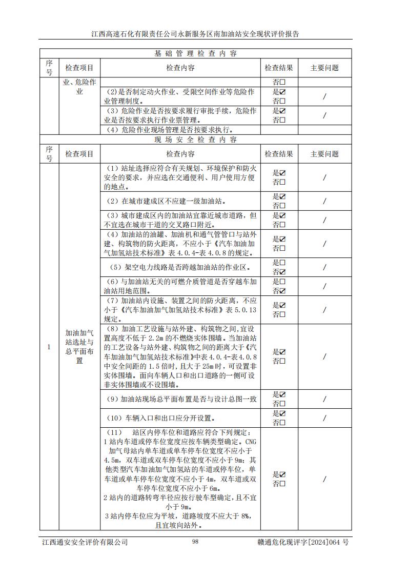 評價報告名稱 | 江西高速石化有限責任公司永新服務區(qū)南加油站安全現(xiàn)狀評價報告 | |||