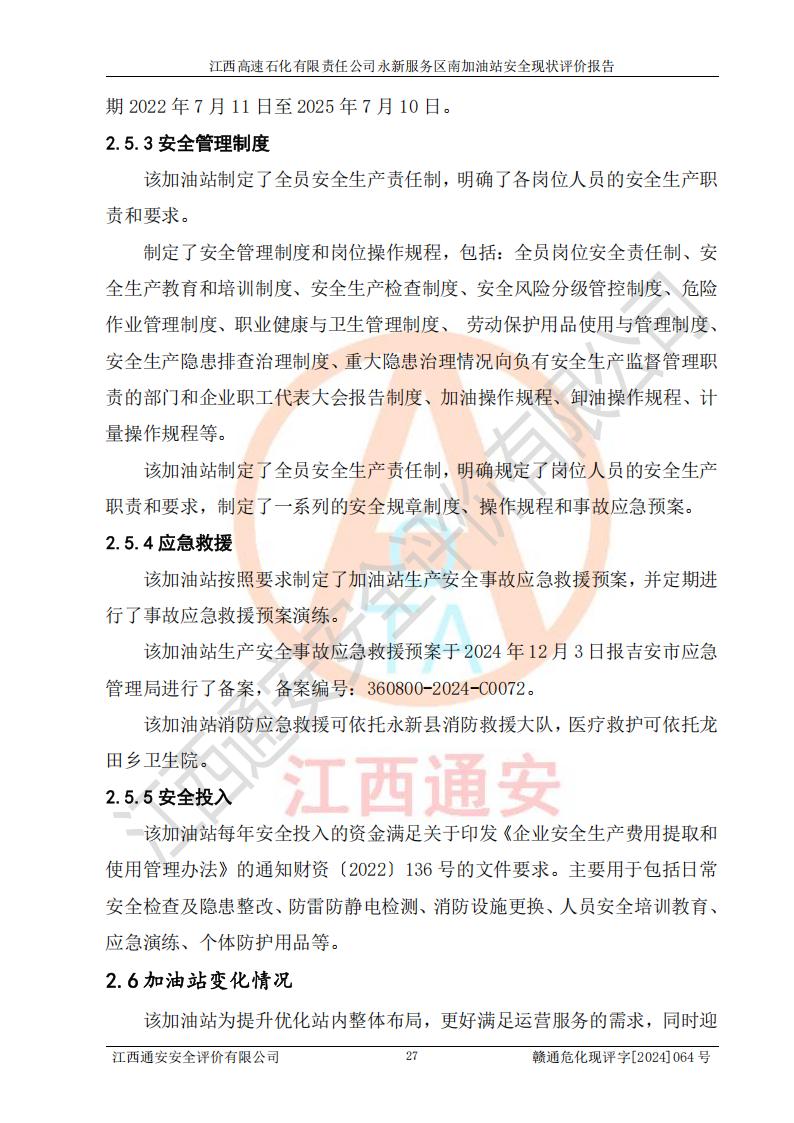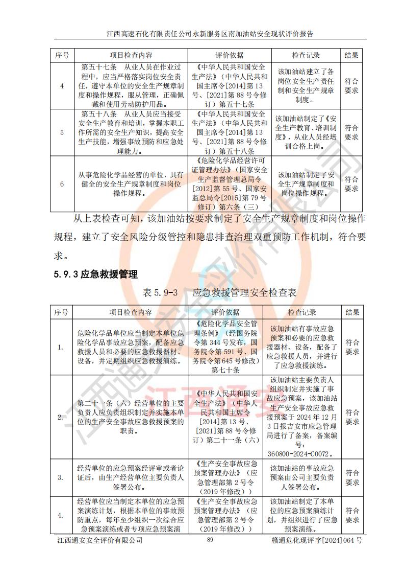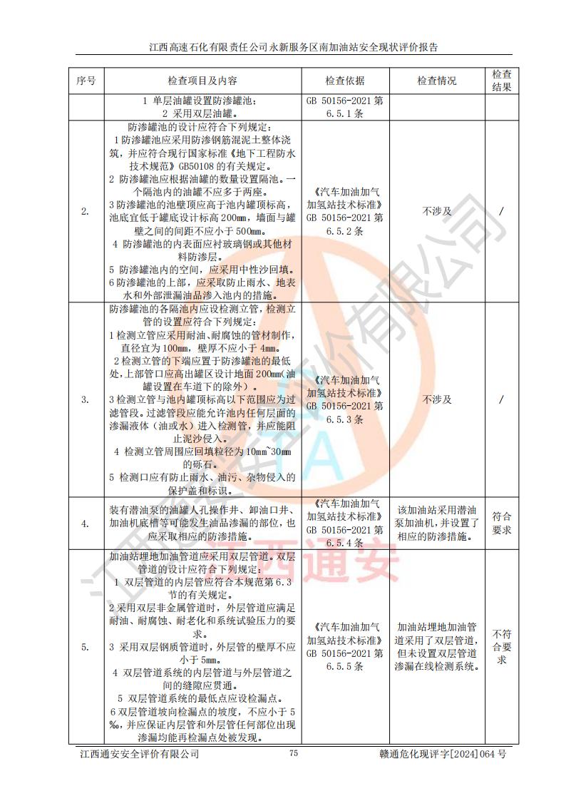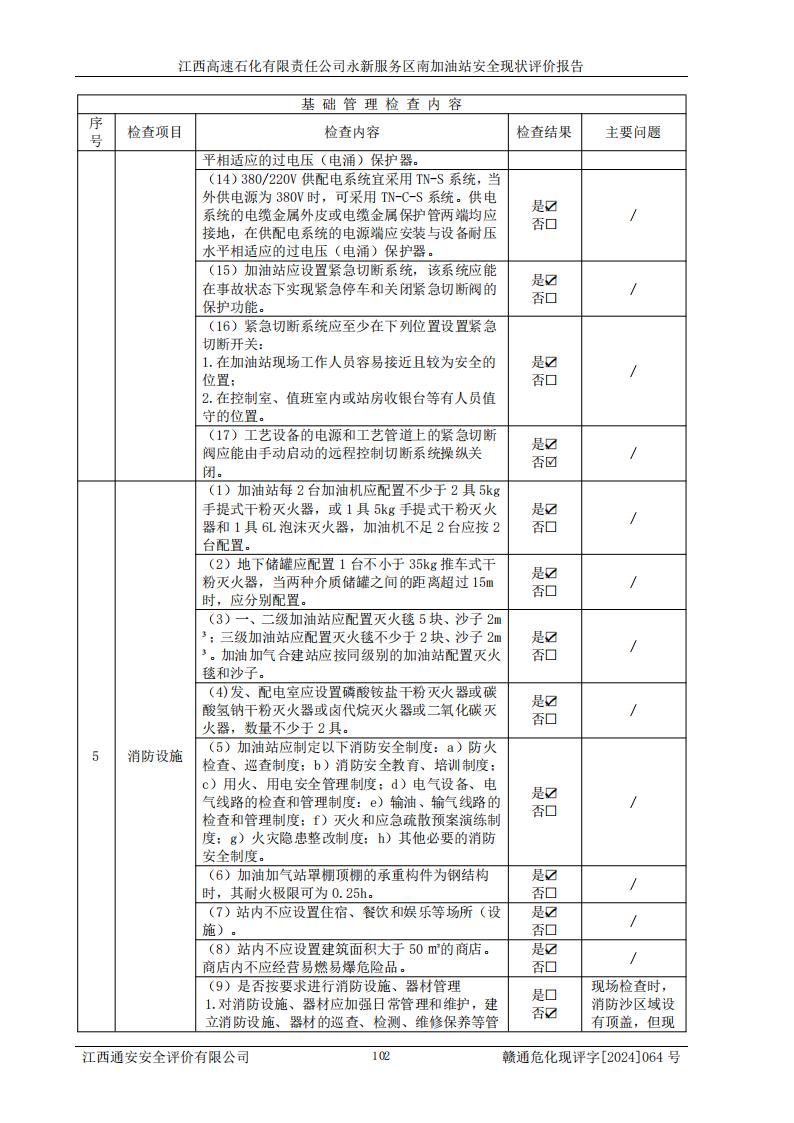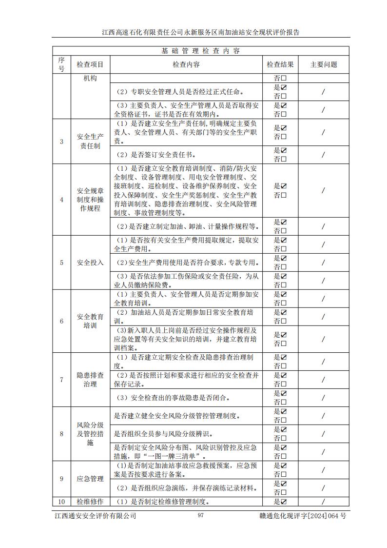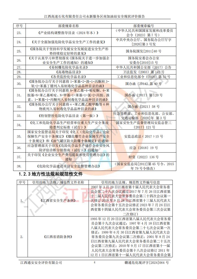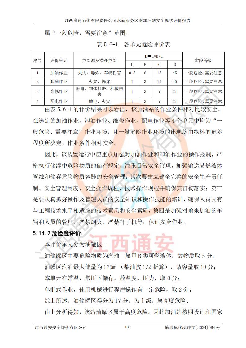 評價報告名稱 | 江西高速石化有限責任公司永新服務區(qū)南加油站安全現(xiàn)狀評價報告 | |||