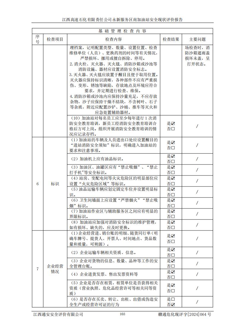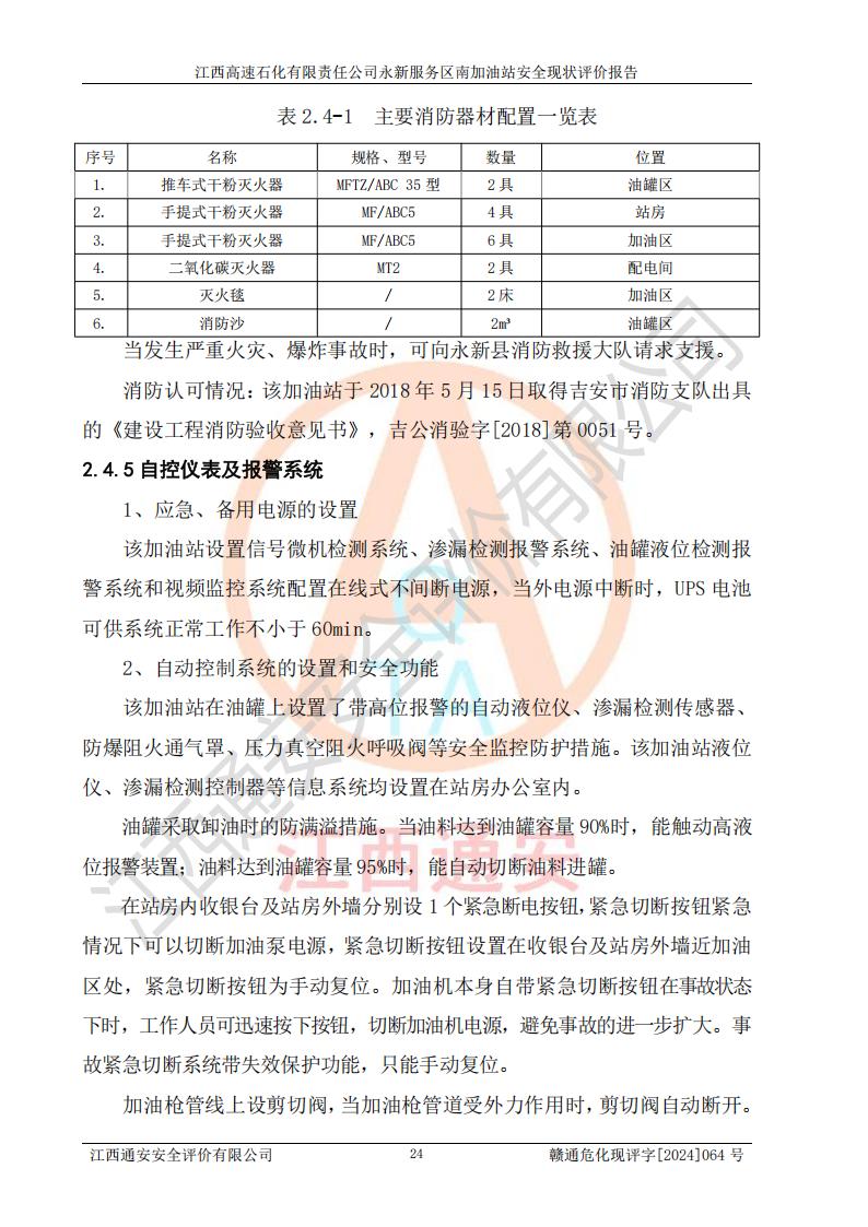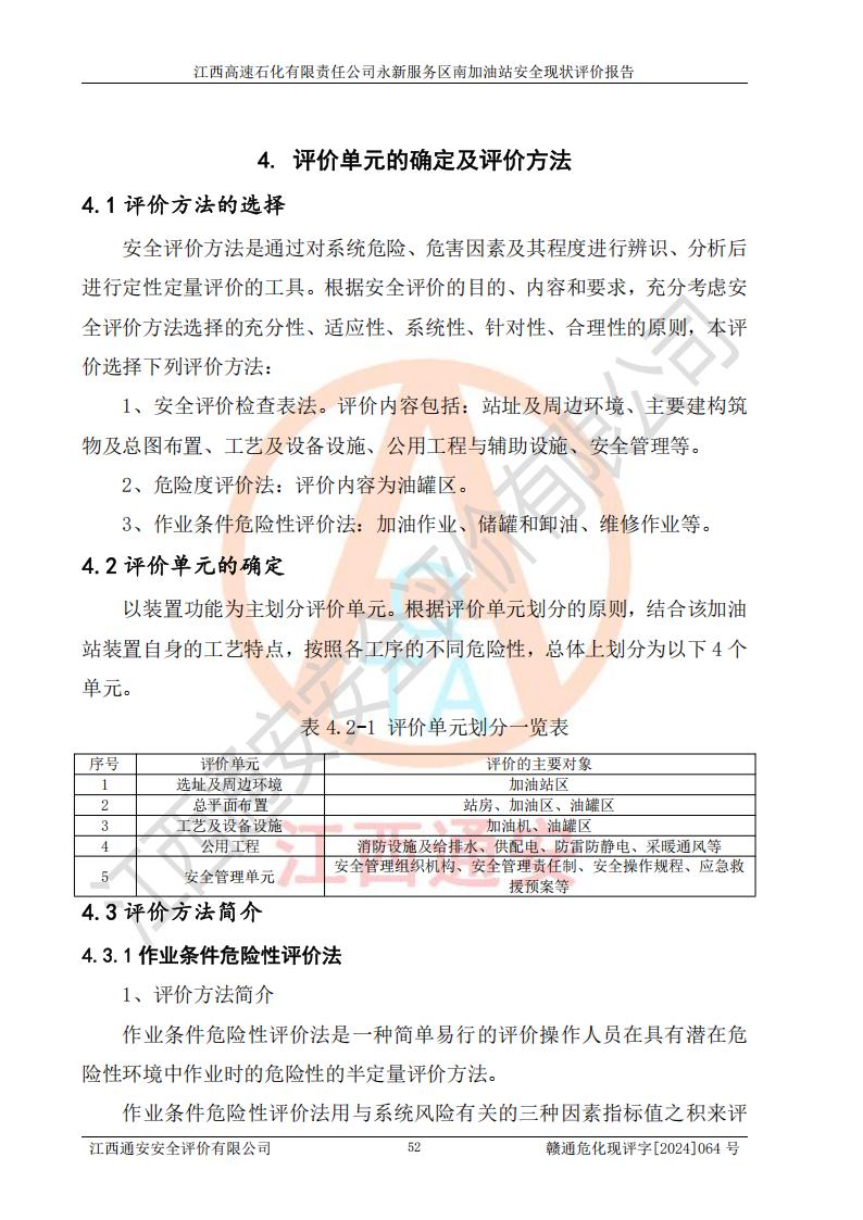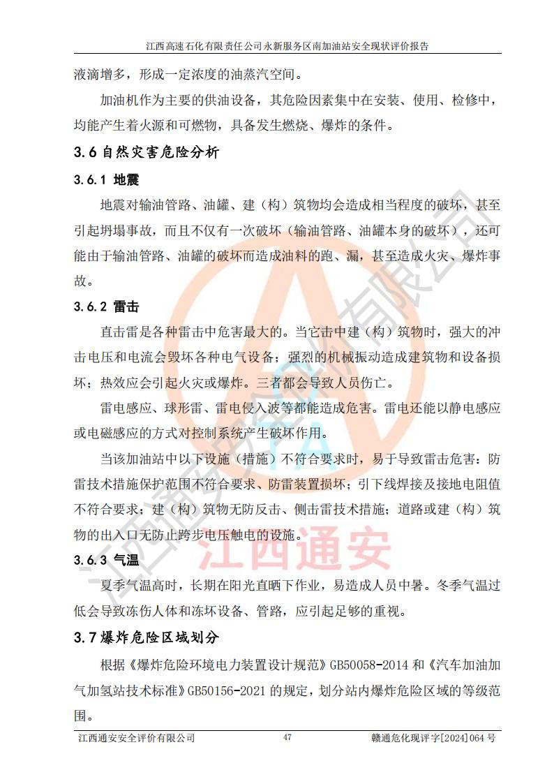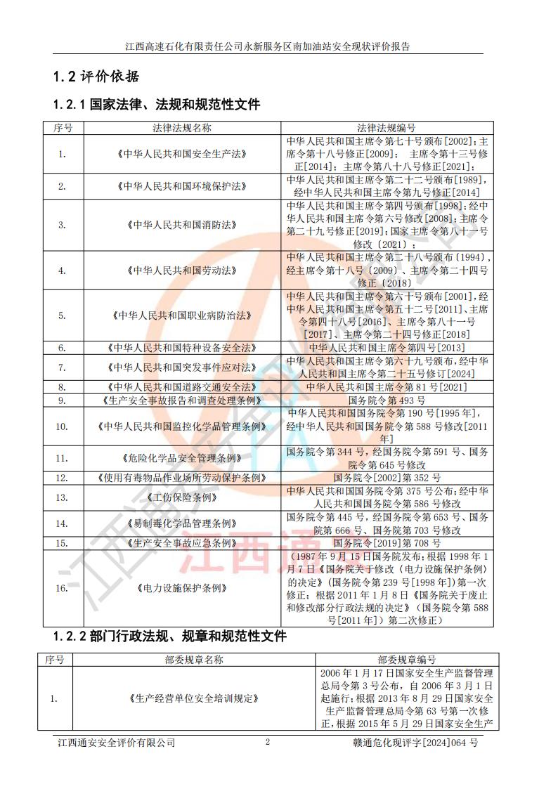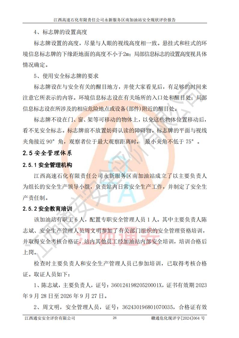 評價報告名稱 | 江西高速石化有限責任公司永新服務區(qū)南加油站安全現(xiàn)狀評價報告 | |||