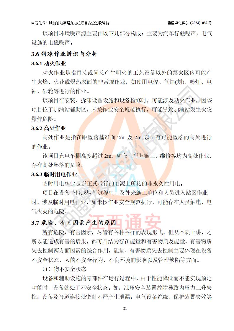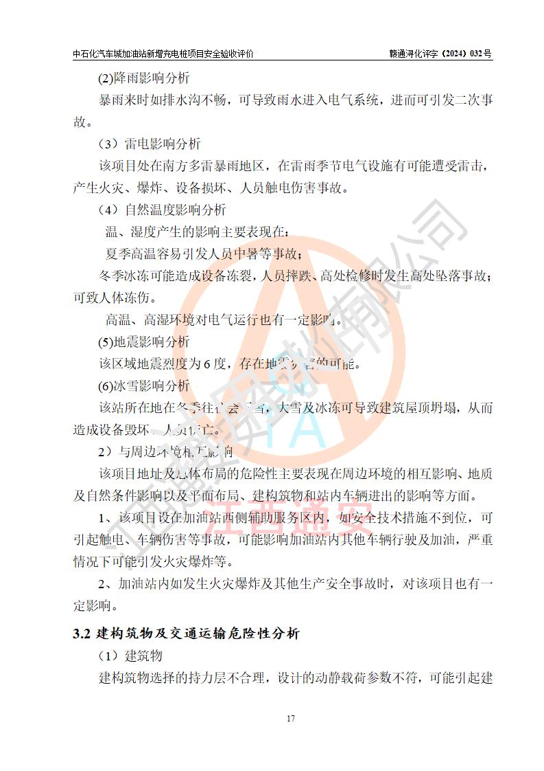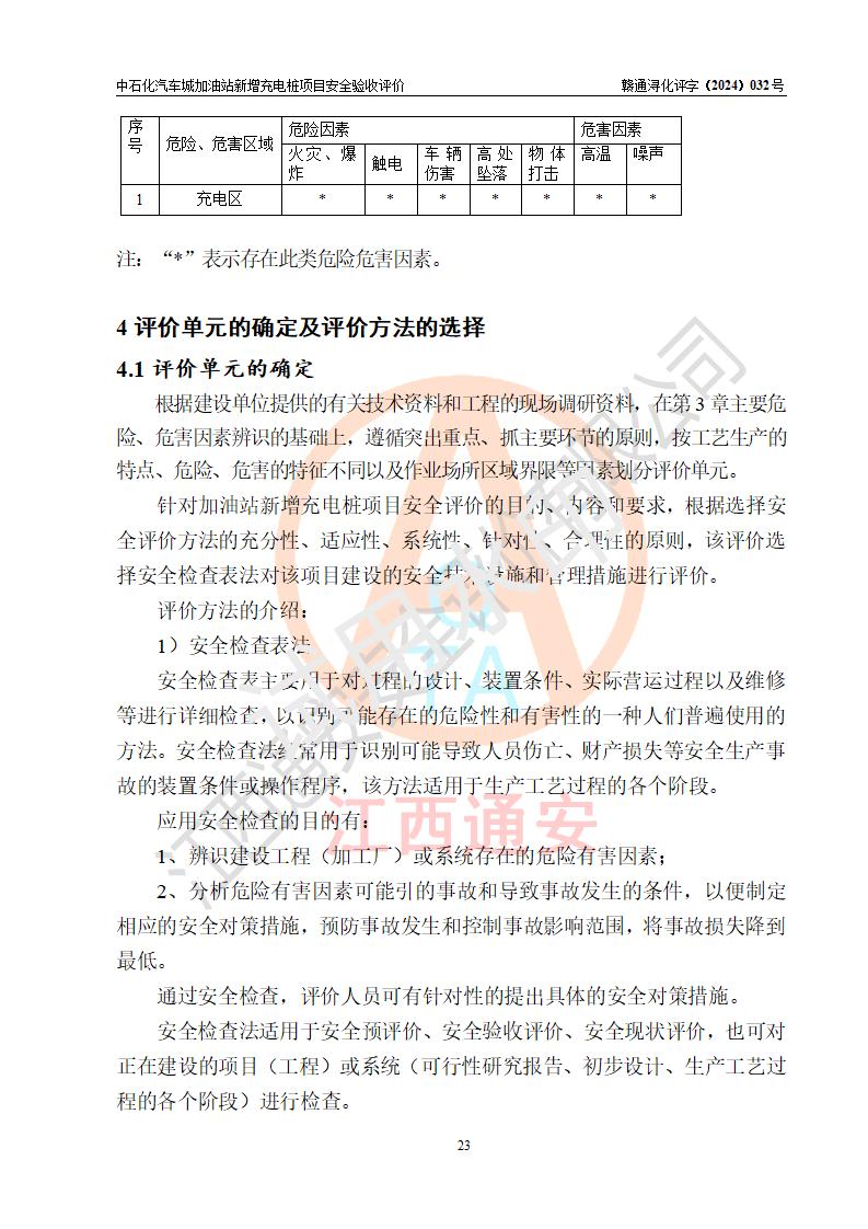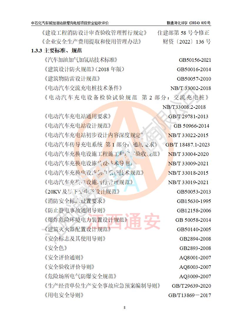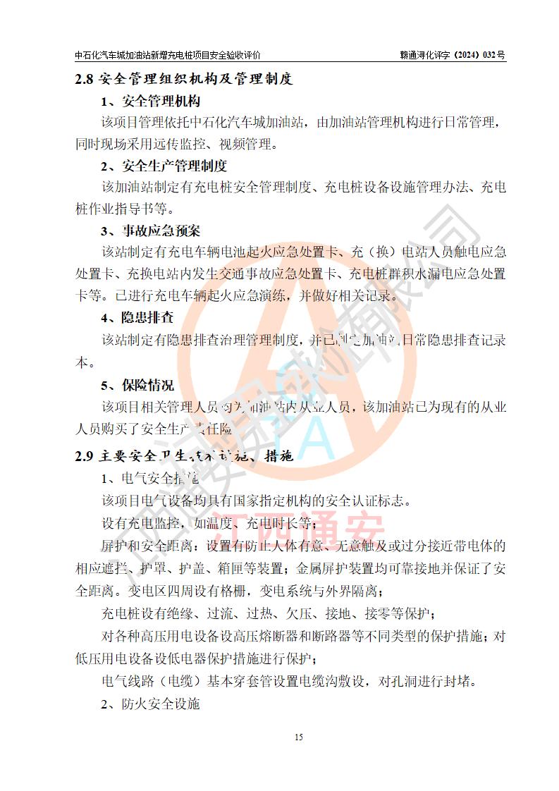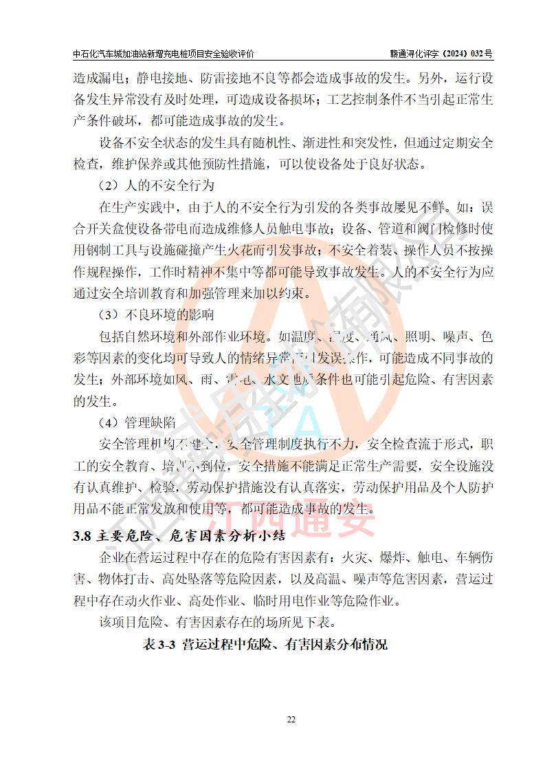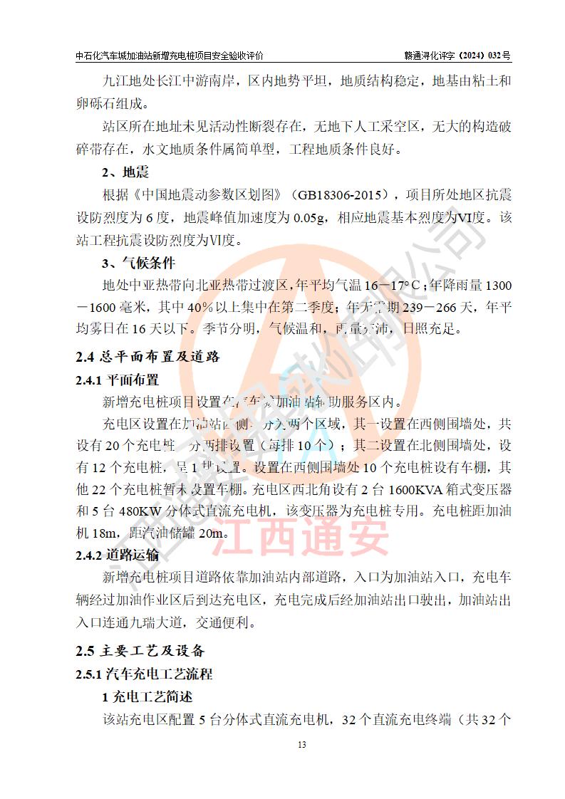 評價結(jié)論 | 中國石化銷售股份有限公司江西九江潯陽石油分公司汽車城加油站新增充電樁項目涉及的安全條件、安全生產(chǎn)條件、安全生產(chǎn)管理符合《電動汽車充電站設(shè)計規(guī)范》、《汽車加油加氣加氫站技術(shù)標(biāo)準(zhǔn)》等**有關(guān)法規(guī)、標(biāo)準(zhǔn)、規(guī)范要求,能滿足經(jīng)營單位的安全條件,具備項目竣工驗收的條件。 | |||
