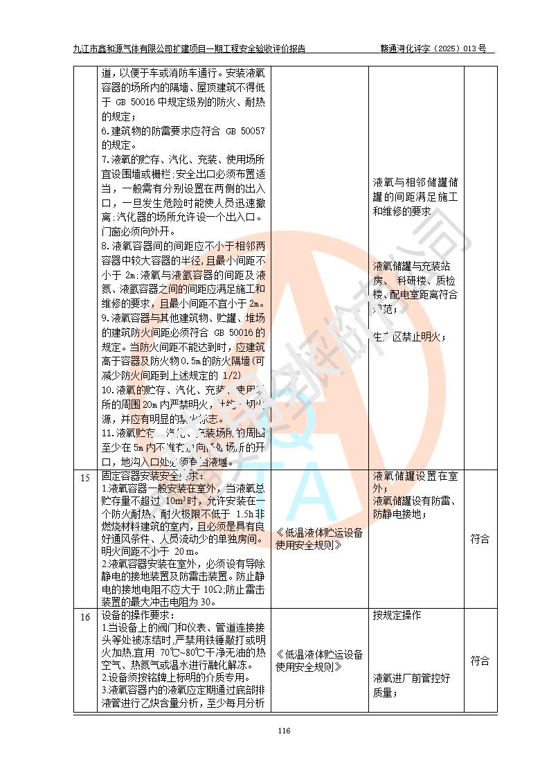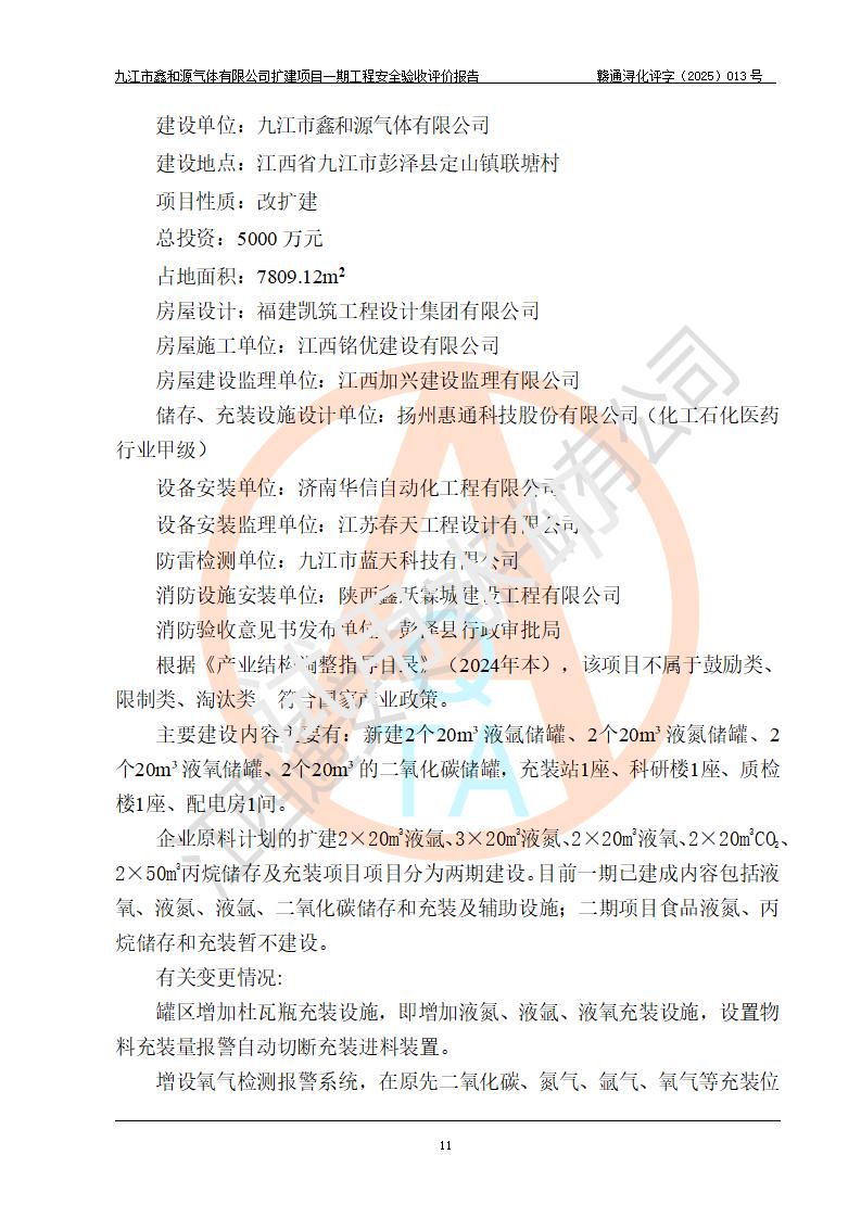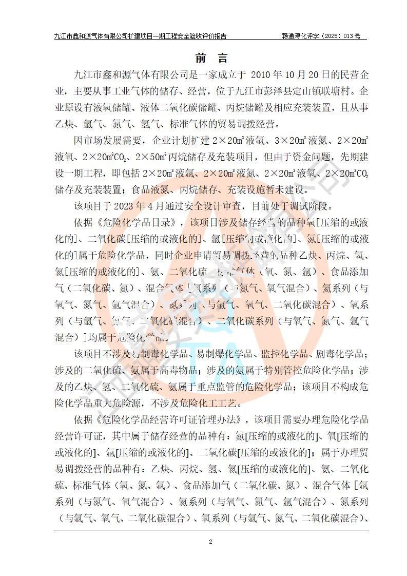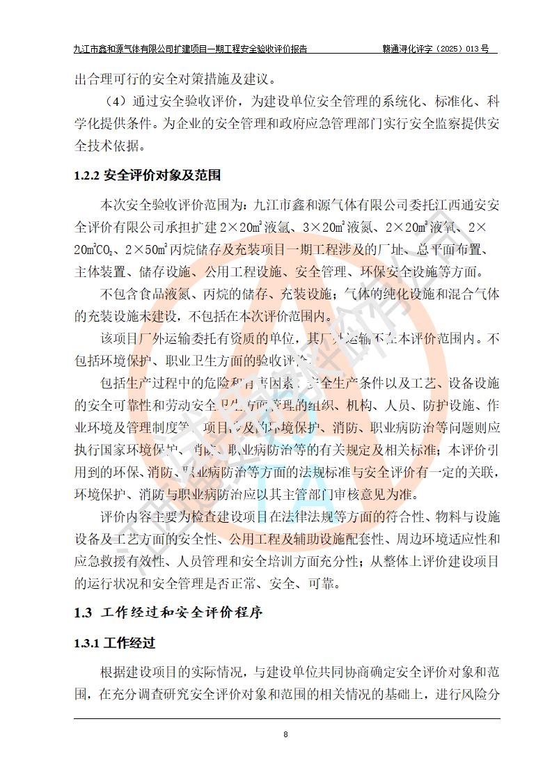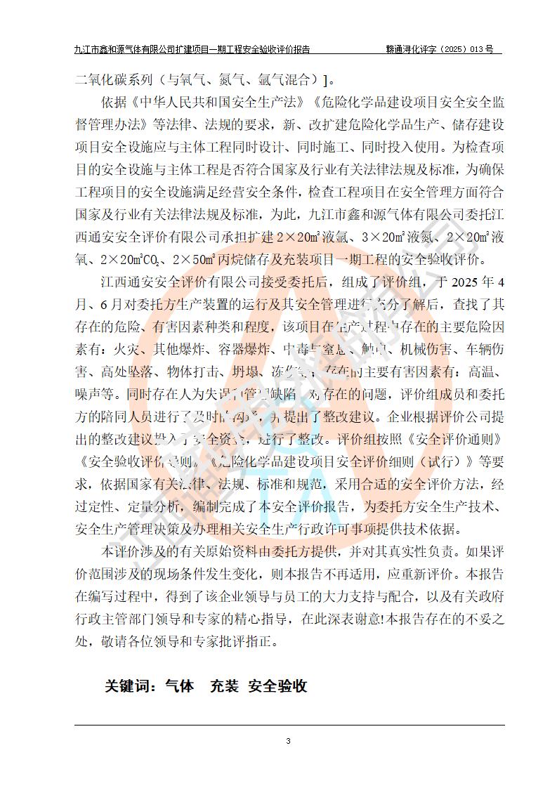 評(píng)價(jià)報(bào)告名稱 | 九江市鑫和源氣體有限公司擴(kuò)建2×20m3液氬、3×20m3液氮、2×20m3液氧、2×20m3CO2、2×50m3丙烷儲(chǔ)存及充裝項(xiàng)目一期工程安全驗(yàn)收評(píng)價(jià)報(bào)告 | |||||
