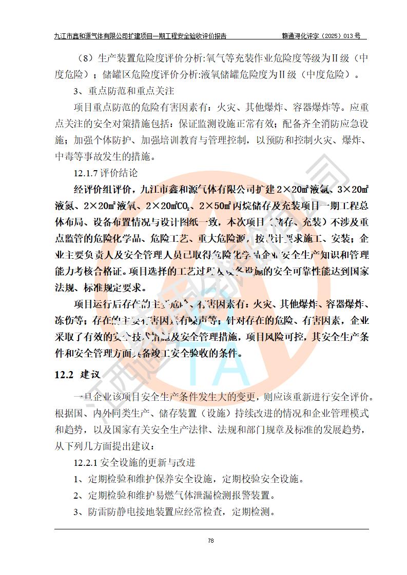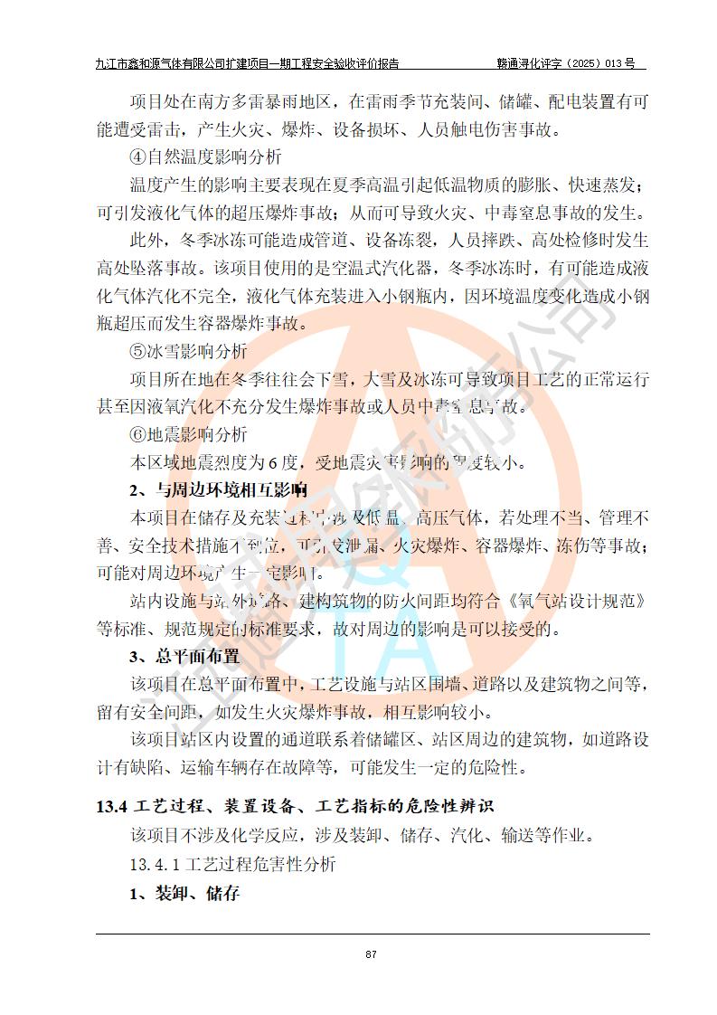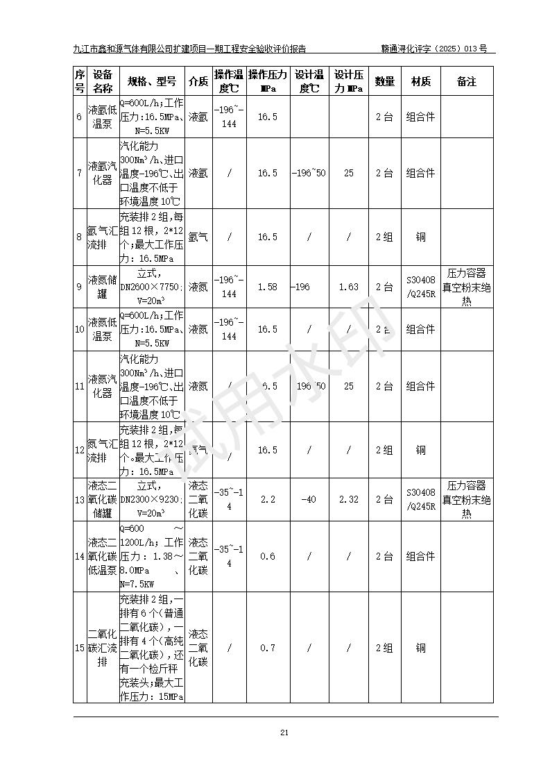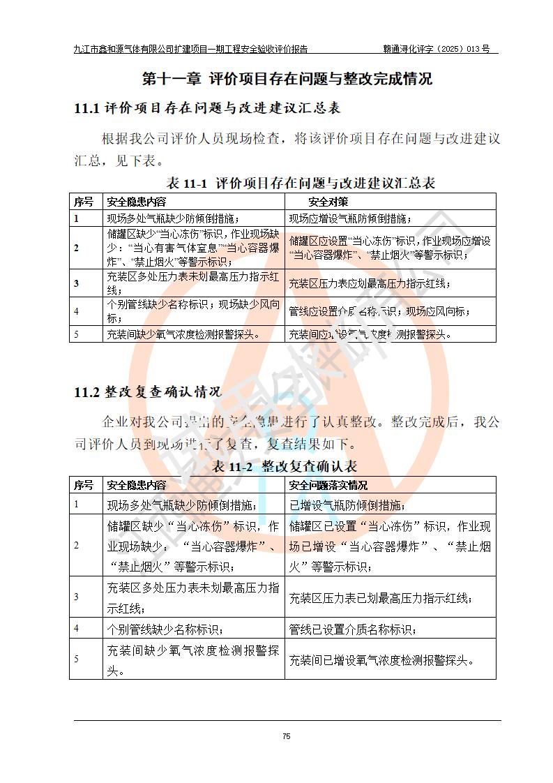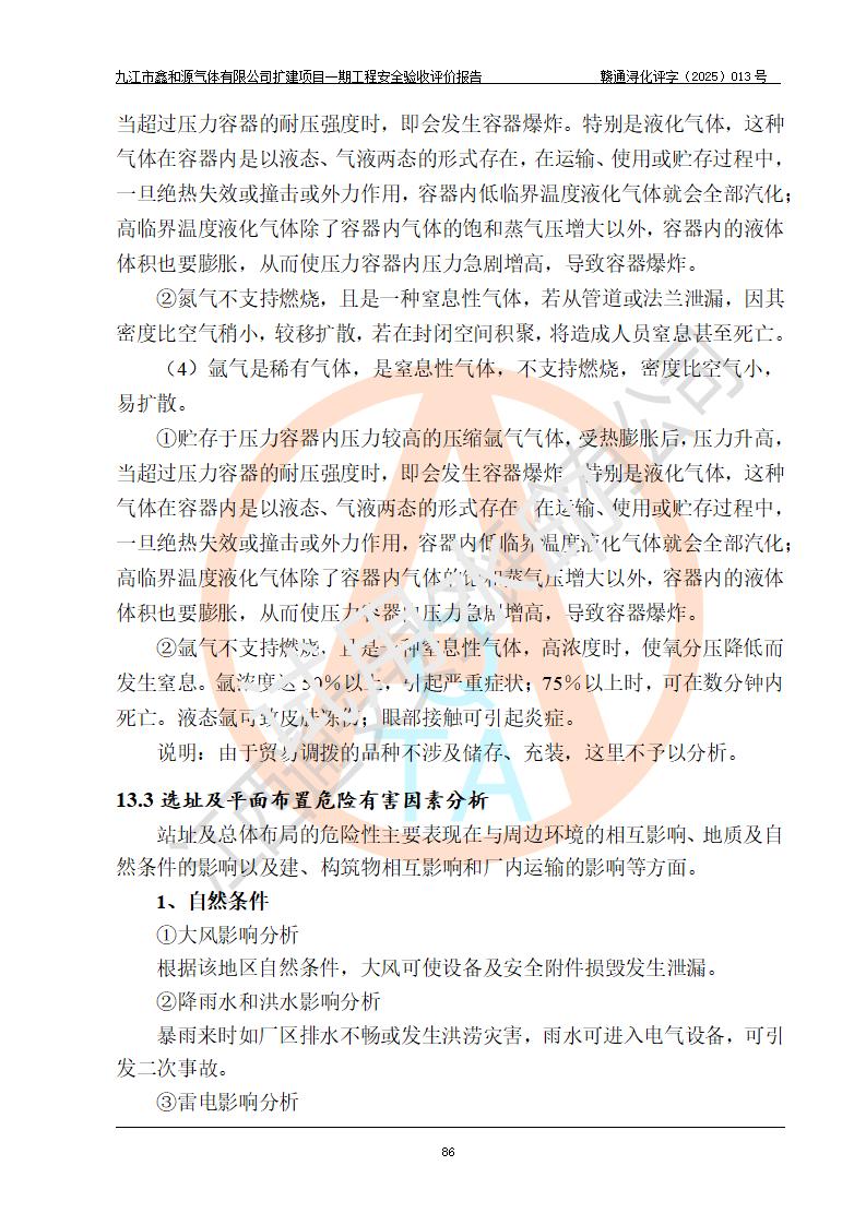 評(píng)價(jià)報(bào)告名稱 | 九江市鑫和源氣體有限公司擴(kuò)建2×20m3液氬、3×20m3液氮、2×20m3液氧、2×20m3CO2、2×50m3丙烷儲(chǔ)存及充裝項(xiàng)目一期工程安全驗(yàn)收評(píng)價(jià)報(bào)告 | |||||
