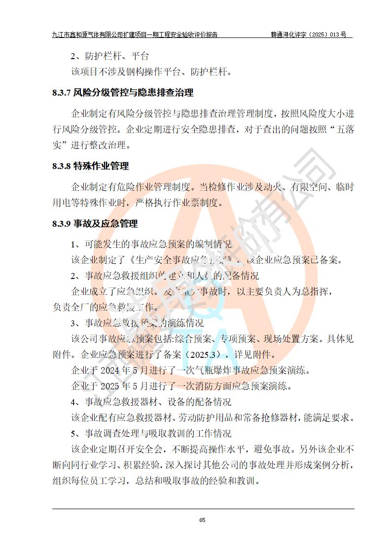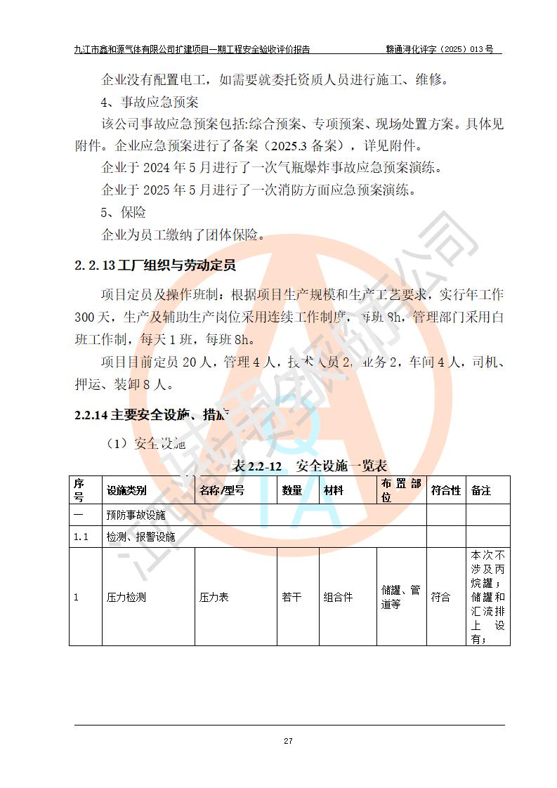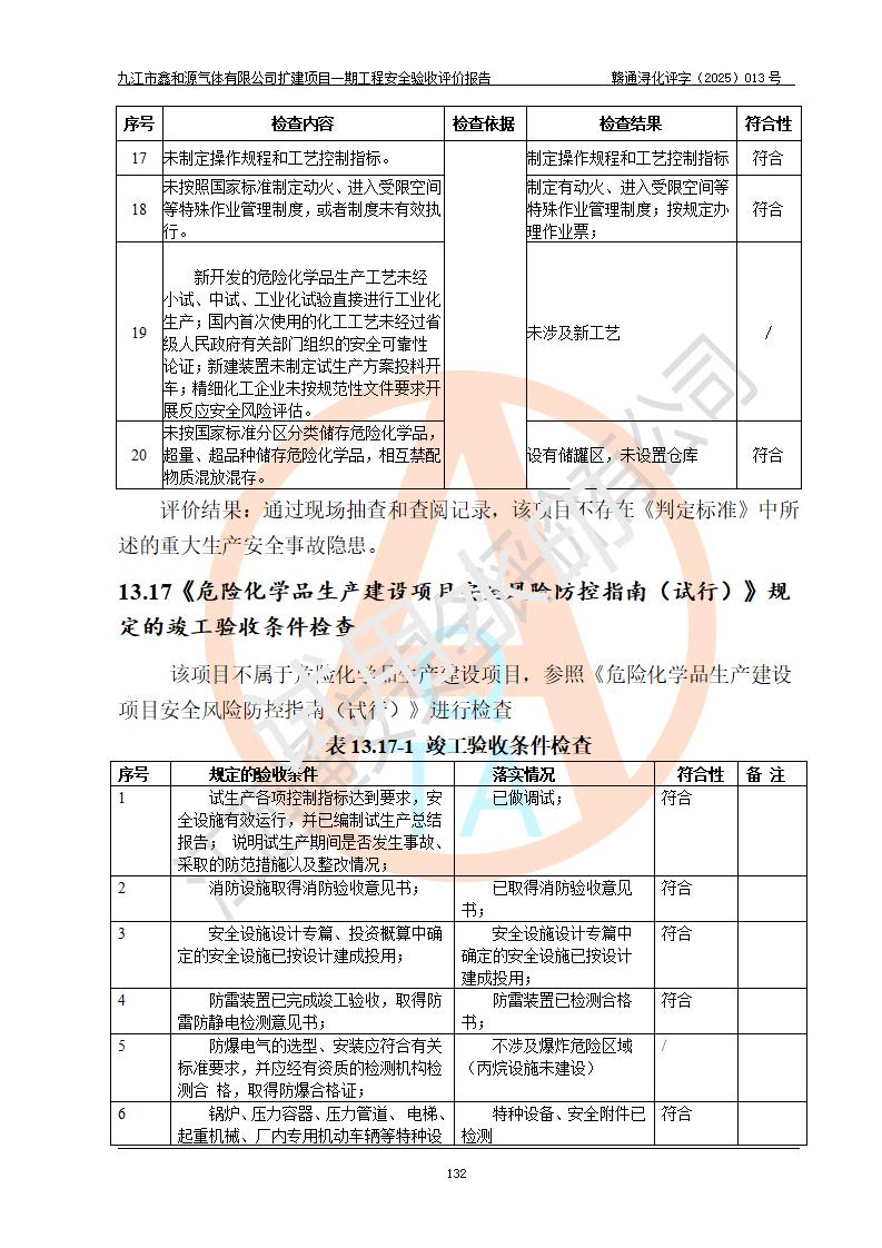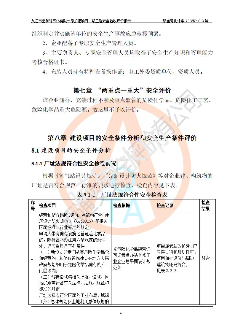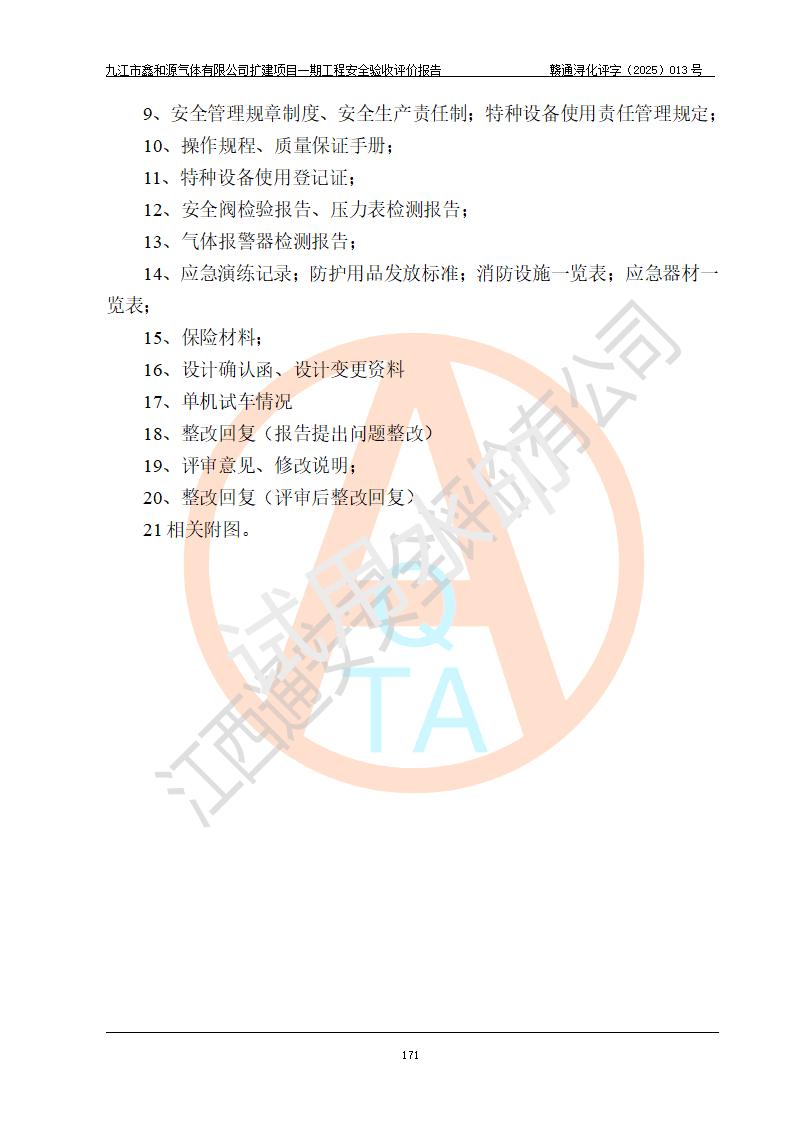 評(píng)價(jià)報(bào)告名稱 | 九江市鑫和源氣體有限公司擴(kuò)建2×20m3液氬、3×20m3液氮、2×20m3液氧、2×20m3CO2、2×50m3丙烷儲(chǔ)存及充裝項(xiàng)目一期工程安全驗(yàn)收評(píng)價(jià)報(bào)告 | |||||
