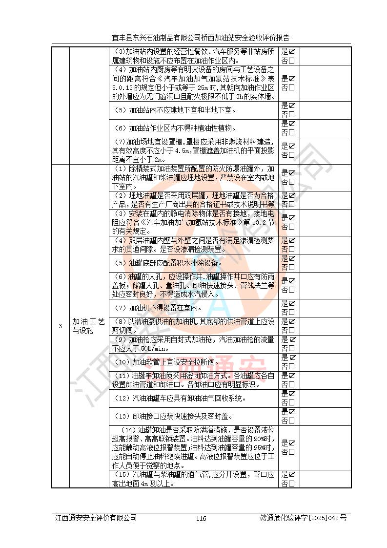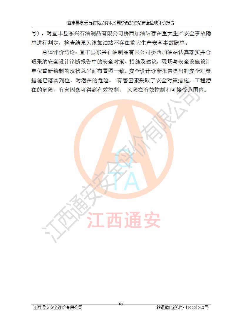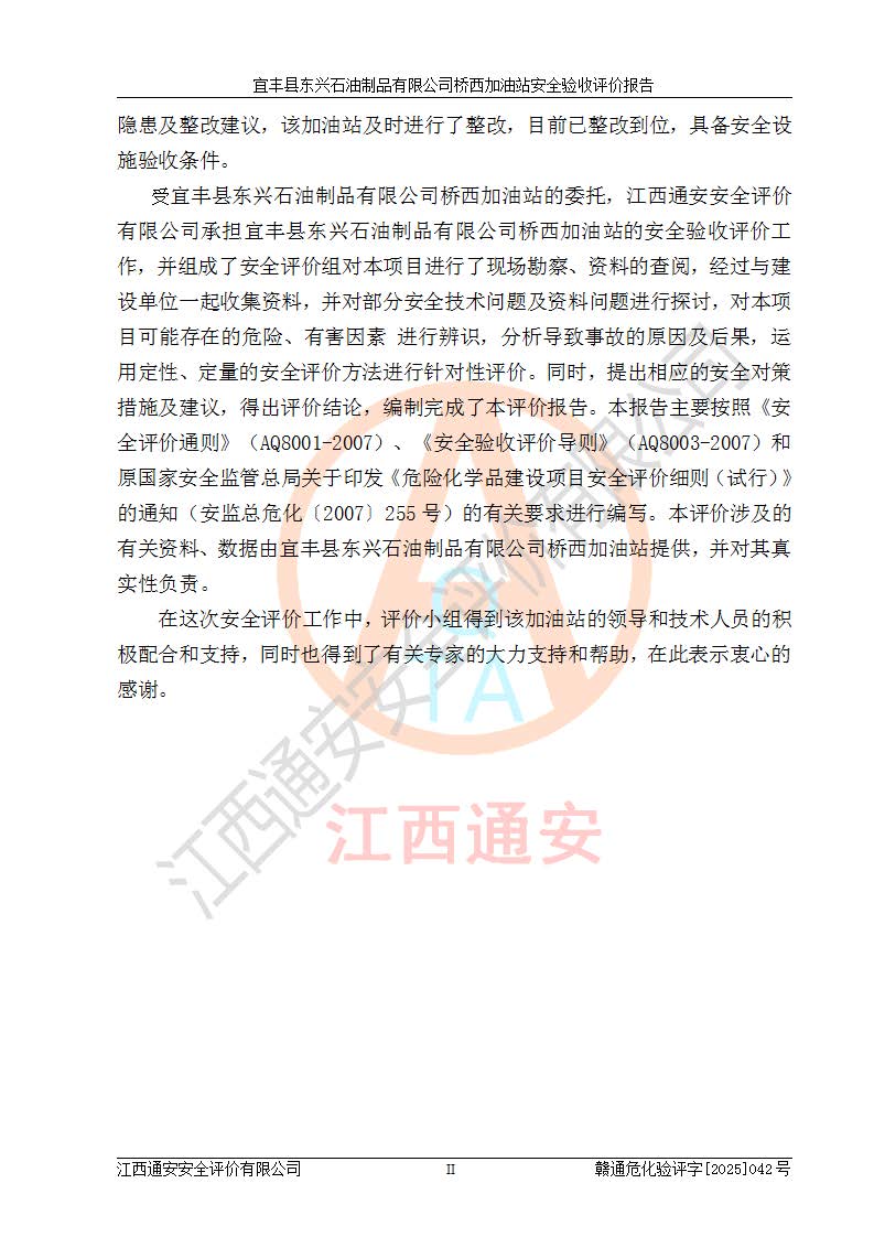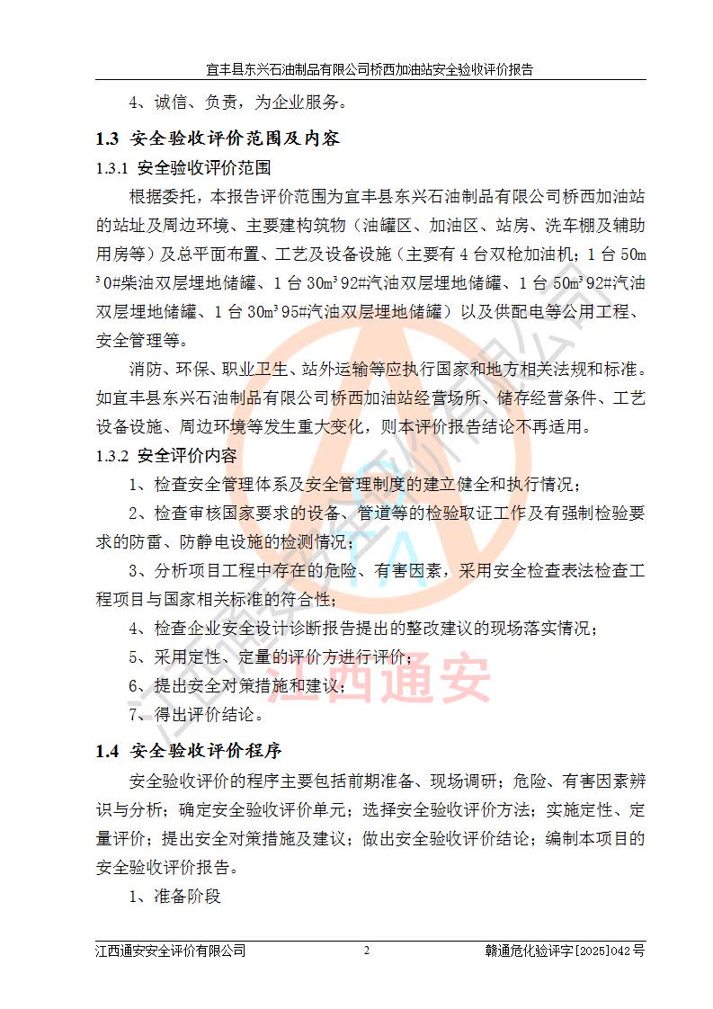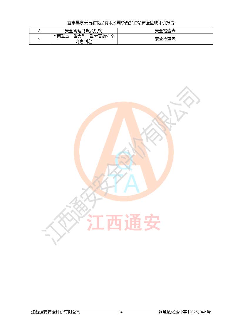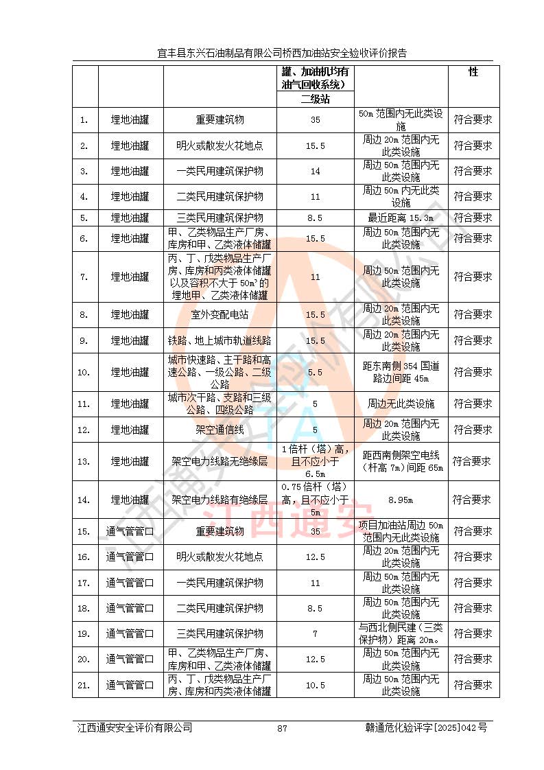 項(xiàng)目名稱(chēng) | 宜豐縣東興石油制品有限公司橋西加油站安全驗(yàn)收評(píng)價(jià) | ||||