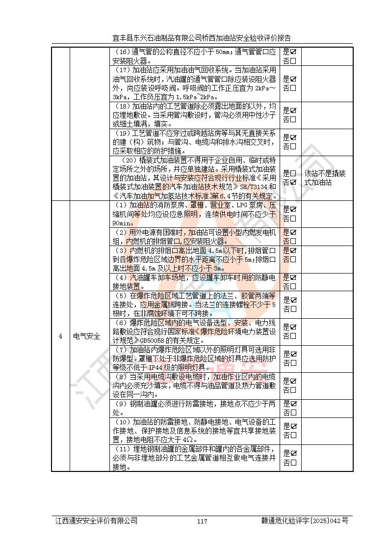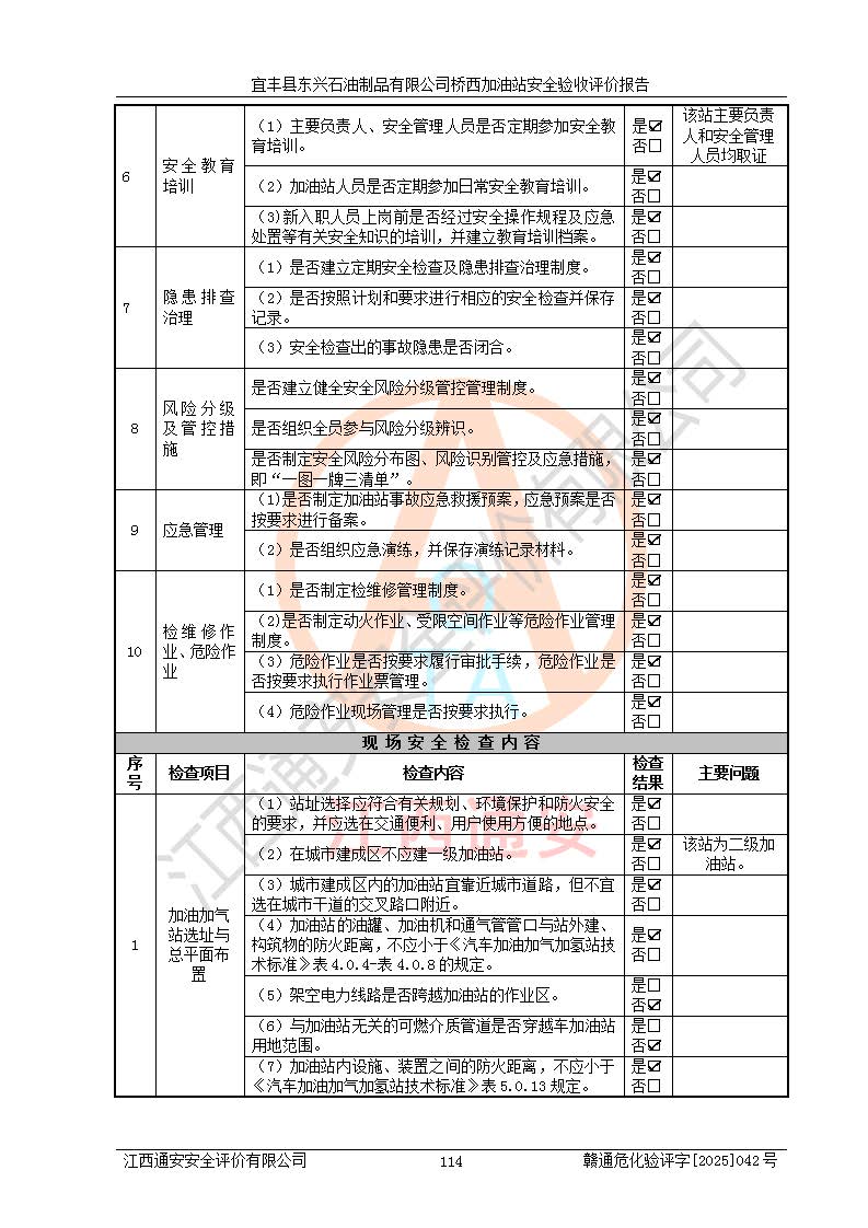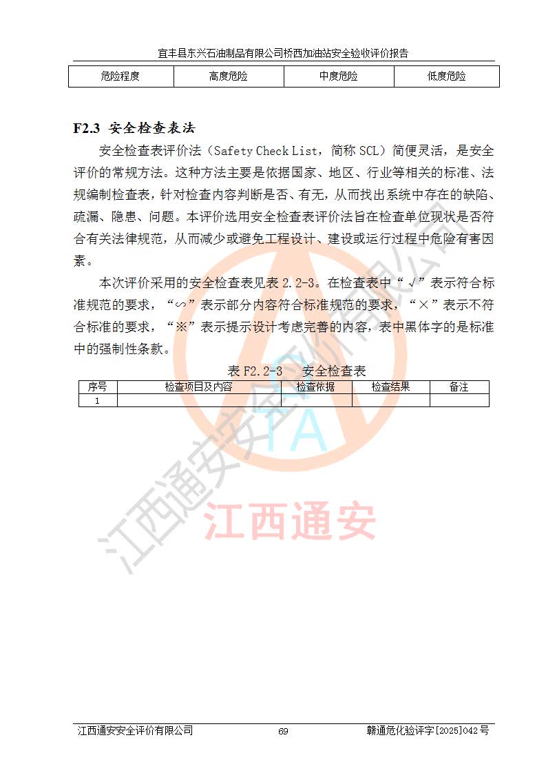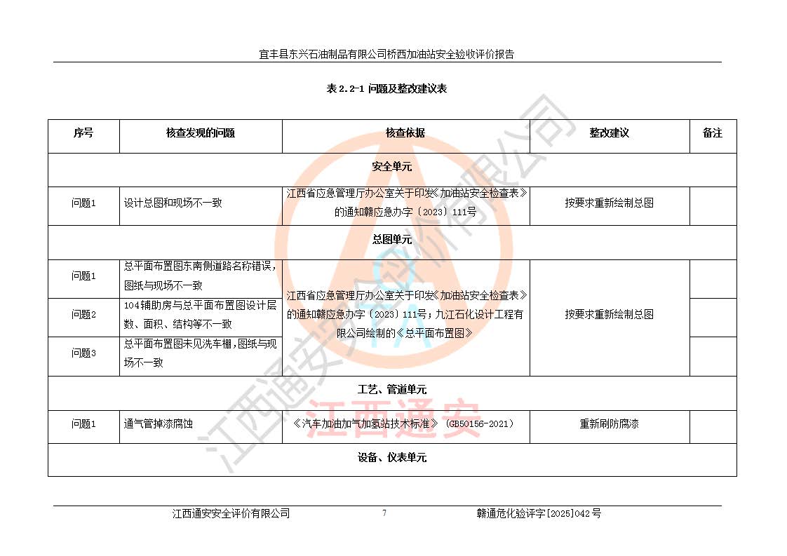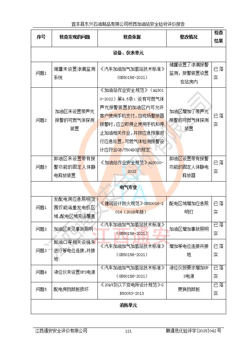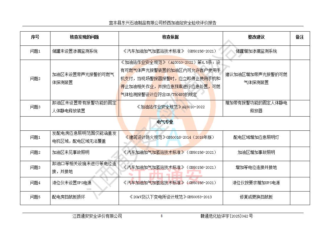 項(xiàng)目名稱(chēng) | 宜豐縣東興石油制品有限公司橋西加油站安全驗(yàn)收評(píng)價(jià) | ||||