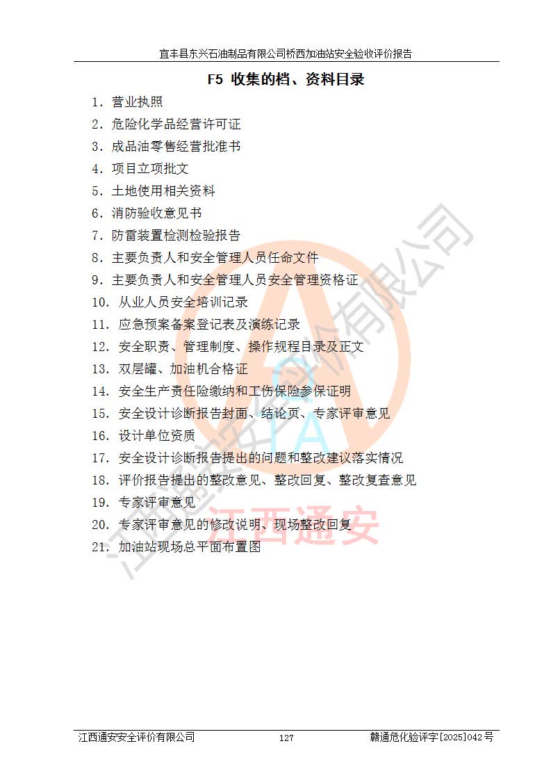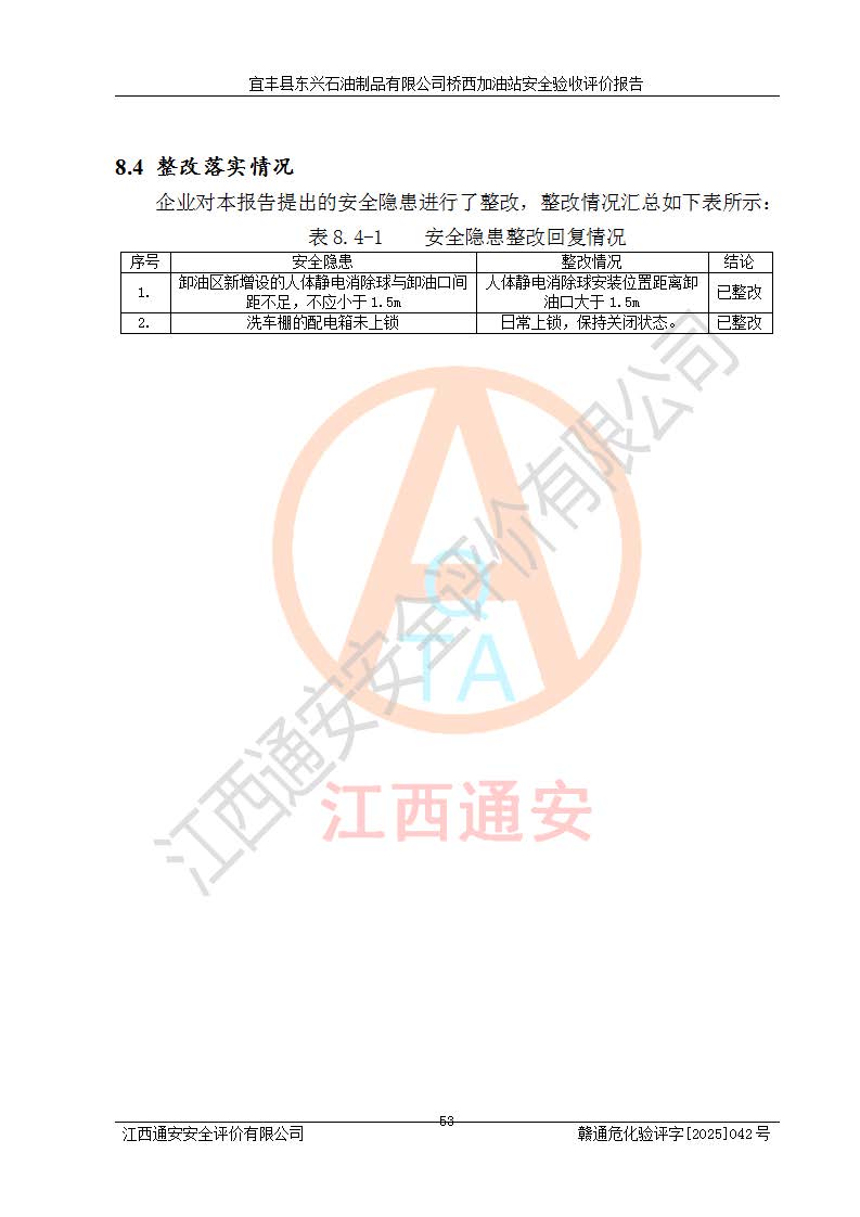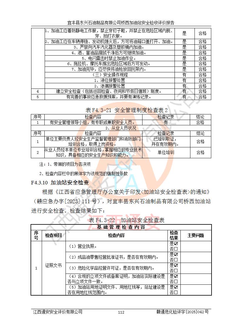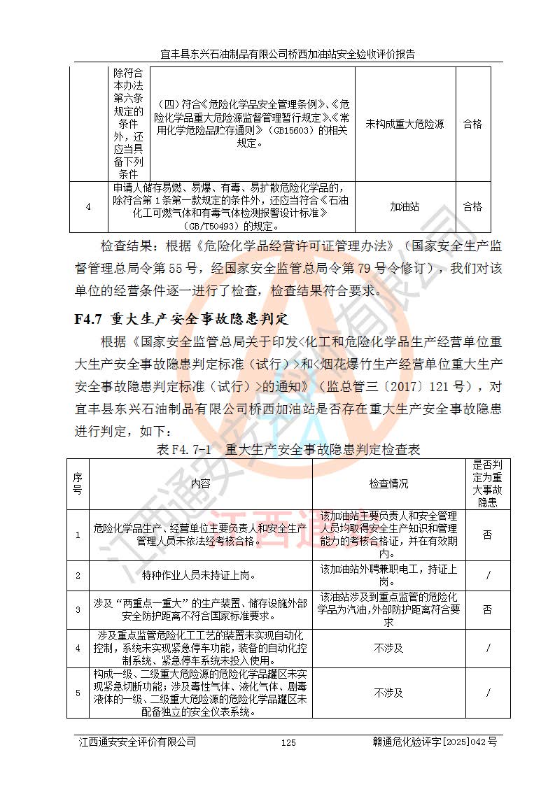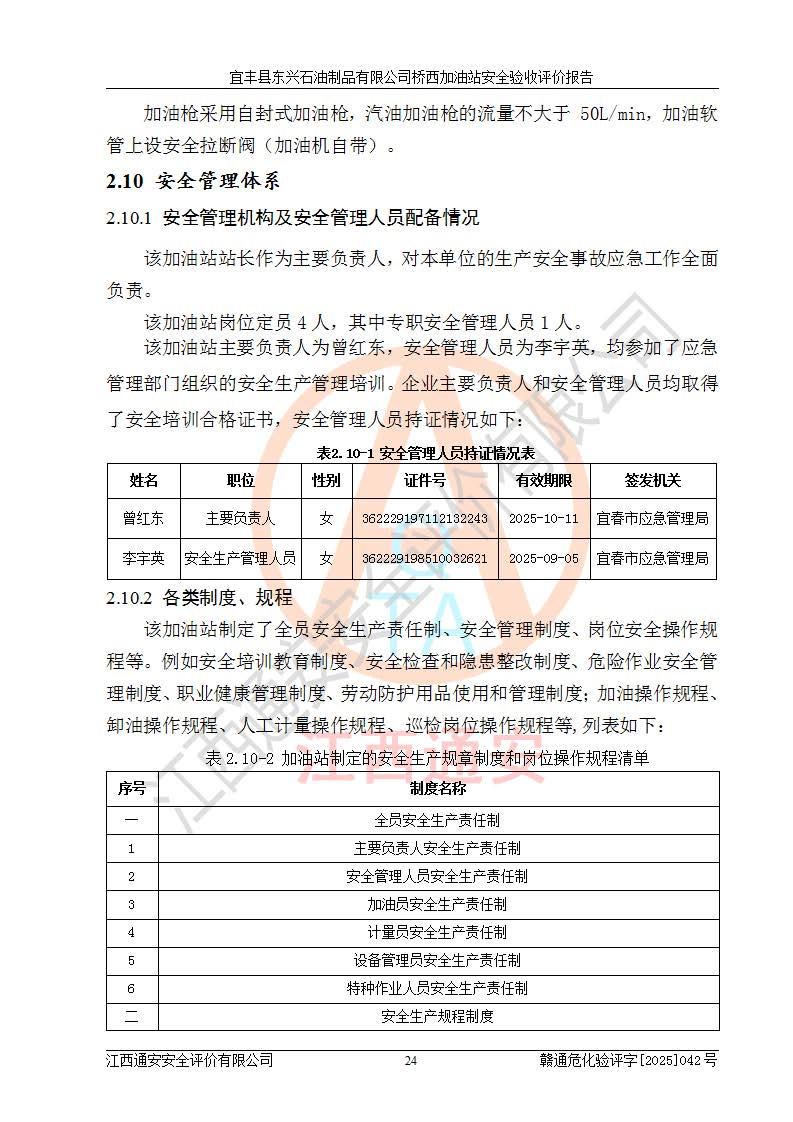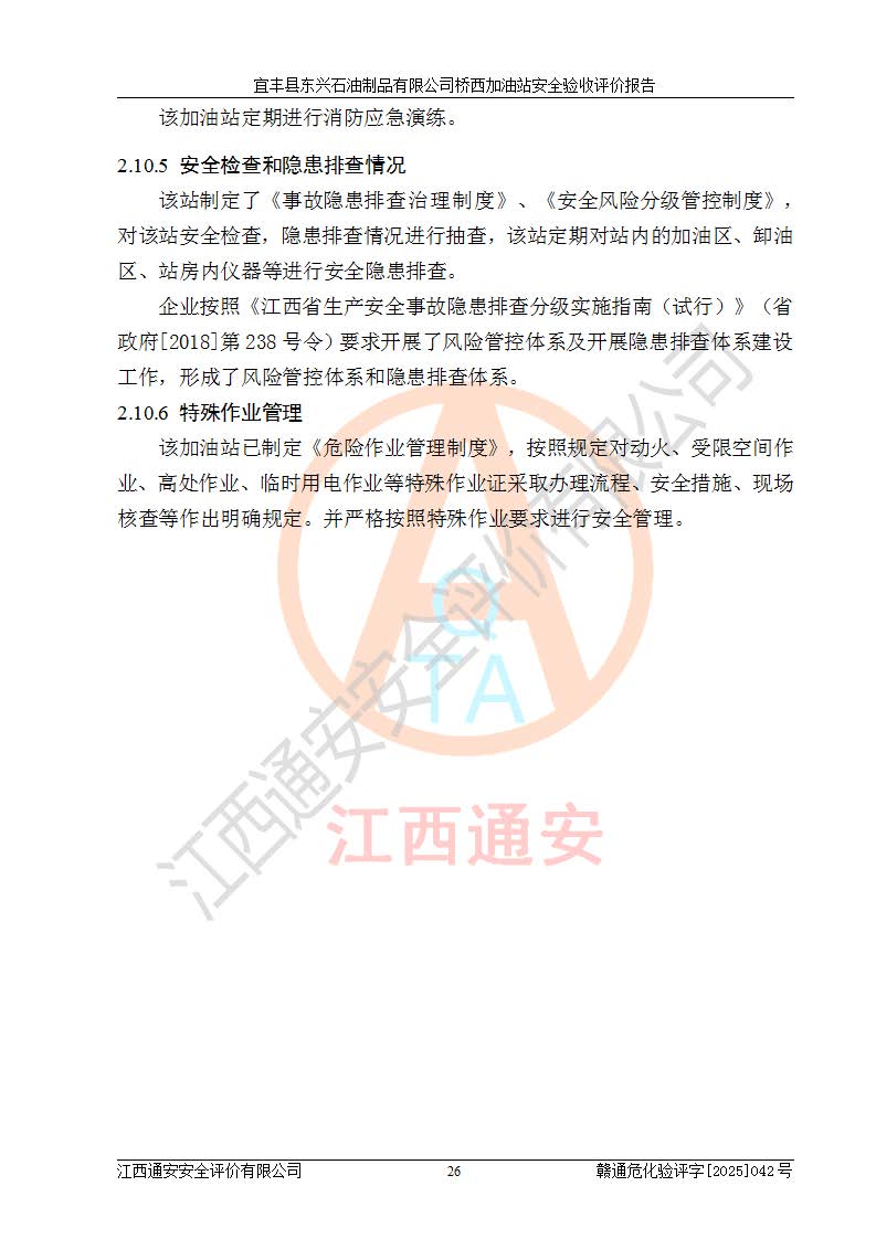 項(xiàng)目名稱(chēng) | 宜豐縣東興石油制品有限公司橋西加油站安全驗(yàn)收評(píng)價(jià) | ||||