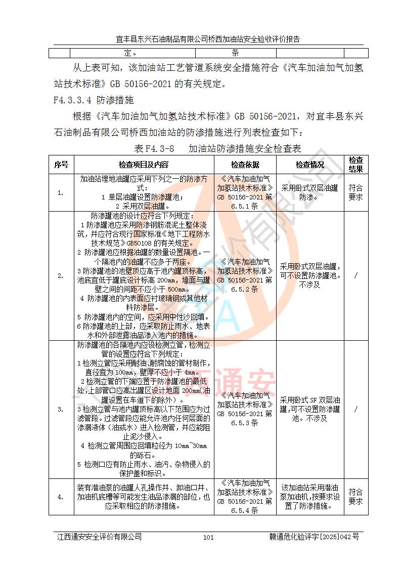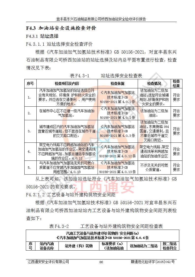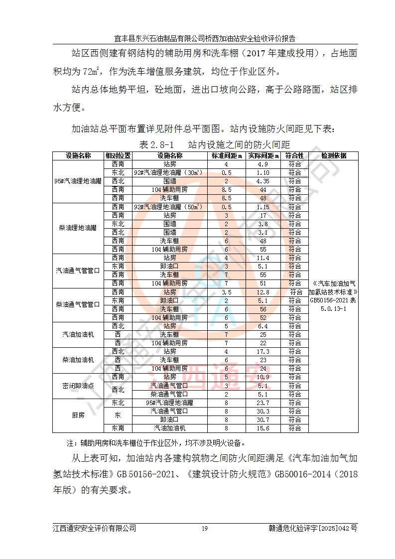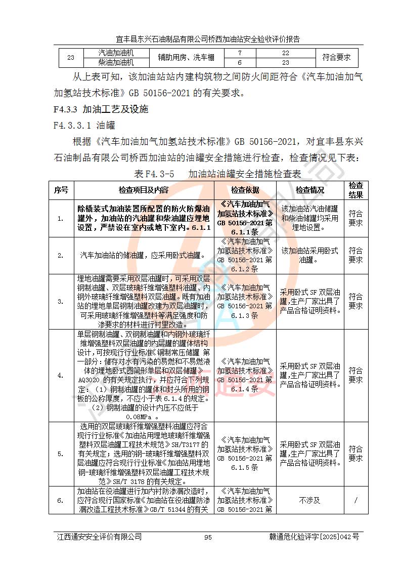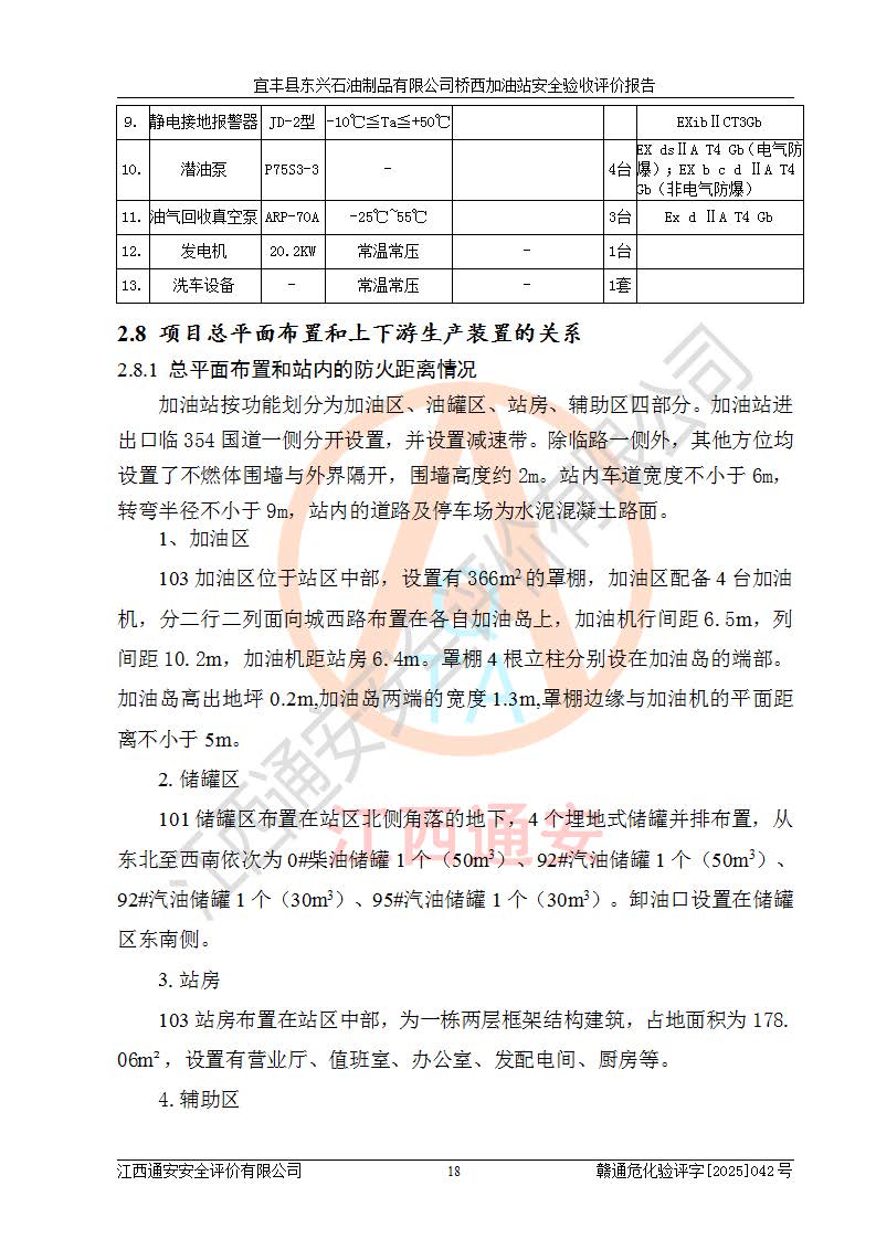 項(xiàng)目簡(jiǎn)介 | 宜豐縣東興石油制品有限公司橋西加油站(以下簡(jiǎn)稱(chēng)“該加油站”)成立于2001年10月23日,營(yíng)業(yè)場(chǎng)所位于宜春市宜豐縣橋西鄉(xiāng),法定**人為張凱軍。該加油站統(tǒng)一社會(huì)信用代碼為91360924731962916E,屬于有限責(zé)任制公司分公司(自然人投資或控股)。經(jīng)營(yíng)范圍:汽油、柴油、潤(rùn)滑油、煤油零售,煙、預(yù)包裝食品零售。 該加油站油罐區(qū)設(shè)有4個(gè)埋地臥式儲(chǔ)罐,其中1臺(tái)50m3的0#柴油儲(chǔ)罐,1臺(tái)50m3的92#汽油儲(chǔ)罐,1臺(tái)30m3的92#汽油儲(chǔ)罐,1臺(tái)30m3的95#汽油儲(chǔ)罐,柴油罐容積折半計(jì)入油罐總?cè)莘e,折算后總?cè)莘e為135m3,屬于二級(jí)加油站,站內(nèi)設(shè)有油氣回收系統(tǒng)。油罐采用直埋鋪設(shè),并設(shè)抗浮基礎(chǔ)。加油區(qū)設(shè)4個(gè)加油島,采用4臺(tái)雙槍加油機(jī)。該加油站于2023年2月9日經(jīng)宜豐縣應(yīng)急管理局核準(zhǔn),換發(fā)了新的《危險(xiǎn)化學(xué)品經(jīng)營(yíng)許可證》,證書(shū)編號(hào):贛宜安經(jīng)油字[2022]36092402號(hào),許可范圍:汽油、柴油。**期限為2022年9月12日至2025年9月11日。 根據(jù)《危險(xiǎn)化學(xué)品安全管理?xiàng)l例》(經(jīng)***令第344號(hào)發(fā)布,***令第591號(hào)、***令第645號(hào)修改),《危險(xiǎn)化學(xué)品經(jīng)營(yíng)許可證管理辦法》(2012年7月17日**安全生產(chǎn)監(jiān)督管理總局令第55號(hào)公布,自2012年9月1日起施行;根據(jù)2015年5月27日**安全生產(chǎn)監(jiān)督管理總局令第79號(hào)修正)等法律法規(guī)及文件要求,該加油站的危險(xiǎn)化學(xué)品經(jīng)營(yíng)許可證三年**期即將到期,需要重新進(jìn)行安全現(xiàn)狀評(píng)價(jià)。由于該加油站2013年建成投運(yùn),安全設(shè)施“三同時(shí)”資料不全,根據(jù)《江西省應(yīng)急管理廳辦公室關(guān)于規(guī)范危險(xiǎn)化學(xué)品經(jīng)營(yíng)許可工作的通知》(贛應(yīng)急辦字〔2025〕58號(hào))等要求,危險(xiǎn)化學(xué)品經(jīng)營(yíng)企業(yè)應(yīng)在一個(gè)延期換證周期內(nèi)進(jìn)行安全設(shè)計(jì)診斷,并根據(jù)診斷結(jié)論開(kāi)展安全設(shè)施設(shè)計(jì)整改,驗(yàn)收通過(guò)后方可延期換證。該加油站于2025年6月委托黑龍江龍維化學(xué)工程設(shè)計(jì)有限公司(具有化工石化醫(yī)藥行業(yè)專(zhuān)業(yè)**工程設(shè)計(jì)資質(zhì))編制了《宜豐縣東興石油制品有限公司橋西加油站安全設(shè)計(jì)診斷報(bào)告》,并通過(guò)了專(zhuān)家評(píng)審。根據(jù)該安全設(shè)計(jì)診斷報(bào)告提出的安全隱患及整改建議,該加油站及時(shí)進(jìn)行了整改,目前已整改到位,具備安全設(shè)施驗(yàn)收條件。