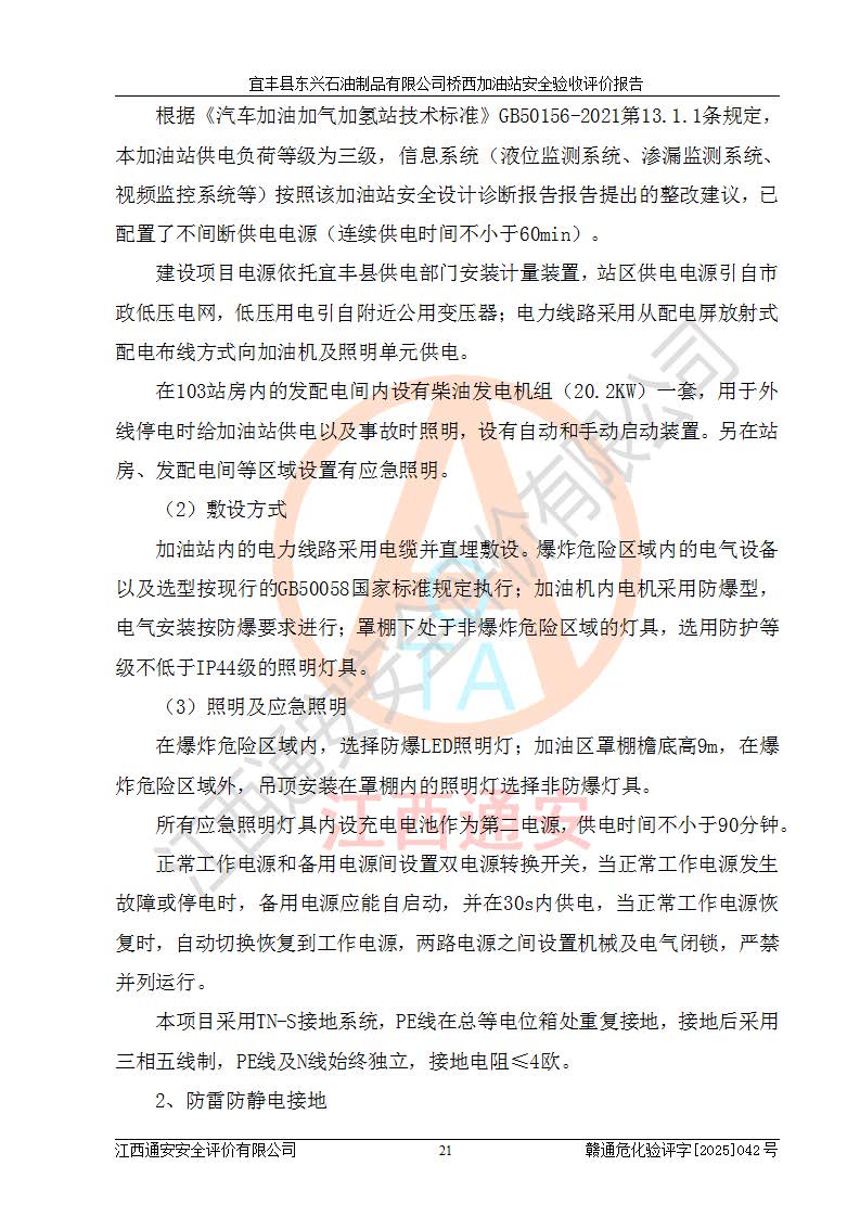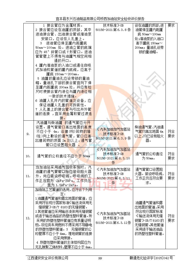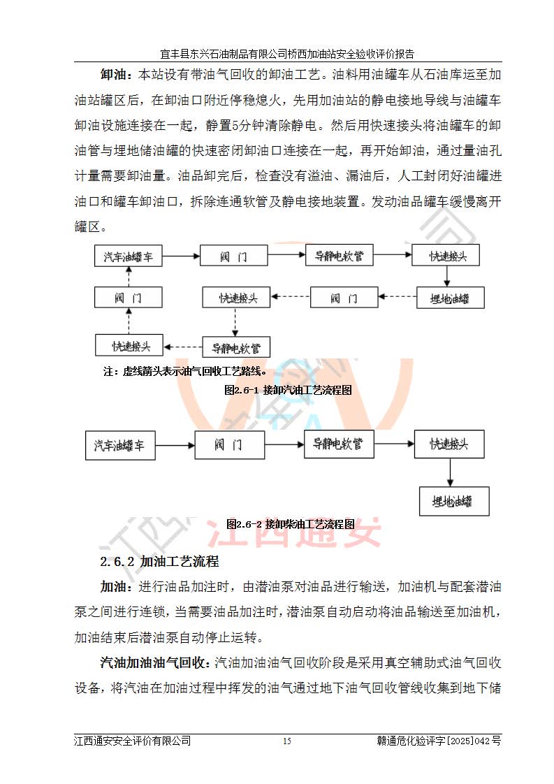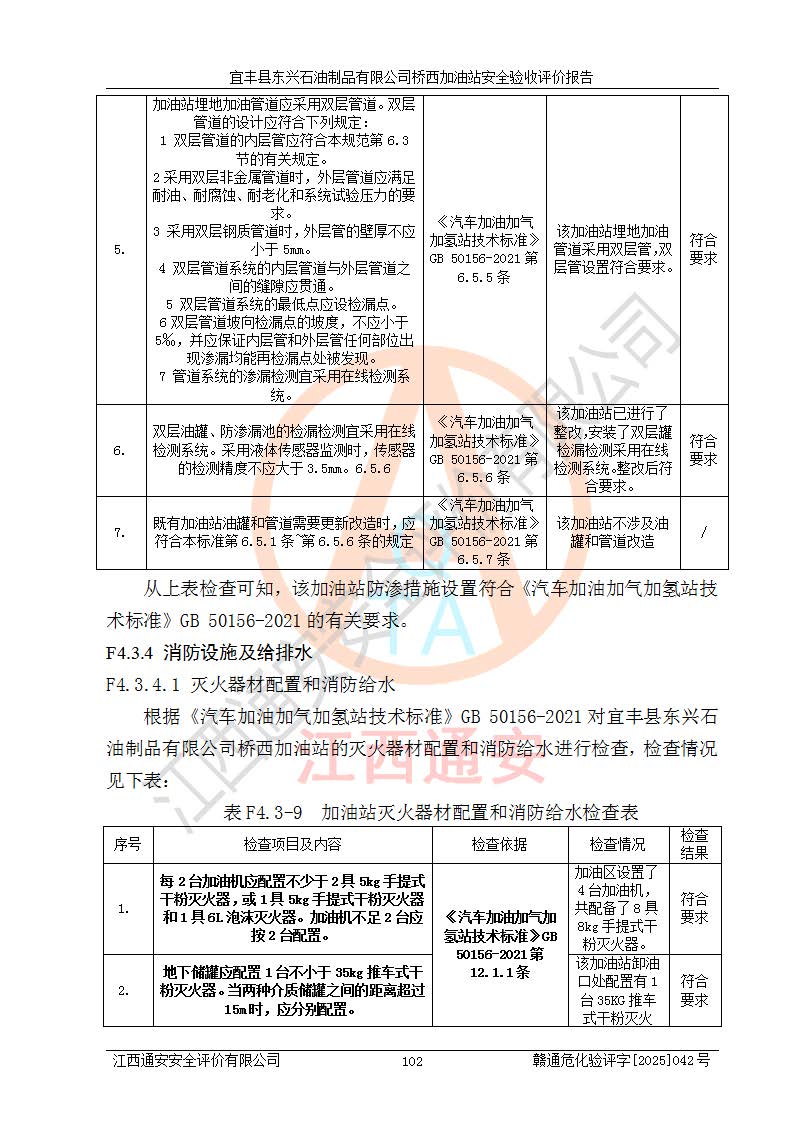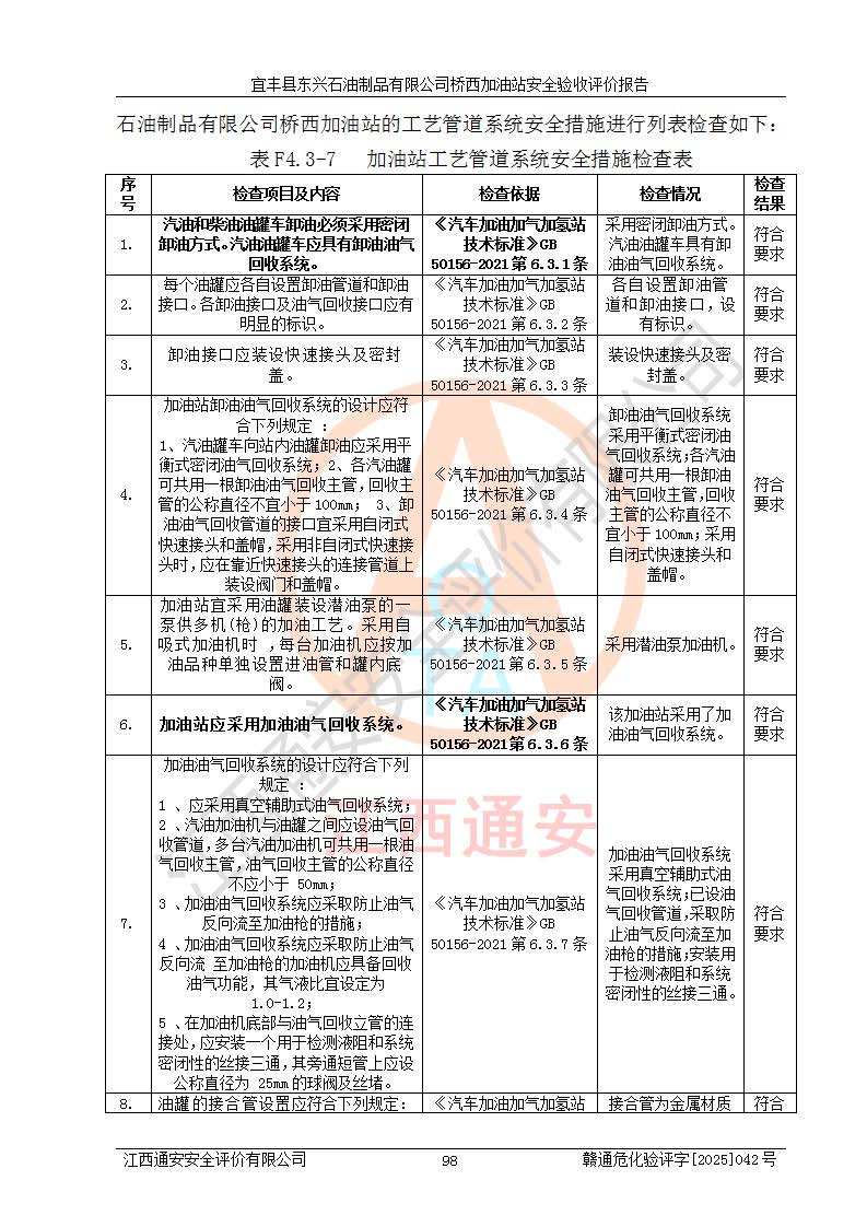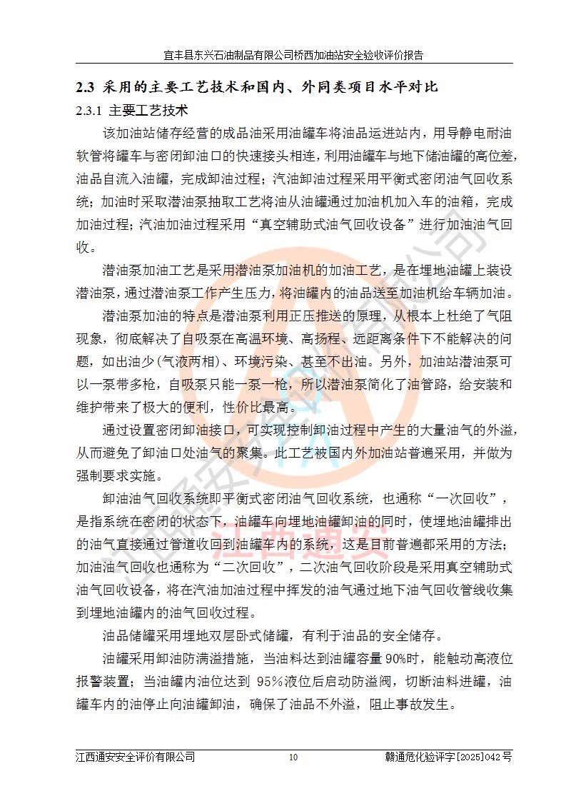 項(xiàng)目簡(jiǎn)介 | 宜豐縣東興石油制品有限公司橋西加油站(以下簡(jiǎn)稱(chēng)“該加油站”)成立于2001年10月23日,營(yíng)業(yè)場(chǎng)所位于宜春市宜豐縣橋西鄉(xiāng),法定**人為張凱軍。該加油站統(tǒng)一社會(huì)信用代碼為91360924731962916E,屬于有限責(zé)任制公司分公司(自然人投資或控股)。經(jīng)營(yíng)范圍:汽油、柴油、潤(rùn)滑油、煤油零售,煙、預(yù)包裝食品零售。 該加油站油罐區(qū)設(shè)有4個(gè)埋地臥式儲(chǔ)罐,其中1臺(tái)50m3的0#柴油儲(chǔ)罐,1臺(tái)50m3的92#汽油儲(chǔ)罐,1臺(tái)30m3的92#汽油儲(chǔ)罐,1臺(tái)30m3的95#汽油儲(chǔ)罐,柴油罐容積折半計(jì)入油罐總?cè)莘e,折算后總?cè)莘e為135m3,屬于二級(jí)加油站,站內(nèi)設(shè)有油氣回收系統(tǒng)。油罐采用直埋鋪設(shè),并設(shè)抗浮基礎(chǔ)。加油區(qū)設(shè)4個(gè)加油島,采用4臺(tái)雙槍加油機(jī)。該加油站于2023年2月9日經(jīng)宜豐縣應(yīng)急管理局核準(zhǔn),換發(fā)了新的《危險(xiǎn)化學(xué)品經(jīng)營(yíng)許可證》,證書(shū)編號(hào):贛宜安經(jīng)油字[2022]36092402號(hào),許可范圍:汽油、柴油。**期限為2022年9月12日至2025年9月11日。 根據(jù)《危險(xiǎn)化學(xué)品安全管理?xiàng)l例》(經(jīng)***令第344號(hào)發(fā)布,***令第591號(hào)、***令第645號(hào)修改),《危險(xiǎn)化學(xué)品經(jīng)營(yíng)許可證管理辦法》(2012年7月17日**安全生產(chǎn)監(jiān)督管理總局令第55號(hào)公布,自2012年9月1日起施行;根據(jù)2015年5月27日**安全生產(chǎn)監(jiān)督管理總局令第79號(hào)修正)等法律法規(guī)及文件要求,該加油站的危險(xiǎn)化學(xué)品經(jīng)營(yíng)許可證三年**期即將到期,需要重新進(jìn)行安全現(xiàn)狀評(píng)價(jià)。由于該加油站2013年建成投運(yùn),安全設(shè)施“三同時(shí)”資料不全,根據(jù)《江西省應(yīng)急管理廳辦公室關(guān)于規(guī)范危險(xiǎn)化學(xué)品經(jīng)營(yíng)許可工作的通知》(贛應(yīng)急辦字〔2025〕58號(hào))等要求,危險(xiǎn)化學(xué)品經(jīng)營(yíng)企業(yè)應(yīng)在一個(gè)延期換證周期內(nèi)進(jìn)行安全設(shè)計(jì)診斷,并根據(jù)診斷結(jié)論開(kāi)展安全設(shè)施設(shè)計(jì)整改,驗(yàn)收通過(guò)后方可延期換證。該加油站于2025年6月委托黑龍江龍維化學(xué)工程設(shè)計(jì)有限公司(具有化工石化醫(yī)藥行業(yè)專(zhuān)業(yè)**工程設(shè)計(jì)資質(zhì))編制了《宜豐縣東興石油制品有限公司橋西加油站安全設(shè)計(jì)診斷報(bào)告》,并通過(guò)了專(zhuān)家評(píng)審。根據(jù)該安全設(shè)計(jì)診斷報(bào)告提出的安全隱患及整改建議,該加油站及時(shí)進(jìn)行了整改,目前已整改到位,具備安全設(shè)施驗(yàn)收條件。