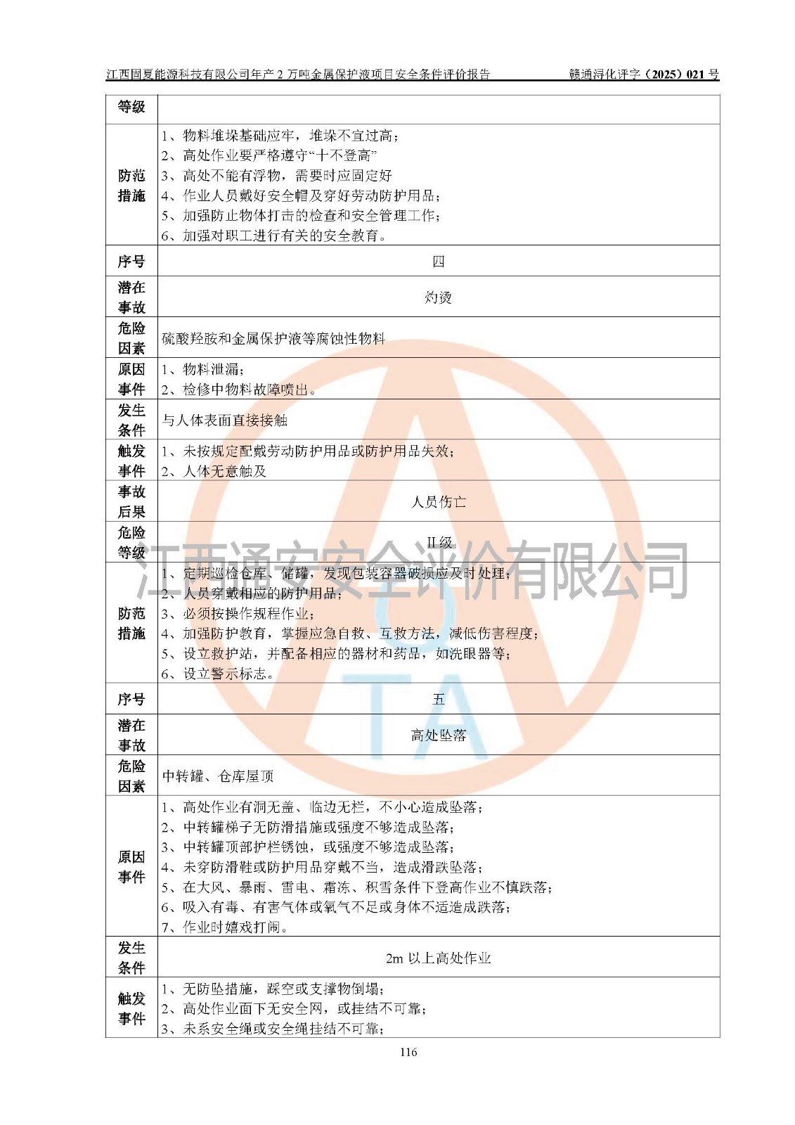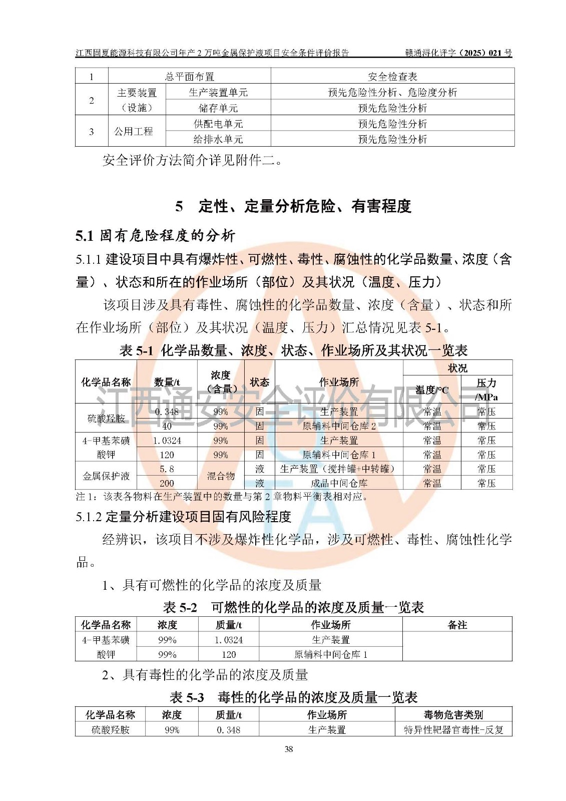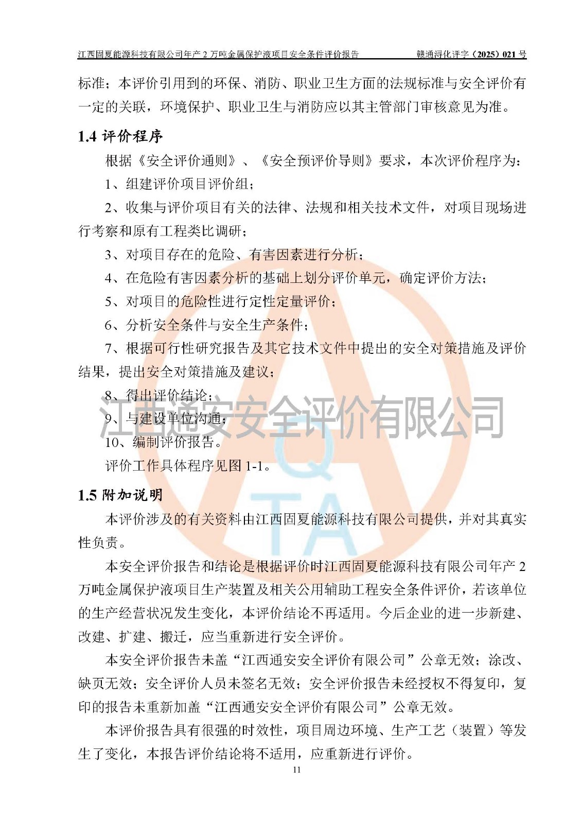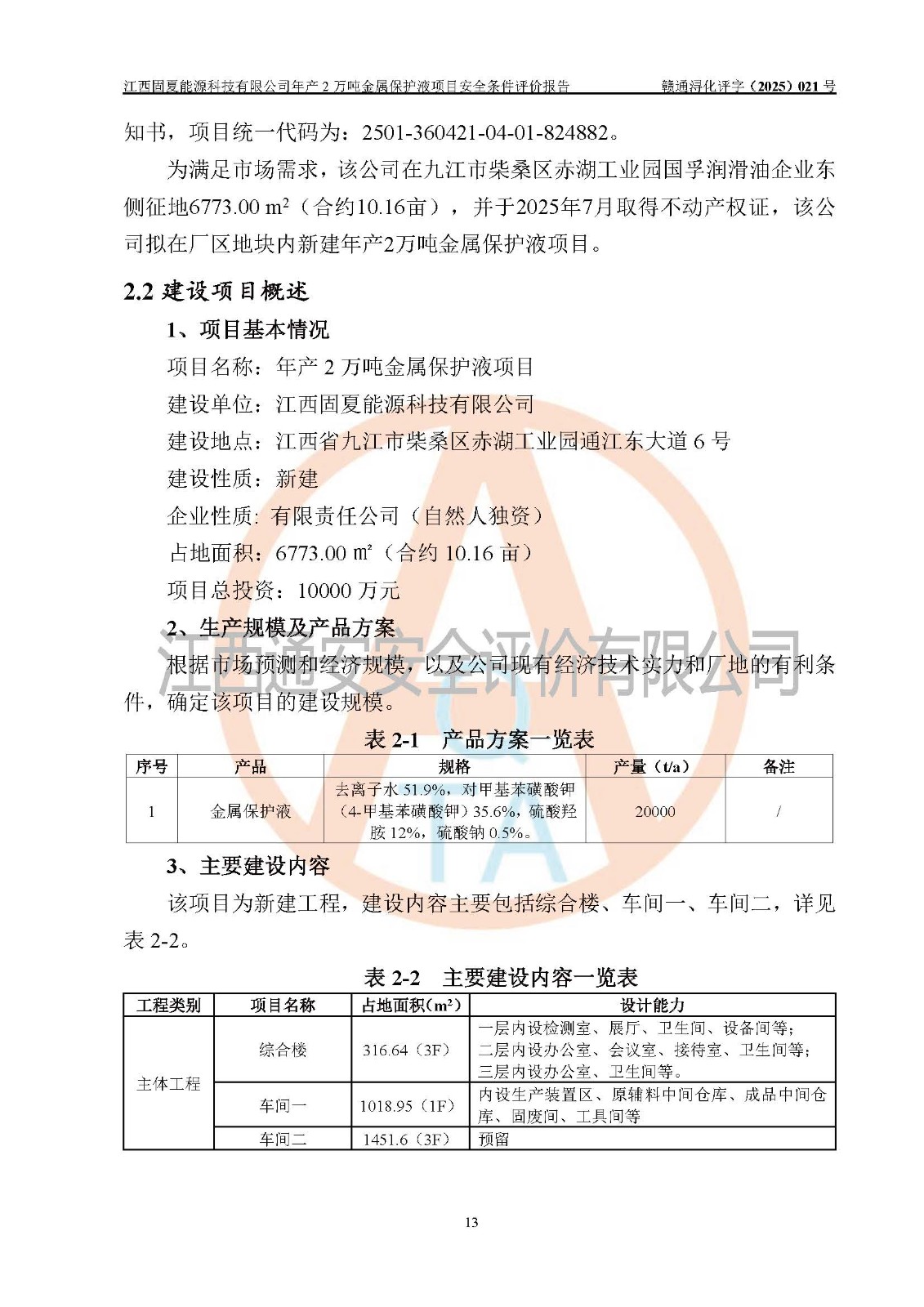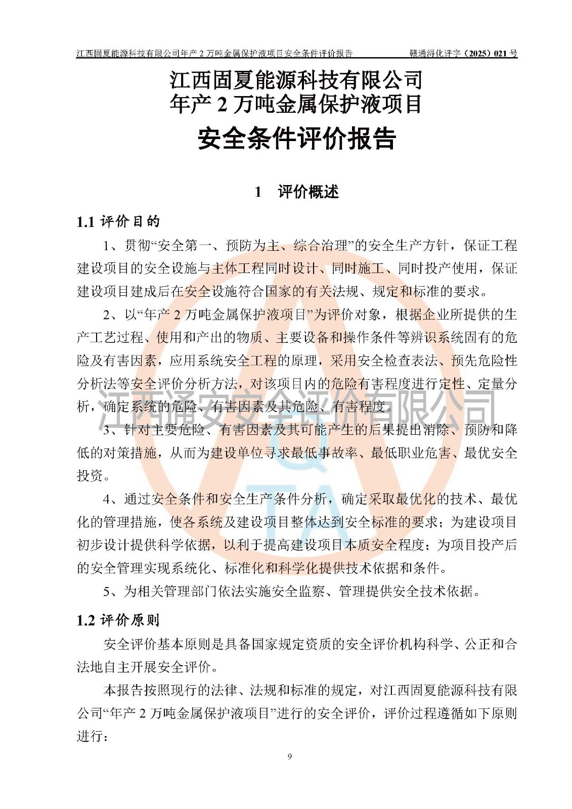 評價報告名稱 | 江西固夏能源科技有限公司年產(chǎn)2萬噸金屬保護液項目安全條件評價報告 | |||