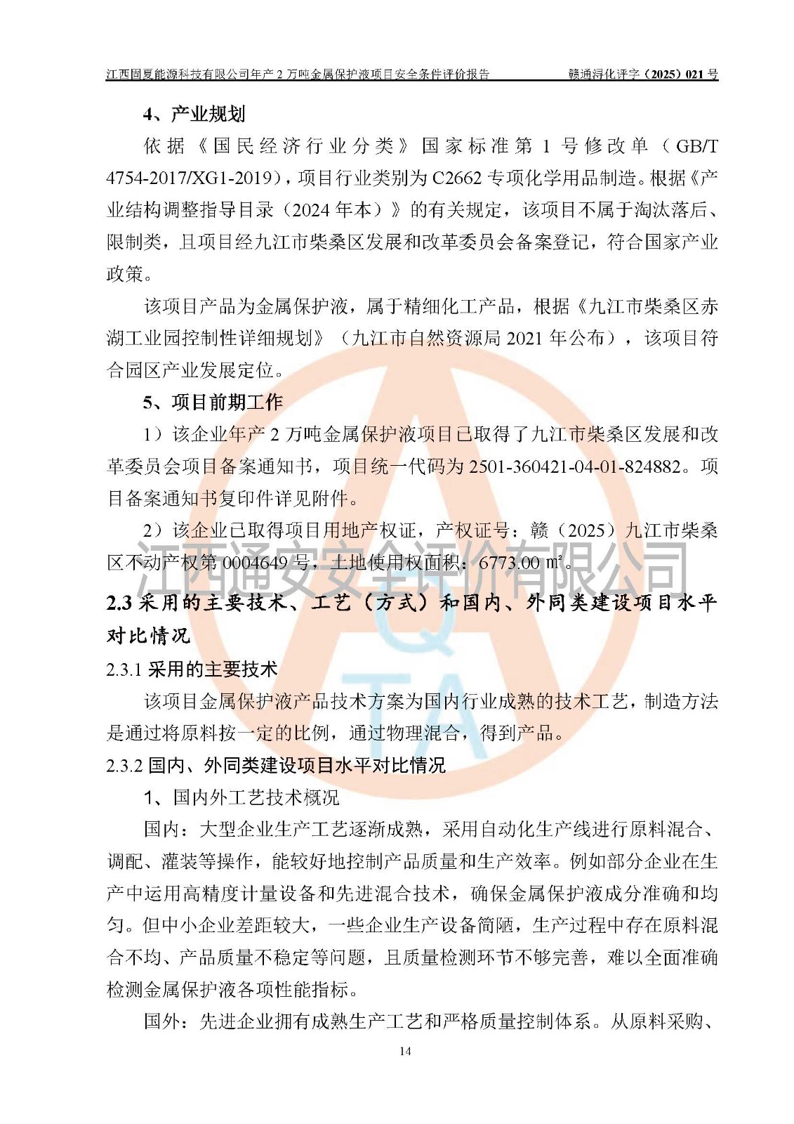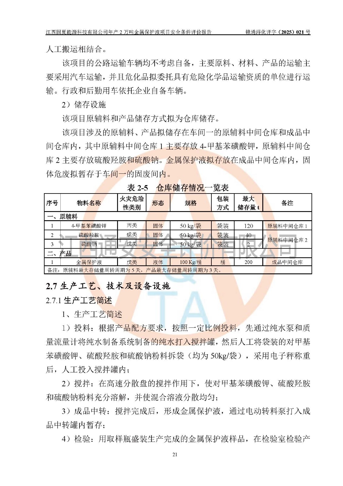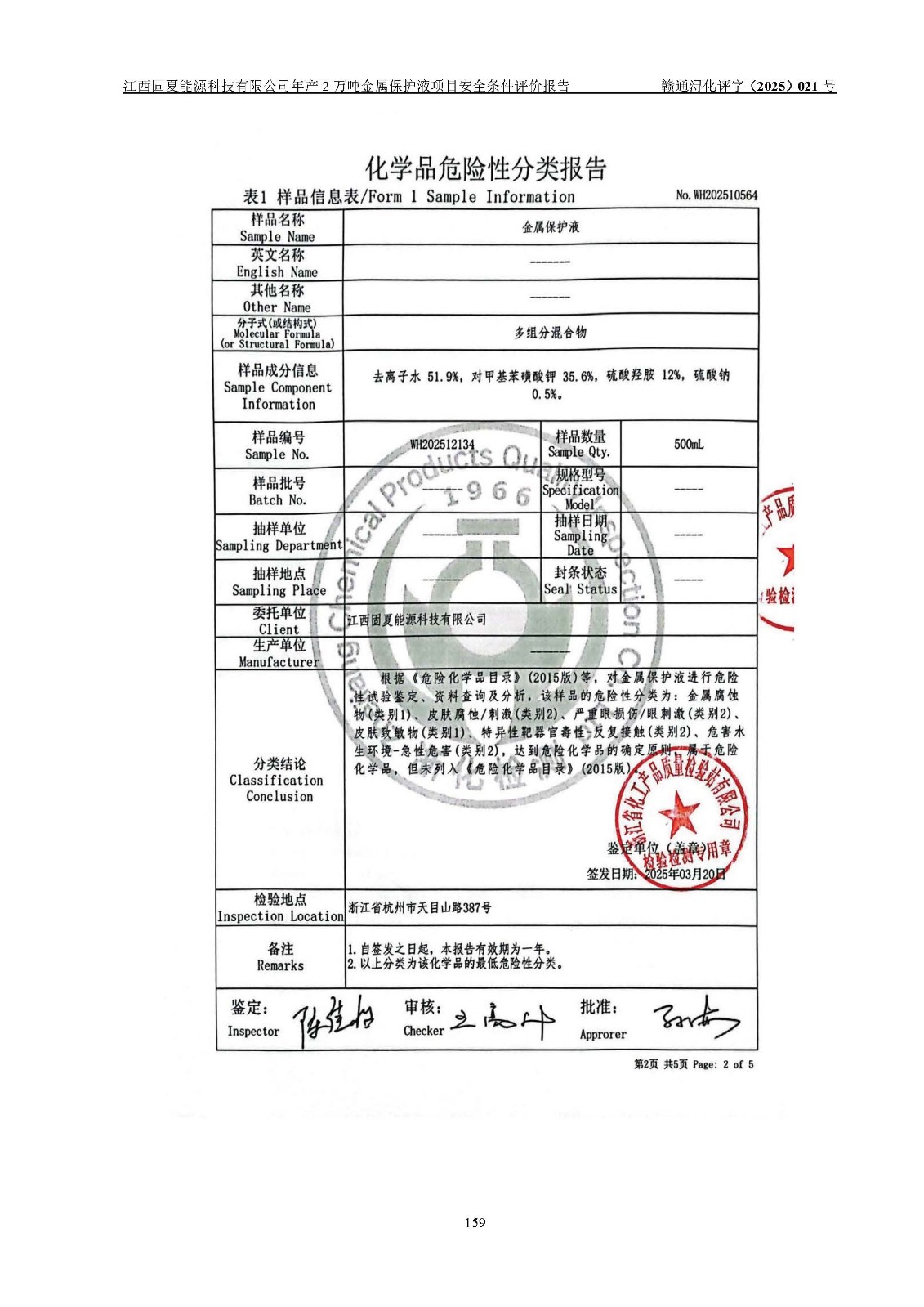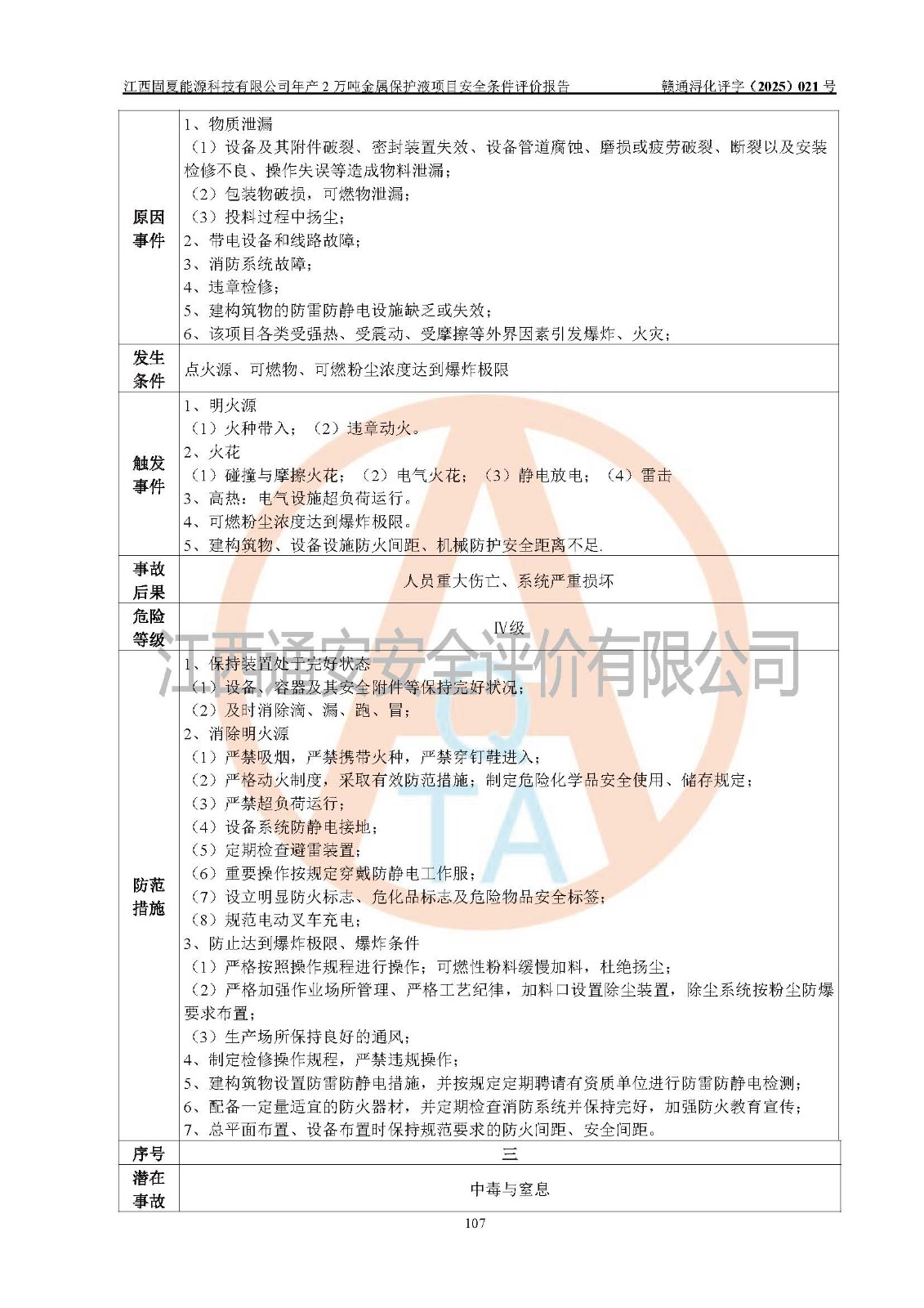 評價報告名稱 | 江西固夏能源科技有限公司年產(chǎn)2萬噸金屬保護液項目安全條件評價報告 | |||
