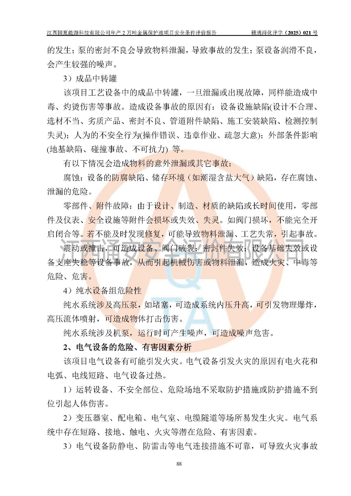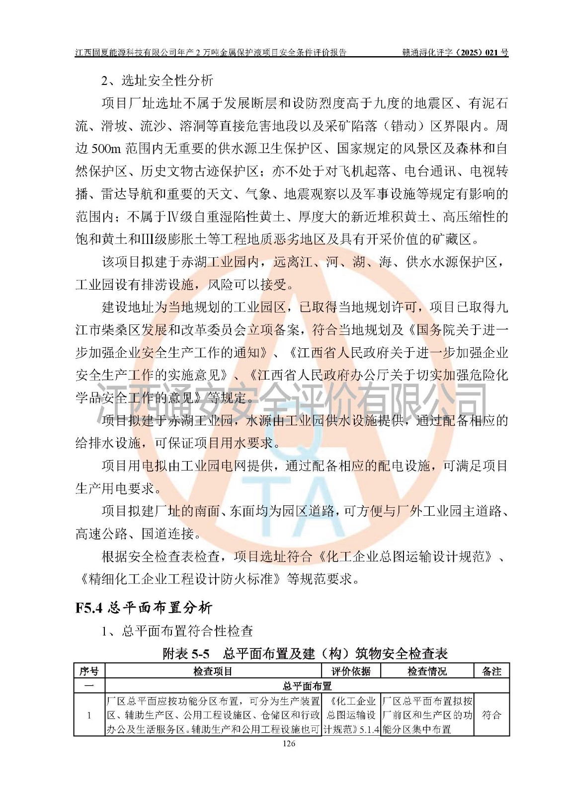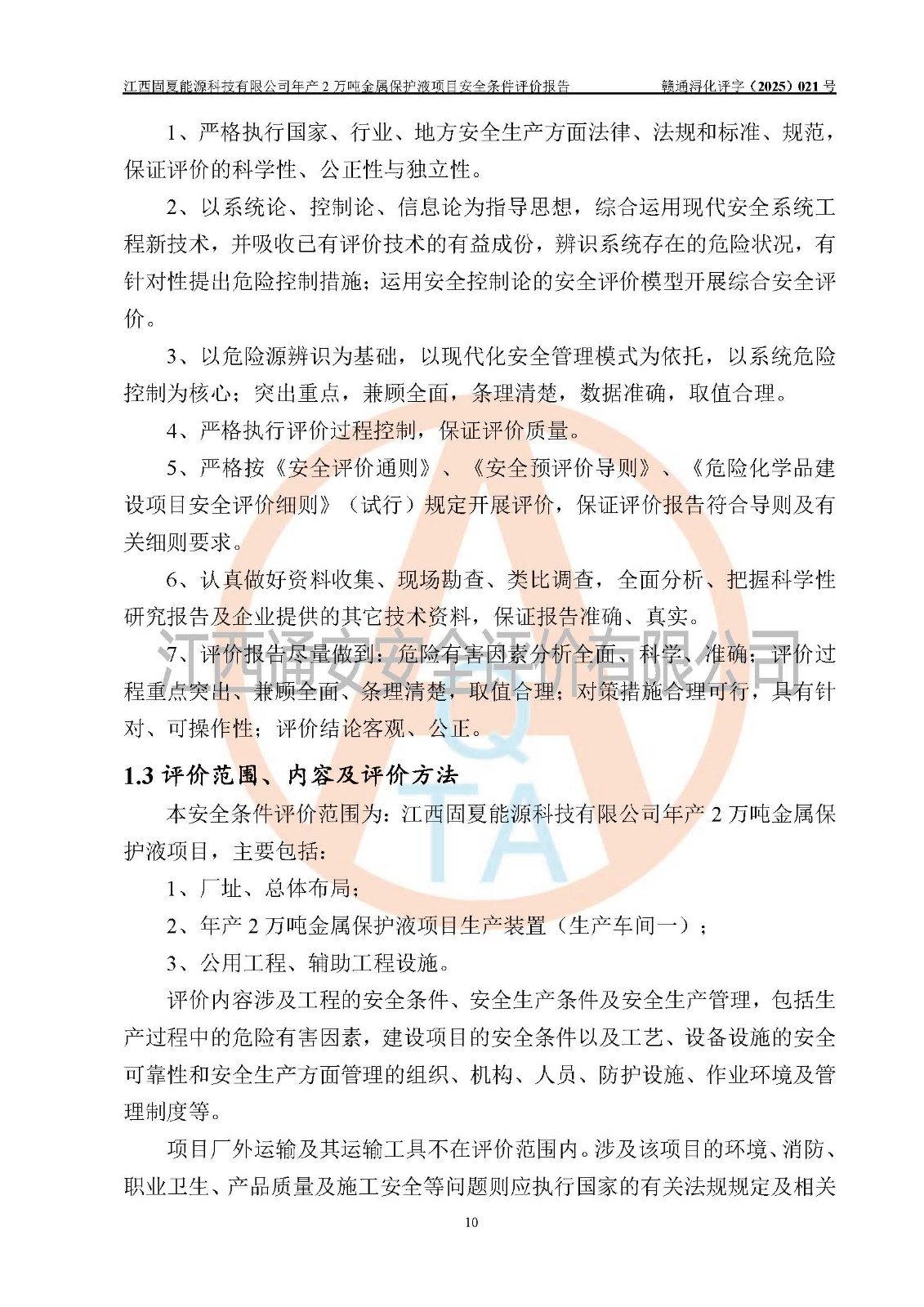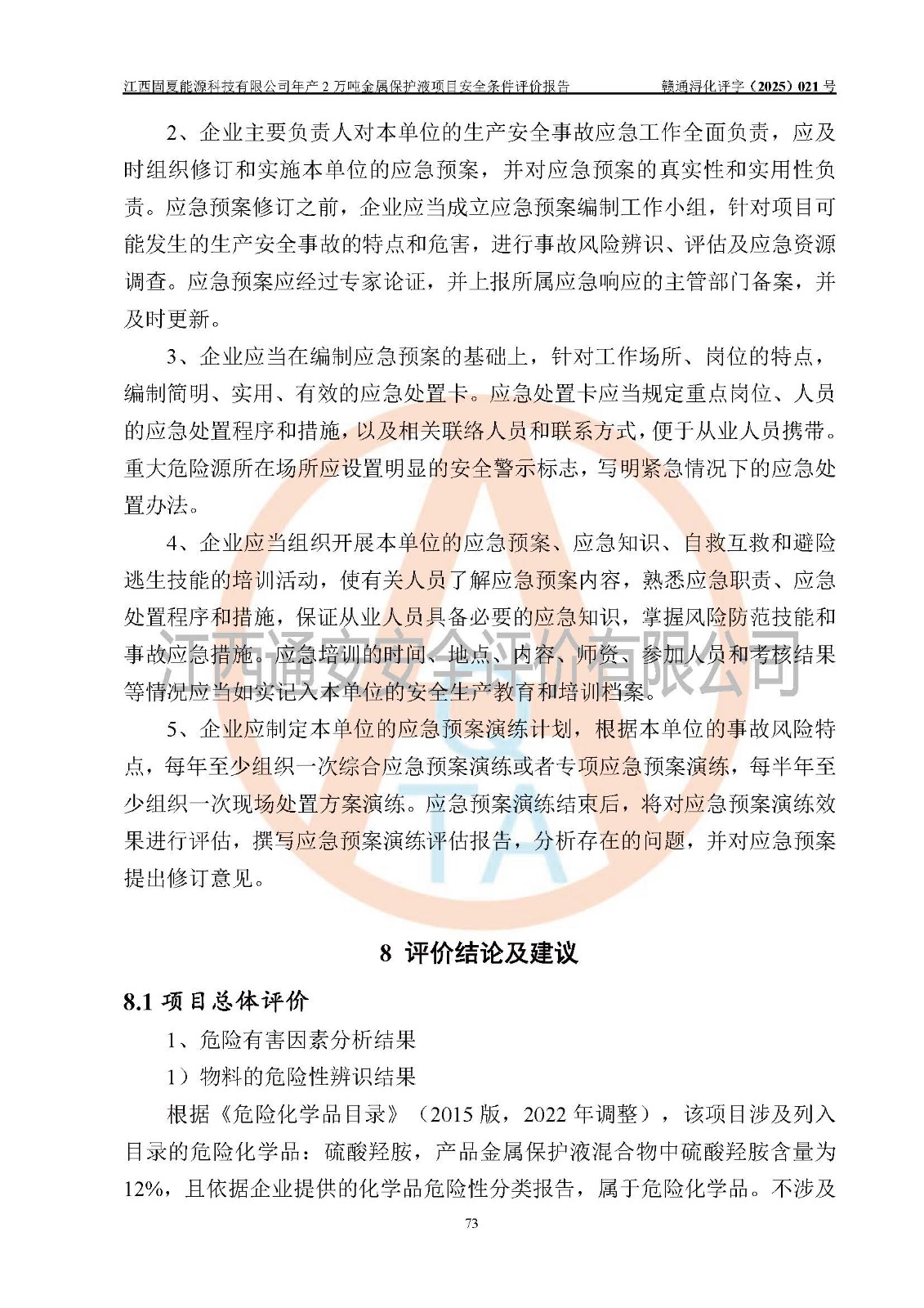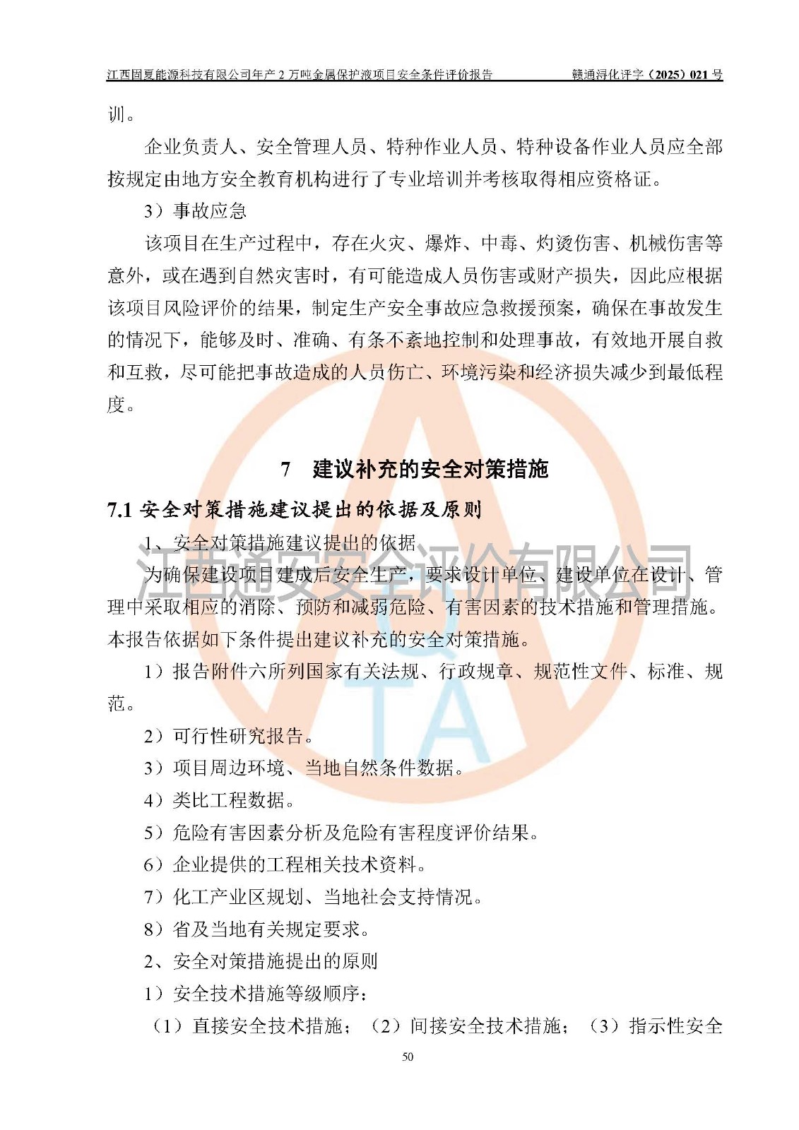 評價報告名稱 | 江西固夏能源科技有限公司年產(chǎn)2萬噸金屬保護液項目安全條件評價報告 | |||