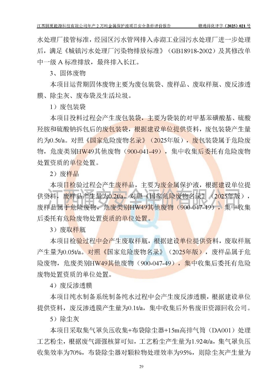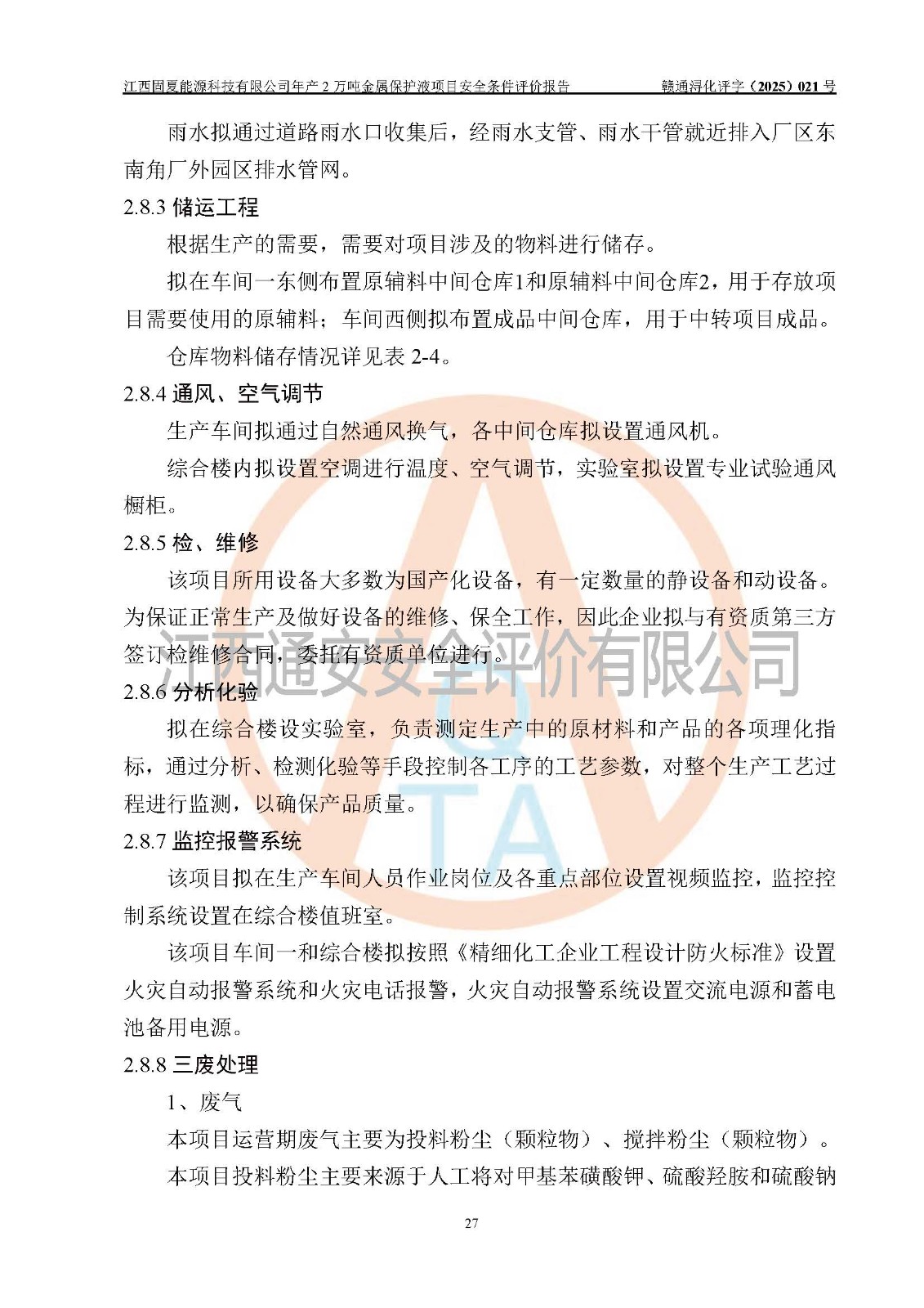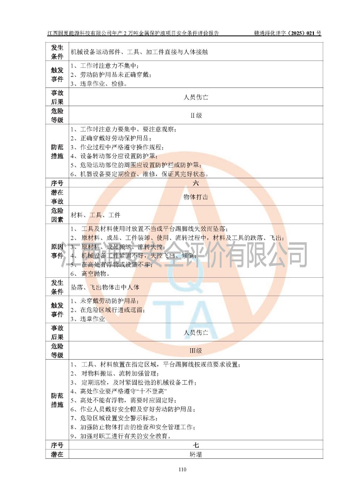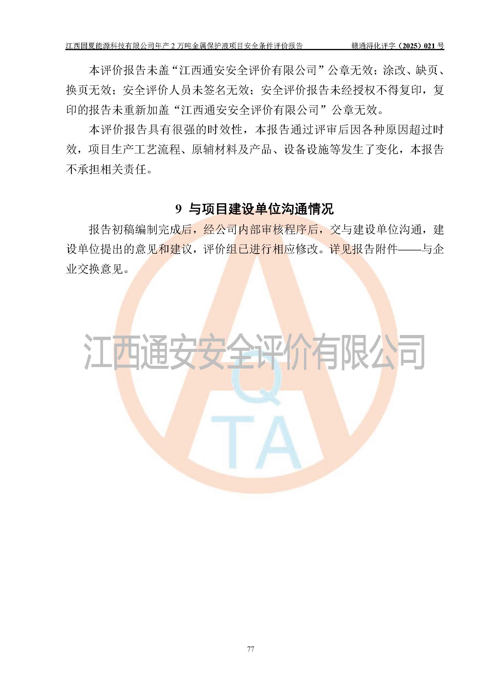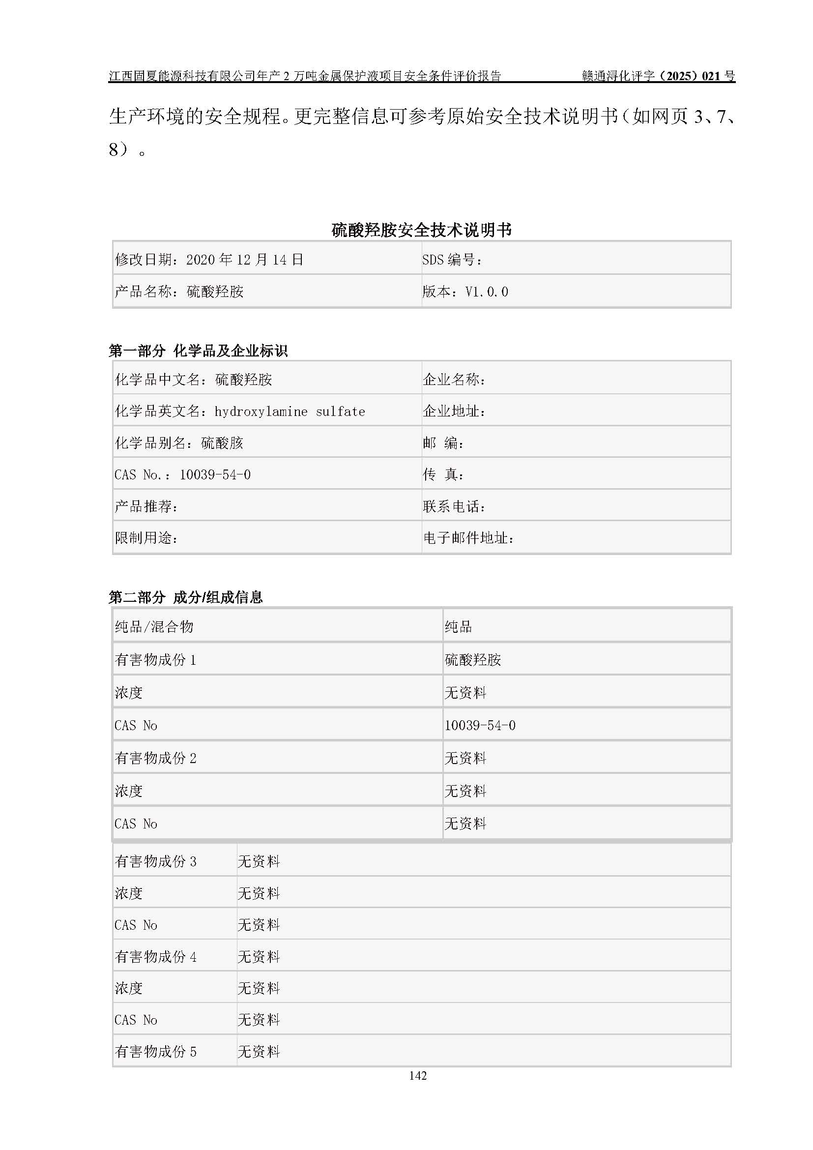 評價報告名稱 | 江西固夏能源科技有限公司年產(chǎn)2萬噸金屬保護液項目安全條件評價報告 | |||